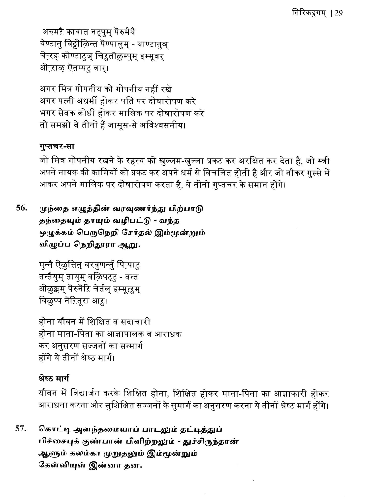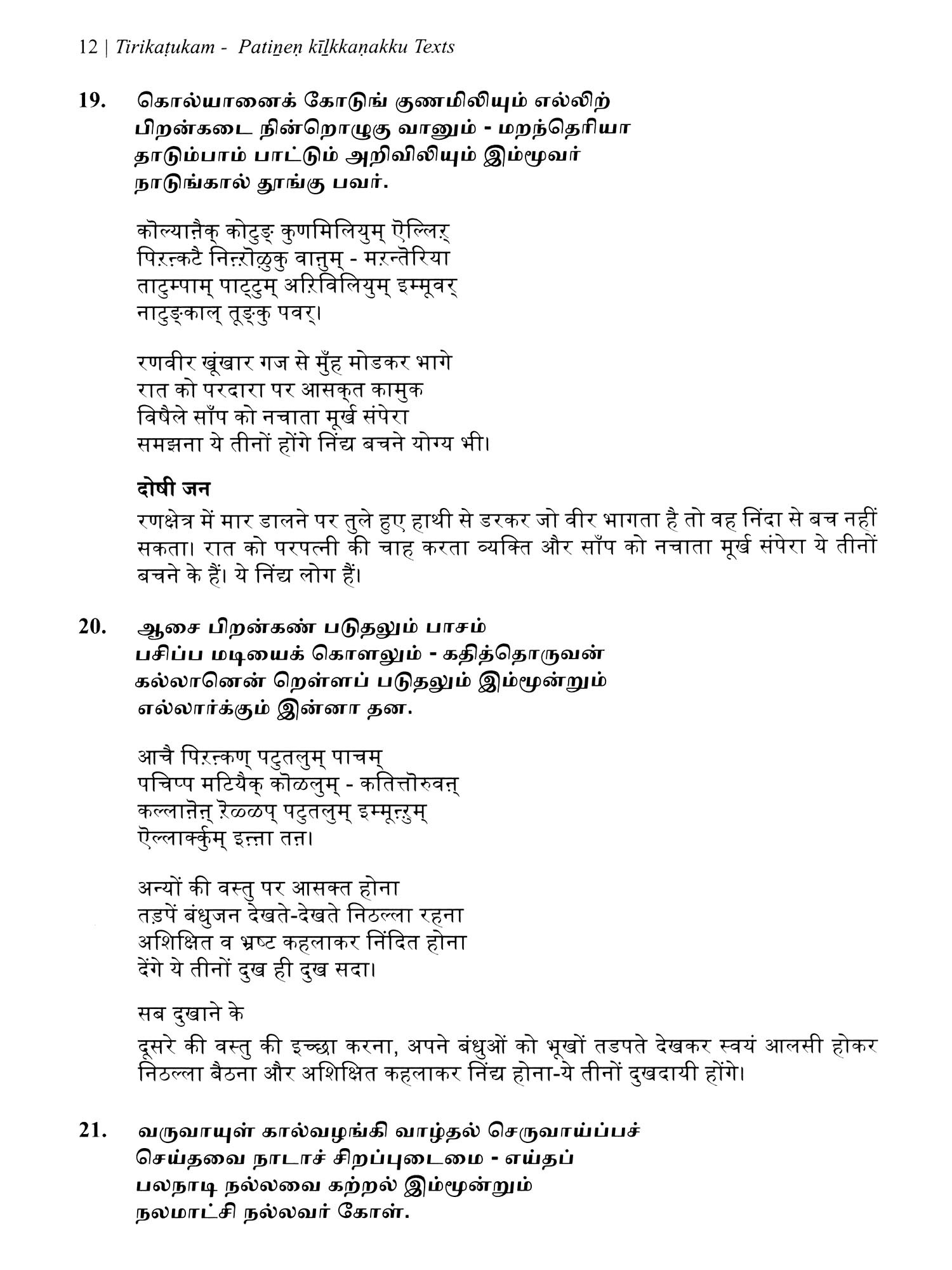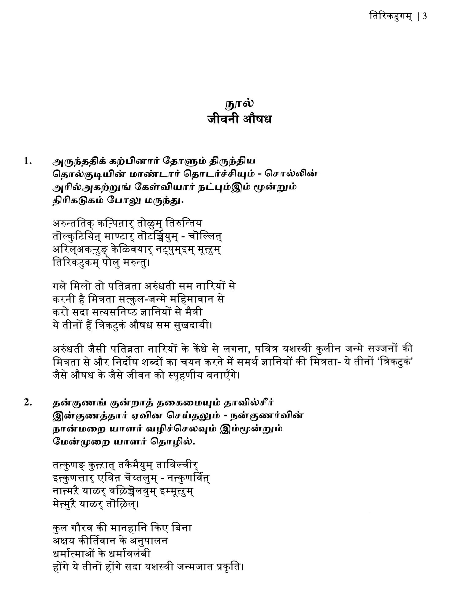 तिरिकडुगम् (திரிகடுகம்)- Tirikatukam: Triushadha (Original Text, Devanagari Transliteration and Verse Translation)
