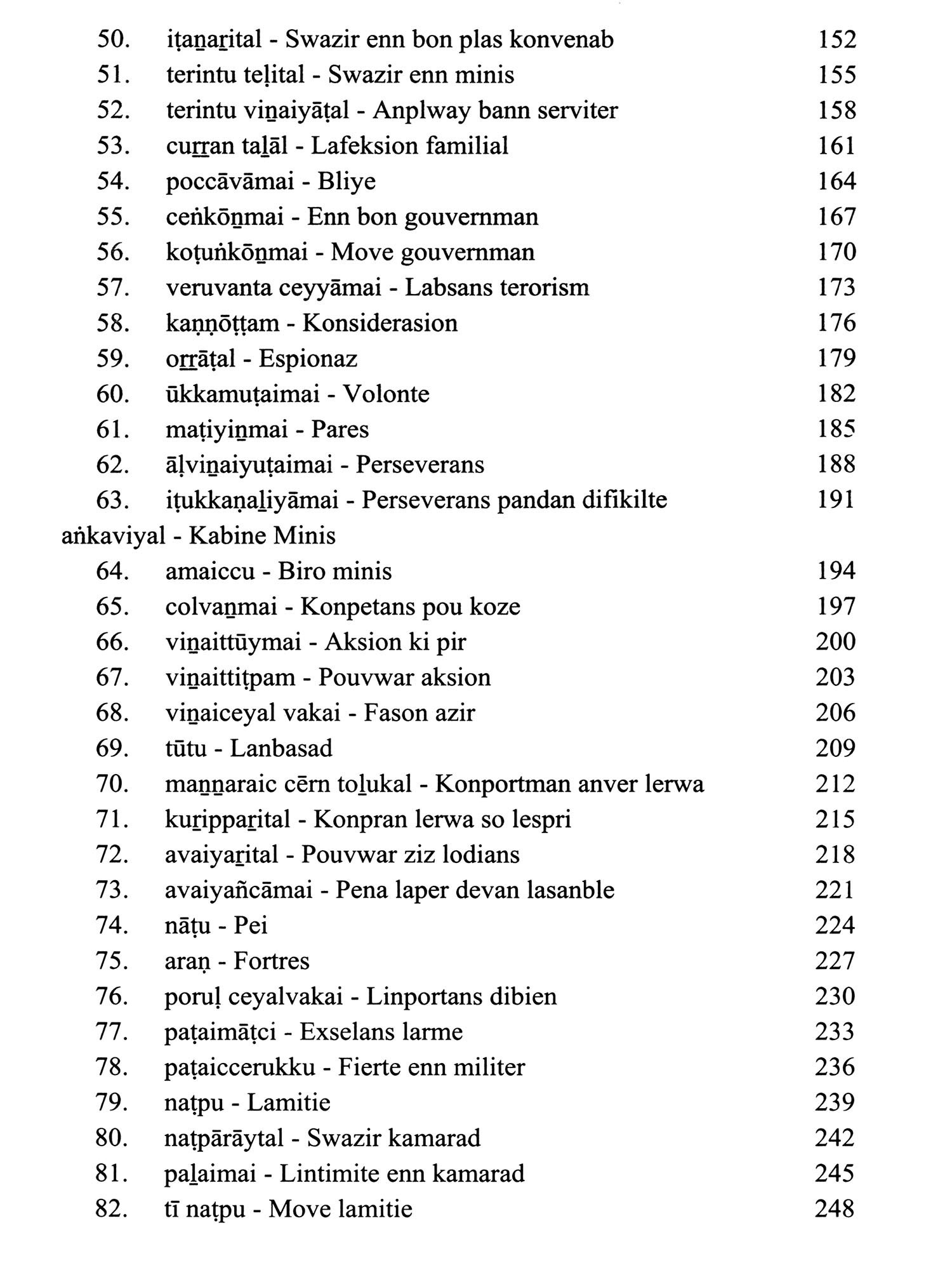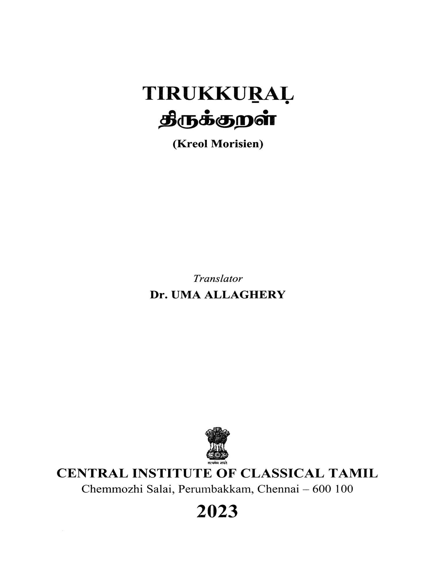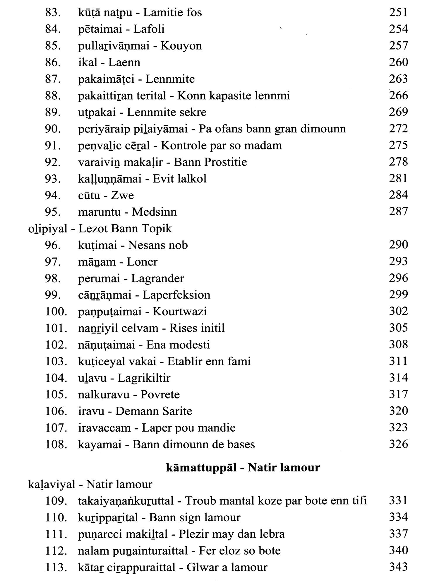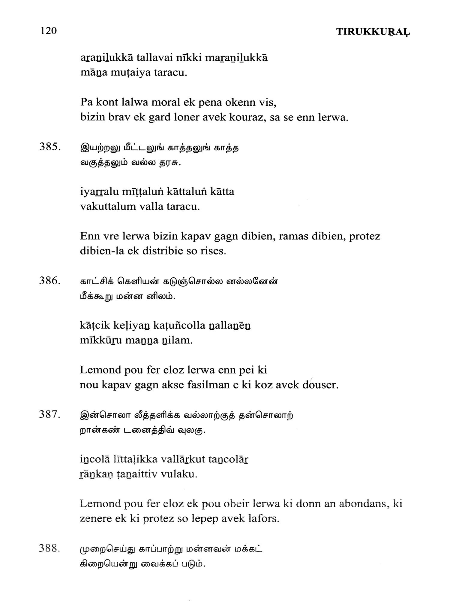 Language: Tamil Text with Transliteration and KREOL (Morisien) Translation