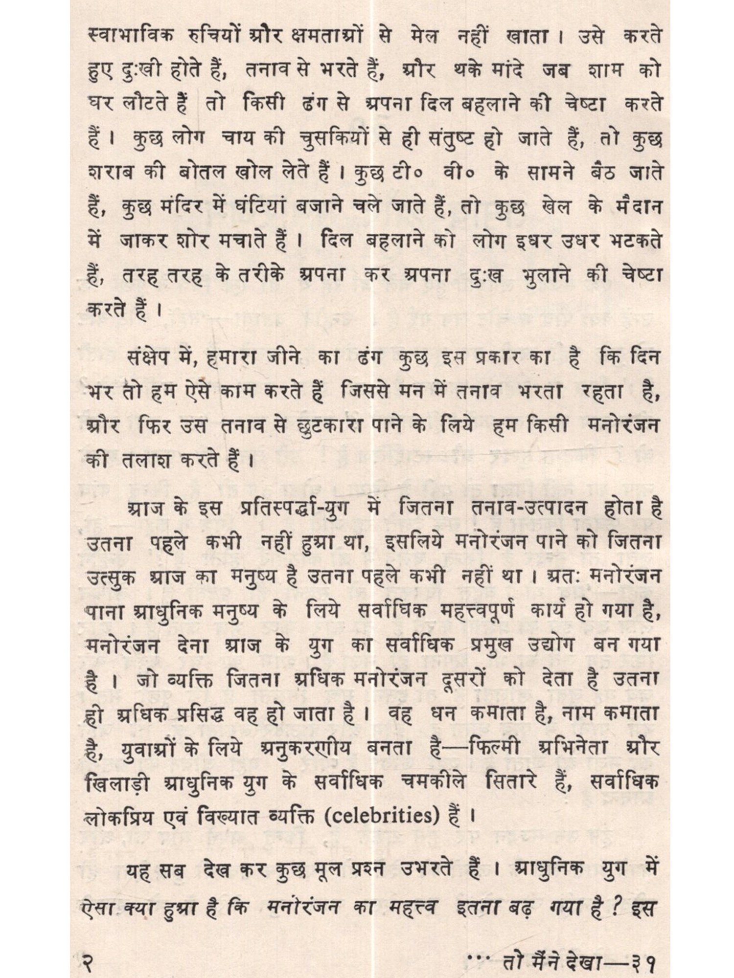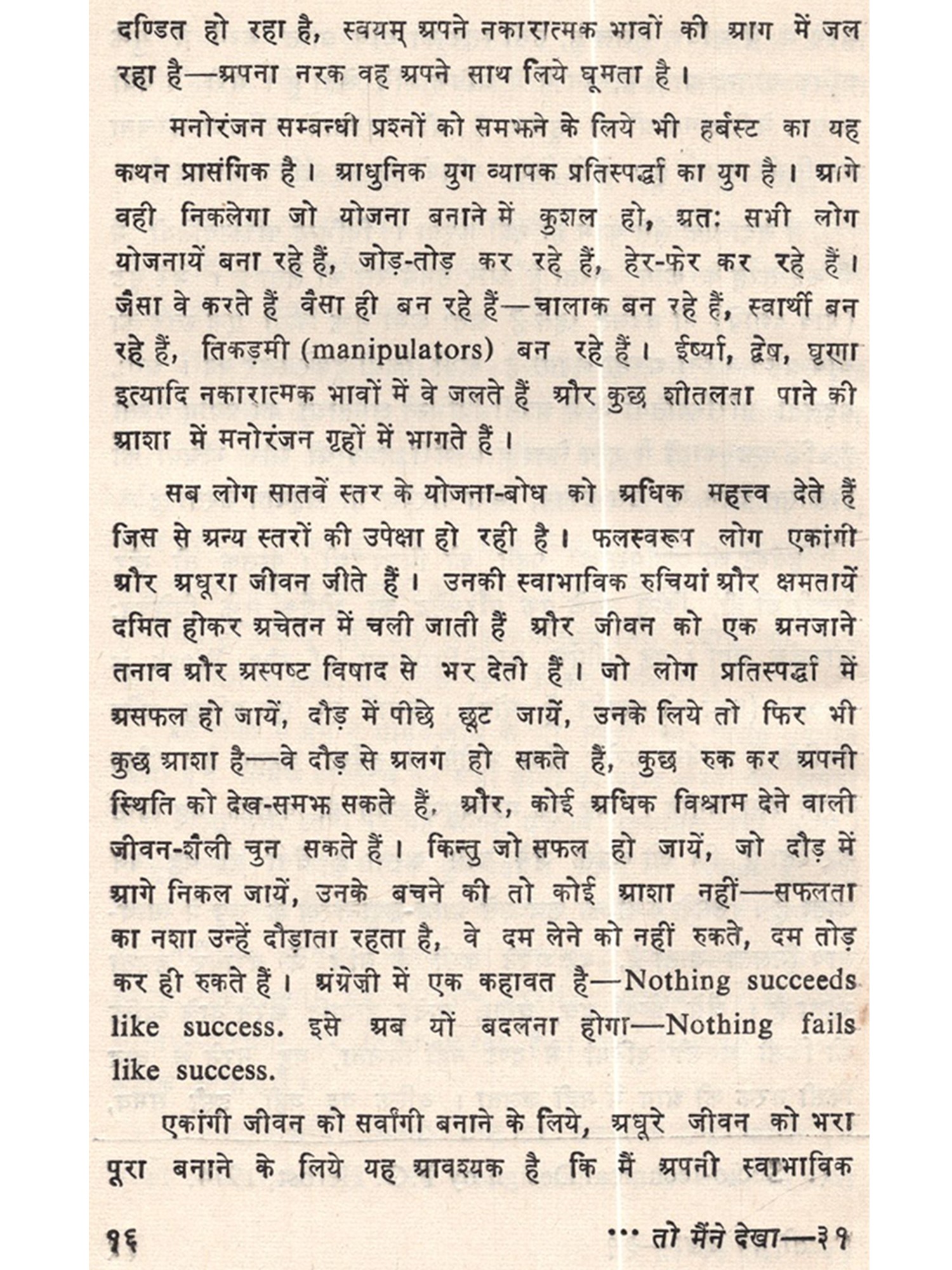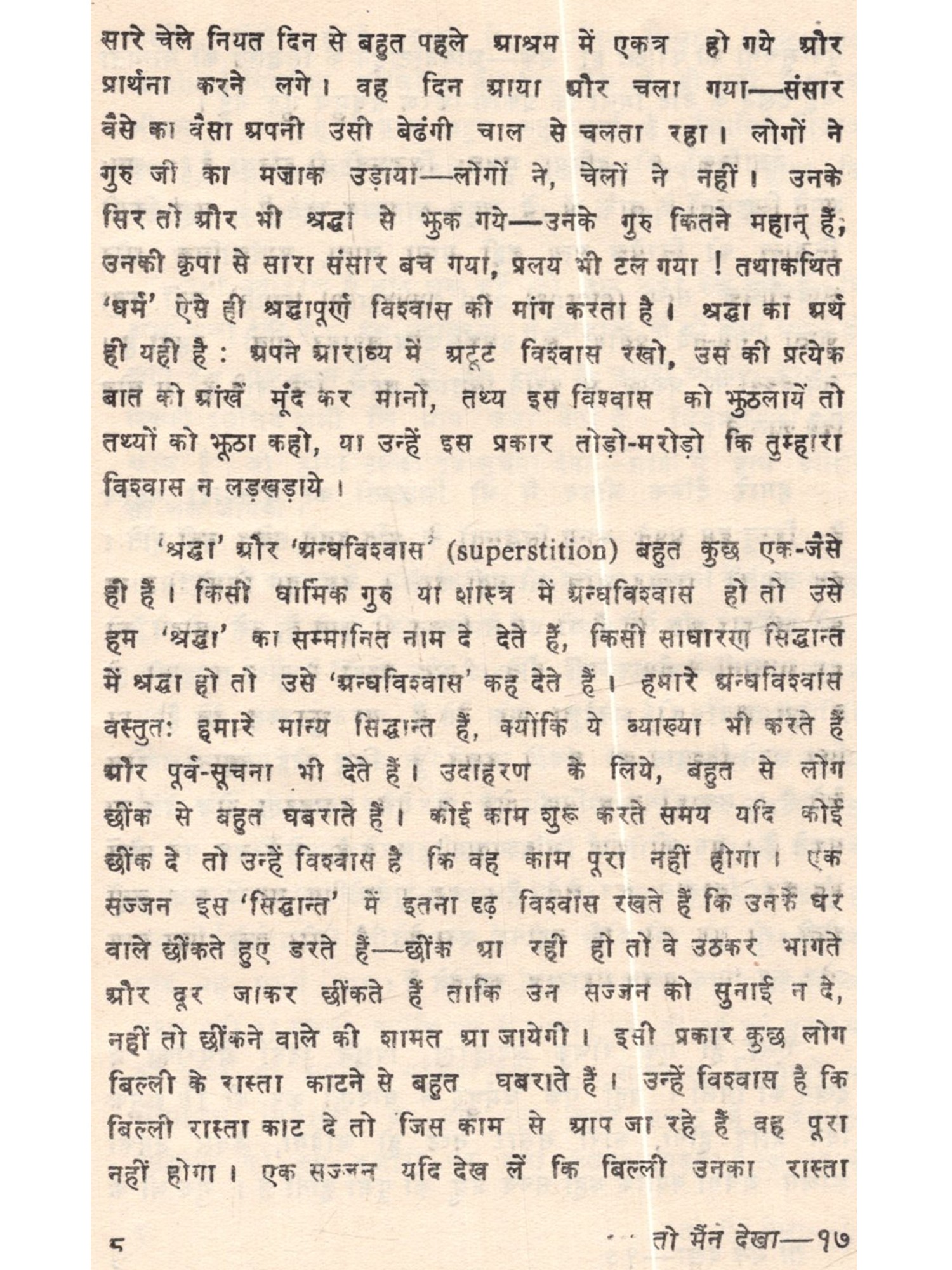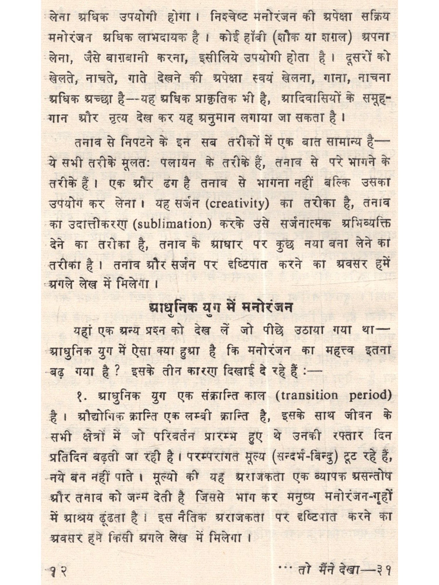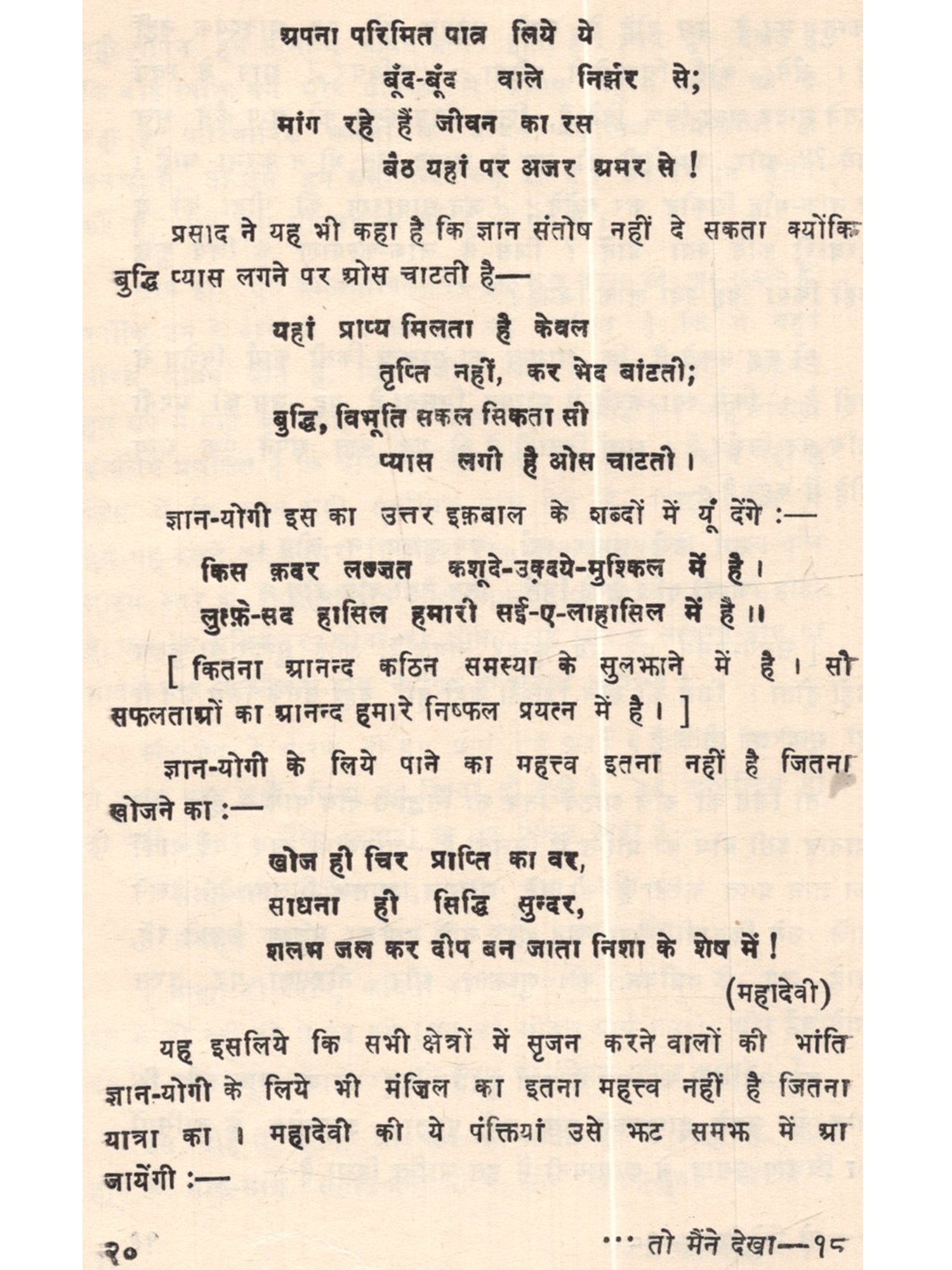 धाप को यदि ये लेख पसन्द न आयें तो दोष डा० वेदप्रकाश जी को दीजियेगा। त्रुटियां तो मेरे ही लेखन में हैं, किन्तु युग की मांग यही है कि अपनी भूल के लिये उत्तरदायी किसी और को ठहराया जाये ! फिर यहां तो कारण भी मौजूद है। अपराधी से भी अधिक दोषी उसे उकसाने वाले को माना जाता है. और तथ्य यही है कि वेदप्रकाश जी के स्नेहपूर्ण अाग्रह ने ही ये लेख लिखवाये हैं। मुनीर न्याजी की जिस गजल से इस लेखमाला का शीर्षक लिया गया है उस का मक्तः (अन्तिम शे'र) है:- एक और दरिया का सामना था 'मुनीर' मुझ को मैं एक दरिया के पार उतरा तो मैंने देखा । उन दिनों मेरी मनःस्थिति कुछ इस शे'र के हो अनुरूप थी। मेरी पिछली दो पुस्तकें ('परिवेश, मन और साहित्य'; तथा 'भारतेन्दु और आधुनिकता') लिखी जा चुकी थीं, प्रौर जिस बौद्धिक जिज्ञासा ने इन अध्ययनों को प्रेरित किया था वह शांत हो गई थी। बौद्धिक प्रश्नों के एक दरिया के पार उतर कर मैं देख रहा था कि अस्तित्वात्मक (existential) प्रश्नों का एक और दरिया अब मेरे सामने था। बाह्य जगत् की समस्याओं की अपेक्षा अब अन्तर्जगत् की गुत्थियां अधिक रुचिकर प्रतीत हो रही थीं। समाज में क्या हो रहा है, जो हो रहा है, वह क्यों और कैसे हो रहा है, इत्यादि प्रश्नों के उत्तर खोजता हुआ पहले मैं ज्ञान-विज्ञान के विभिन्न प्रदेशों में घूमता रहता था । किन्तु अब 'अदम' का यह शे'र अधिक सार्थक प्रतीत होने लगा था: दूसरों से बहुत आसान है मिलना साक़ी अपनी हस्ती से मुलाक़ात बड़ी मुश्किल है। 'विश्वज्योति' के सम्पादक बन कर डा० वेदप्रकाश जी इन्हीं दिनों यहां धाये। उन्हें पता नहीं क्या सूझी कि अपनी पत्रिका के लिये लिखने को मुझे कह बैठे- उन्हें भी क्या पता था कि यह भला. मानुस गले ही पड़ जायेगा ! तो उन के आग्रह का परिणाम यह हुआ। कि 'अपनी हस्ती से मुलाक़ात' नामक लेख-श्रृंखला का सूत्रपात हो गया। प्रायः चार वर्षों तक यह मुलाकात होती रही और बड़े पैये के साथ वे इस मुलाकात का ब्योरा 'विश्वज्योति' में छापते रहे। और तब मुझे लगा कि श्रान्तरिक छानबीन का यह दौर भी समाप्त हो गया है। किन्तु यात्रा रुकी नहीं:- जुस्तजू हो तो सफ़र ख़त्म कहां होता है, यूं तो हर मोड़ पे मंजिल का गुमां होता है। - 'ताबां' को महत्त्व दे पहले 'जग-दर्शन' और फिर 'ग्रात्म-दर्शन' के प्रश्नों चुकने के बाद मैंने देखा कि नये प्रश्नों का एक और दरिया मेरे सामने लहरा रहा है। अब जो मुख्य समस्या मेरे सामने थी वह कुछ इस प्रकार की थी: मनुष्य सदा से दुःख और द्वन्द्व का शिकार रहा है, बाज भी है। दुःख और अशांति से मुक्ति पाने के लिये सन्त, महात्मा और आध्यात्मिक गुरु उपदेश देते रहे हैं, आत्म-रूपांतरण की बात करते रहे हैं। उनकी बातें सार्थक भी हैं। व्यक्ति उनके बताये रास्ते पर चले तो वह सुख और शांति पा लेता है, यह भी ठीक है। फिर