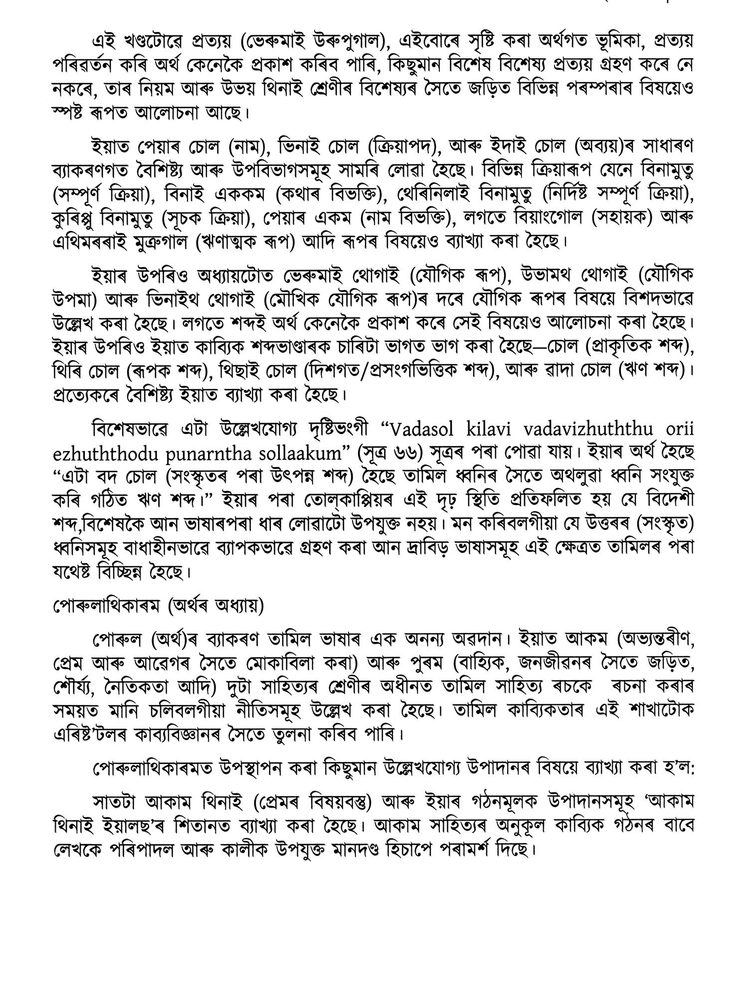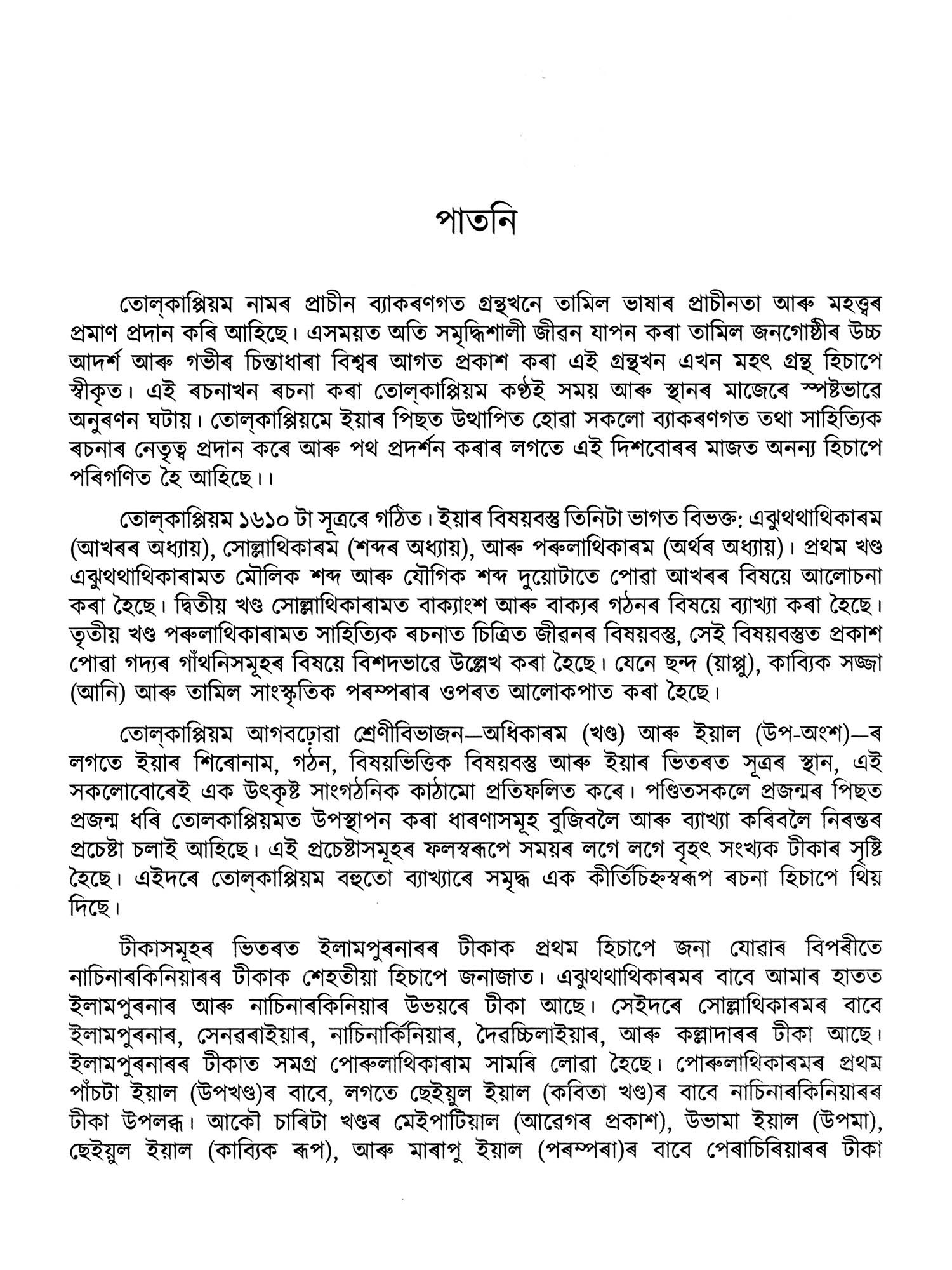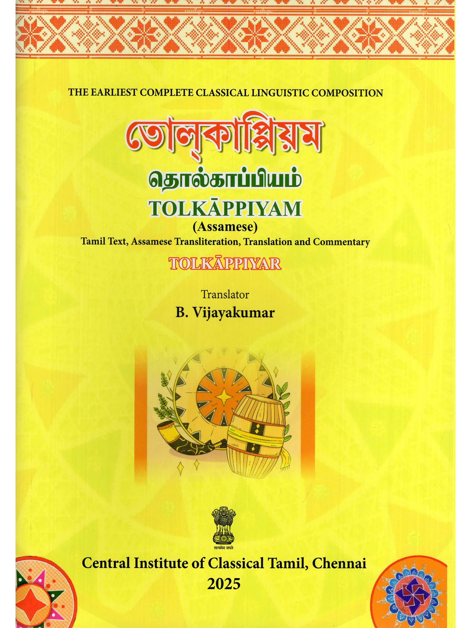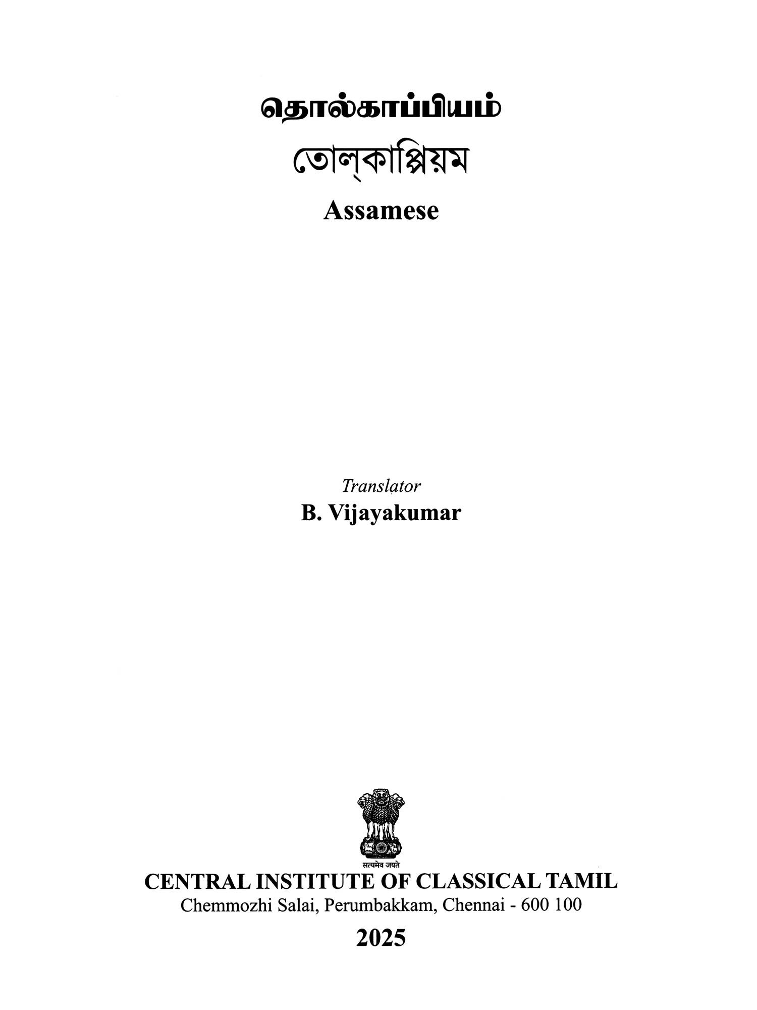 Classical Tamil Grammar Tolkappiyam by Tolkappiyor and Classical Sanskrit Grammar 'Ashtadyayi' by Panini are two gems of the classical languages of India which remain as gifts to the literary world. Thus, disseminating ancient Tamil Grammar to the larger section of educators, researchers and students in other States and abroad remains an abiding theme in the Action Plan of the CICT. Chennai as approved by the Government of India. 'Tolkappiyam' has now been translated into 10 languages viz, four Indian languages (Odia, Assamese. Urdu and Tulu) and six Foreign Languages (Arabic, Hungarian, German, Spanish, Malay, Burmese). This magnum opus captures in vivid detail the exquisitely poetic and epigrammatic statements on phonology, morphology, syntax, rhetoric, prosody and poetics. Its reputation as the earliest complete work of linguistics in ancient classical literature has been indeed formidable.