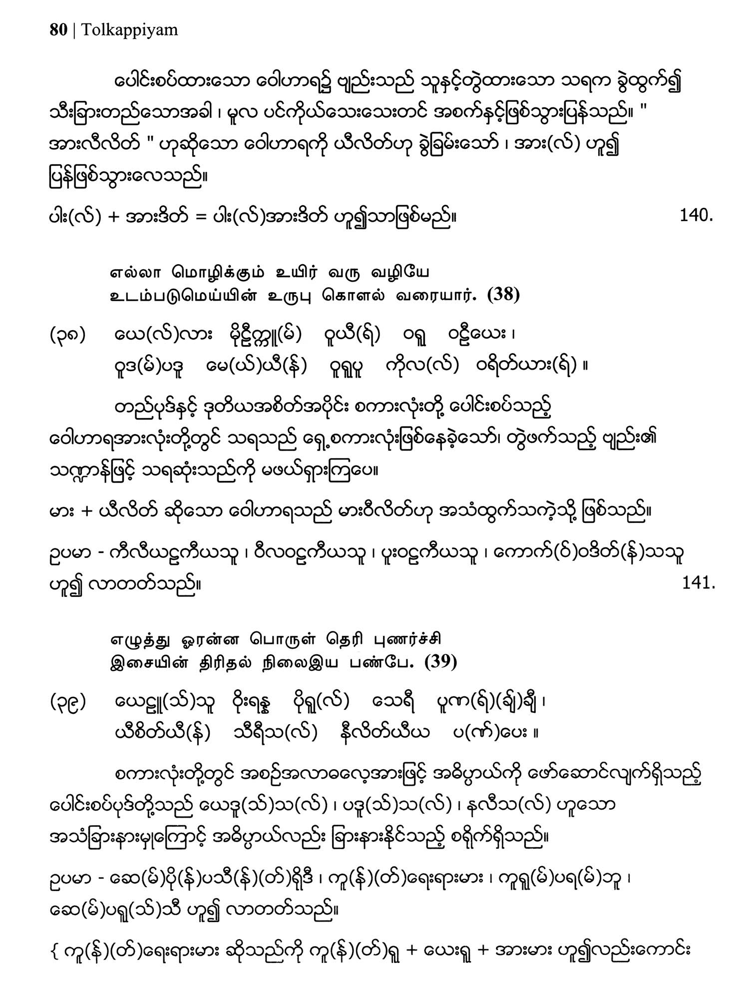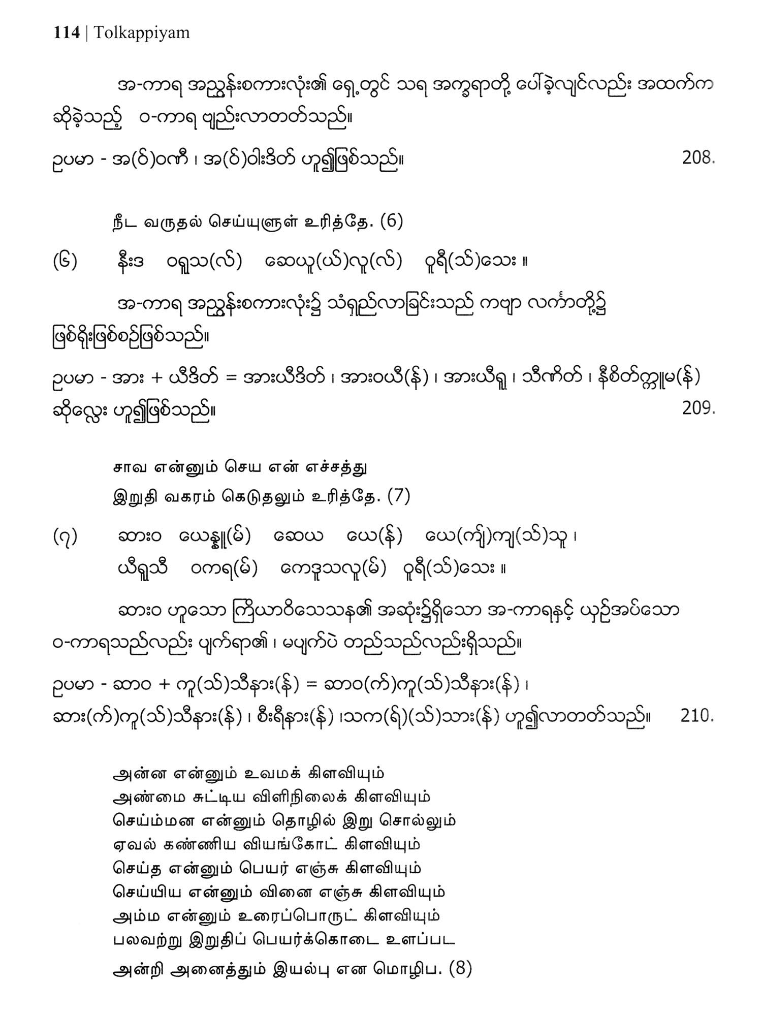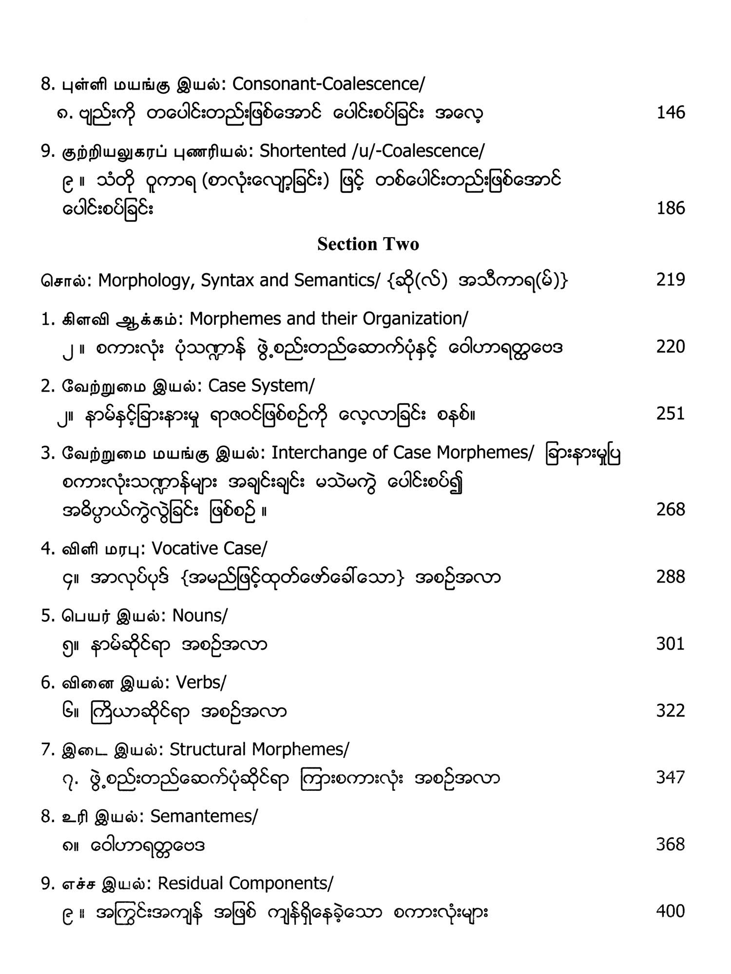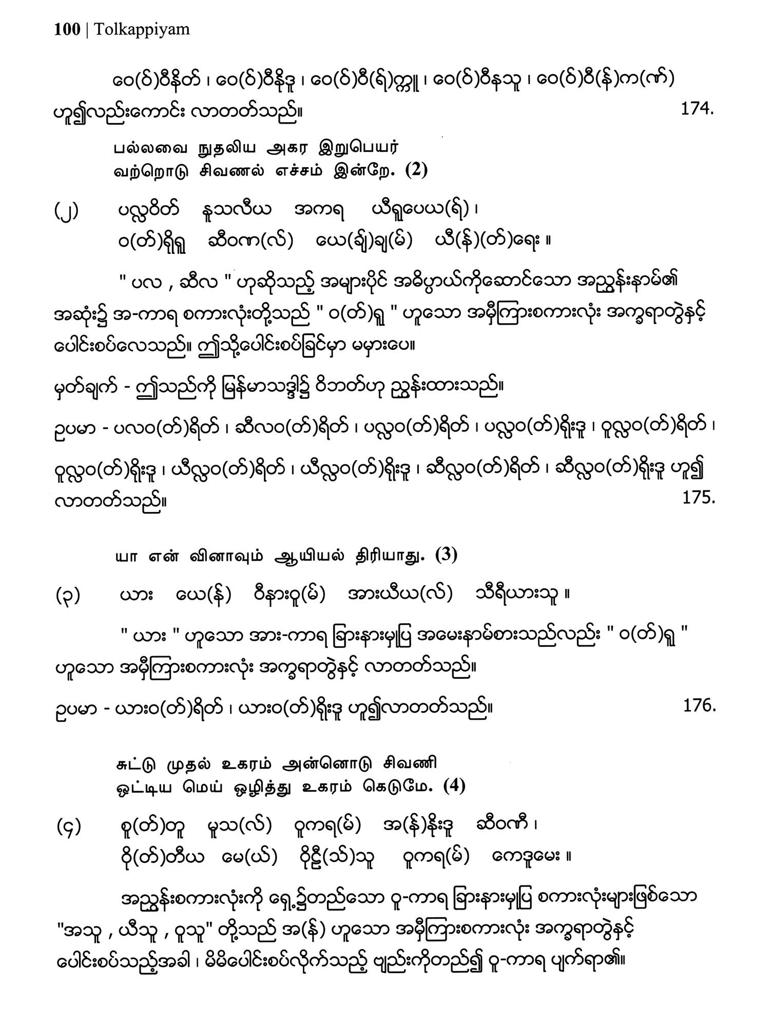 Classical Tamil Grammar 'Tolkappiyam' by Tolkappiyar and Classical Sanskrit Grammar 'Ashtadyayi' by Panini are two gems of the classical languages of India which remain as gifts to the literary world. Thus, disseminating ancient Tamil Grammar to the larger section of educators, researchers and students in other States and abroad remains an abiding theme in the Action Plan of the CICT. Chennai as approved by the Government of India. 'Tolkappiyam' has now been translated into 10 languages viz, four Indian languages (Odia, Assamese, Urdu and Tulu) and six Foreign Languages (Arabic. Hungarian, German, Spanish, Malay. Burmese). This magnum opus captures in vivid detail the exquisitely poetic and epigrammatic statements on phonology, morphology, syntax, rhetoric, prosody and poetics. Its reputation as the earliest complete work of linguistics in ancient classical literature has been indeed formidable.