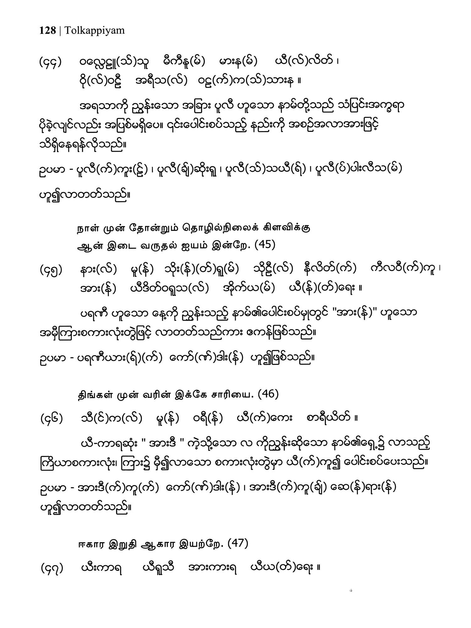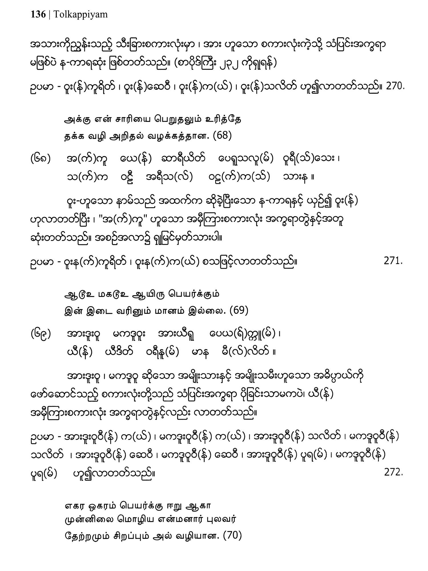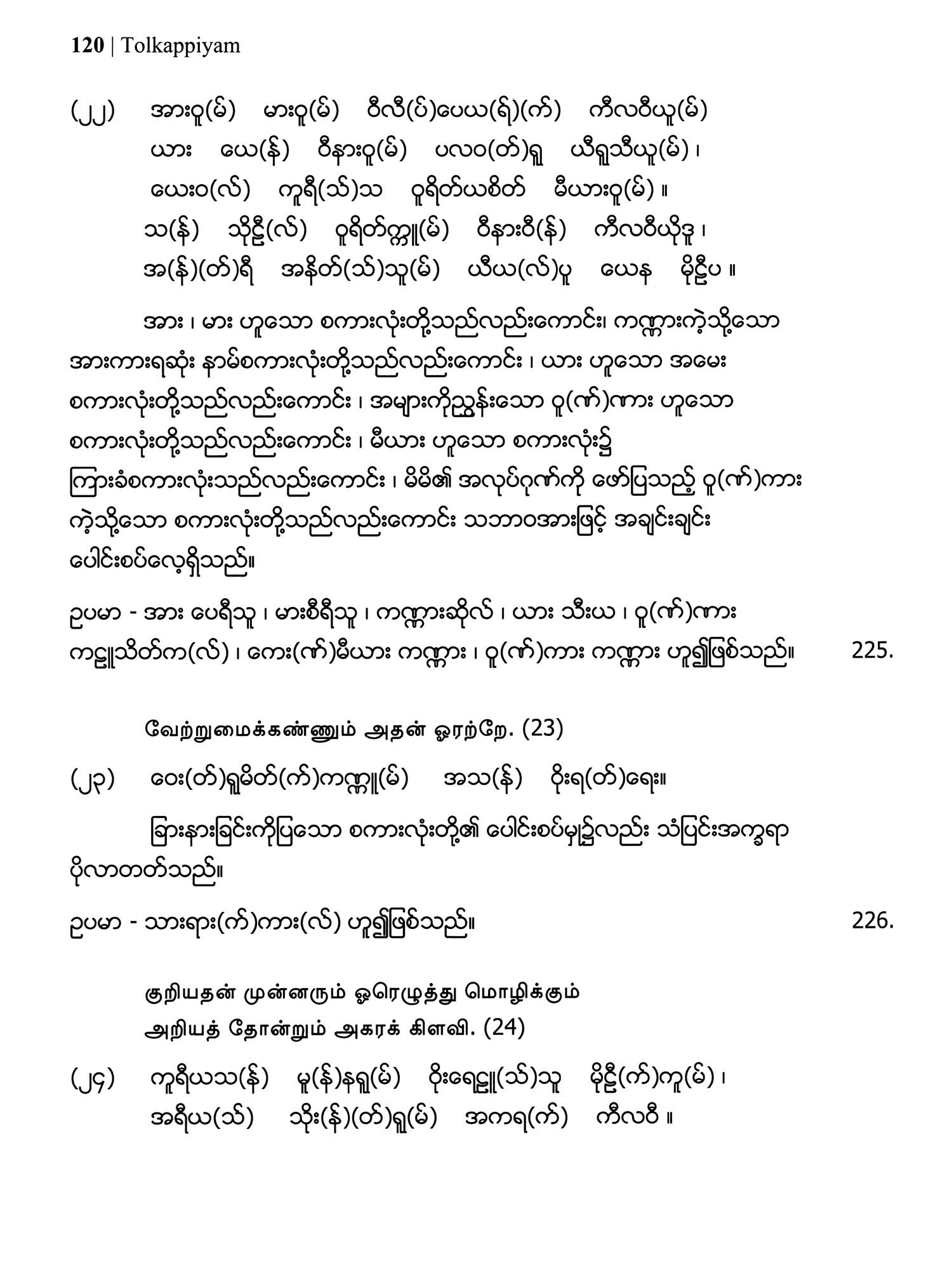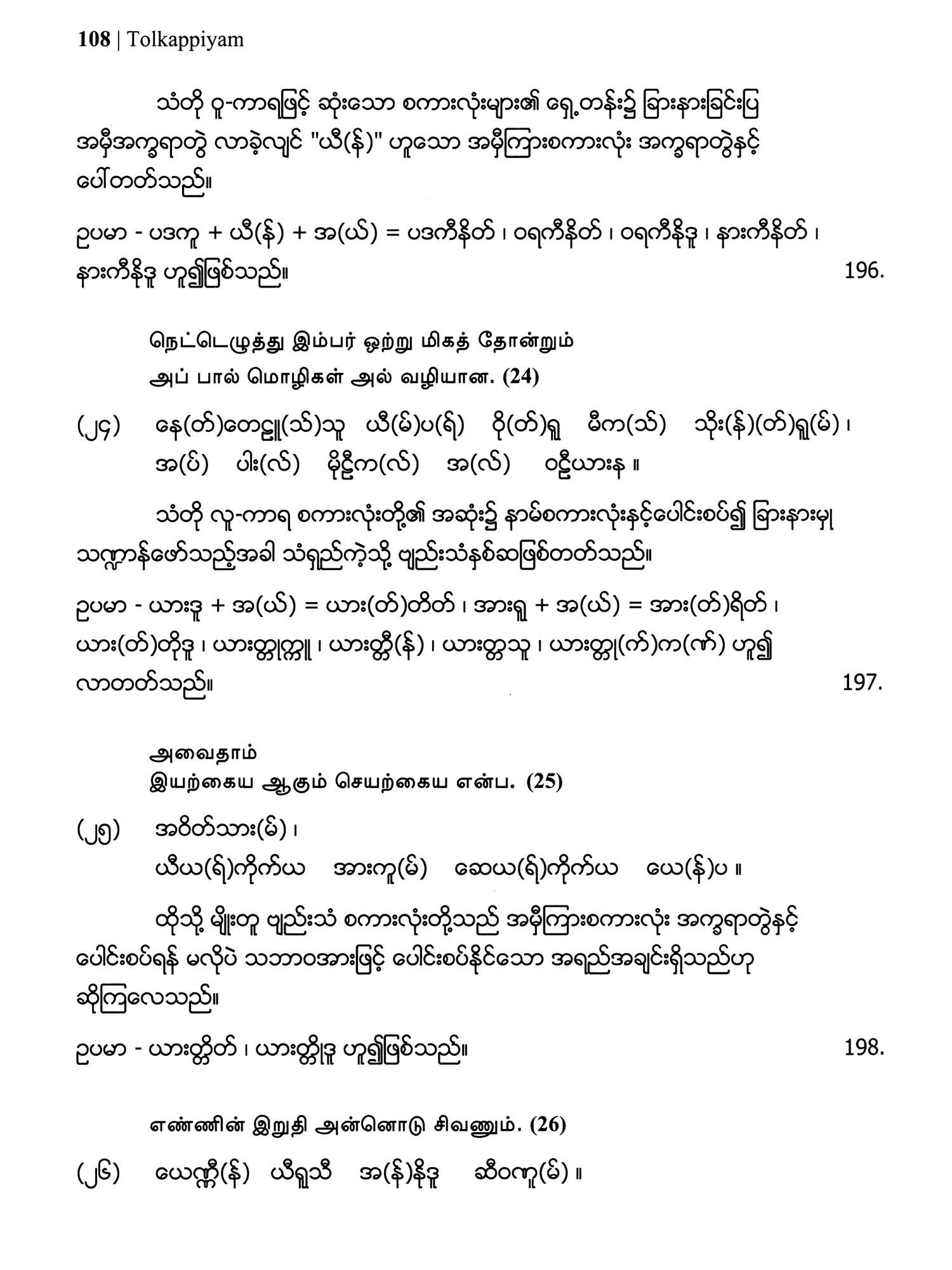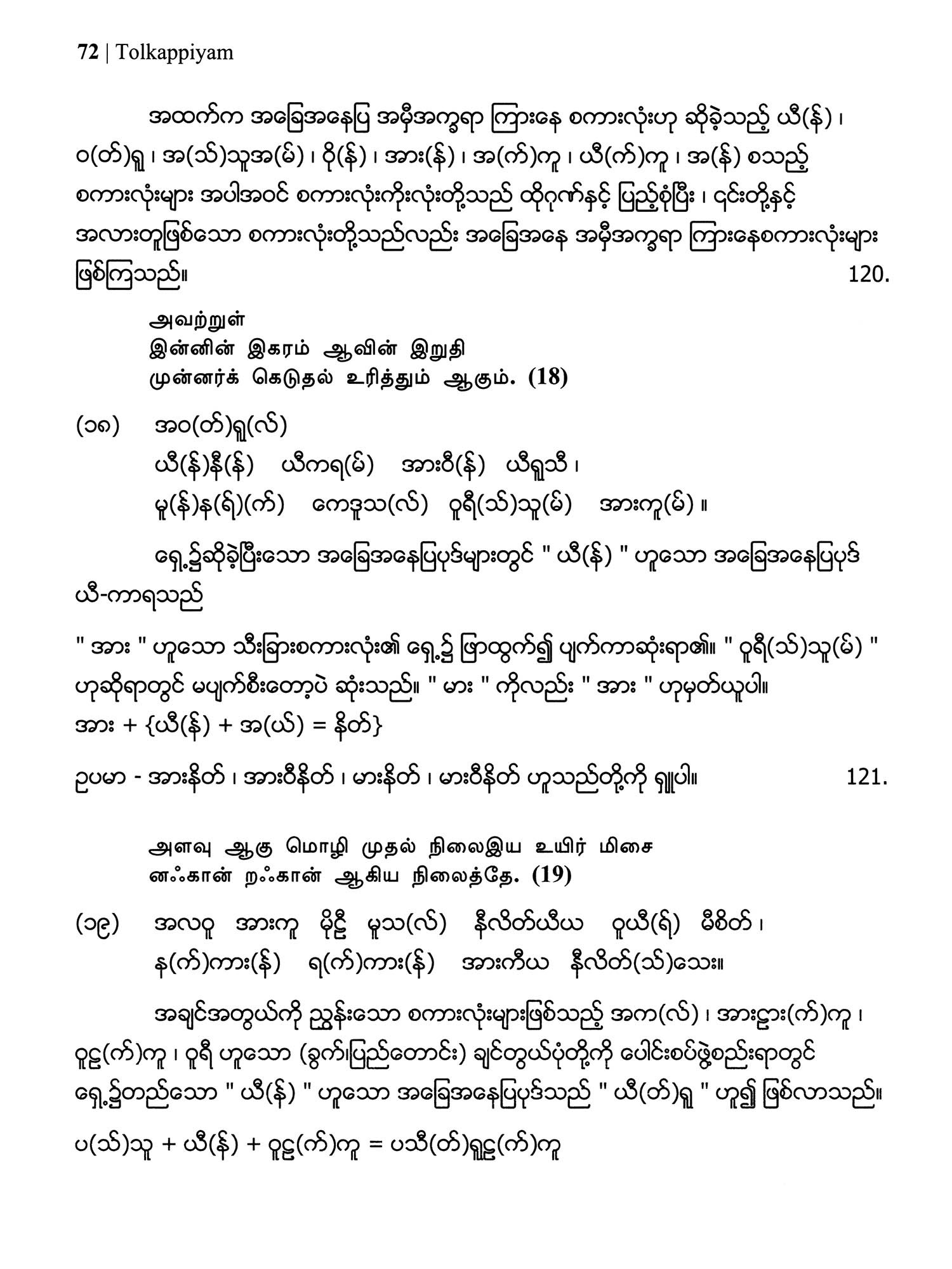 Classical Tamil Grammar 'Tolkappiyam' by Tolkappiyar and Classical Sanskrit Grammar 'Ashtadyayi' by Panini are two gems of the classical languages of India which remain as gifts to the literary world. Thus, disseminating ancient Tamil Grammar to the larger section of educators, researchers and students in other States and abroad remains an abiding theme in the Action Plan of the CICT. Chennai as approved by the Government of India. 'Tolkappiyam' has now been translated into 10 languages viz, four Indian languages (Odia, Assamese, Urdu and Tulu) and six Foreign Languages (Arabic. Hungarian, German, Spanish, Malay. Burmese). This magnum opus captures in vivid detail the exquisitely poetic and epigrammatic statements on phonology, morphology, syntax, rhetoric, prosody and poetics. Its reputation as the earliest complete work of linguistics in ancient classical literature has been indeed formidable.