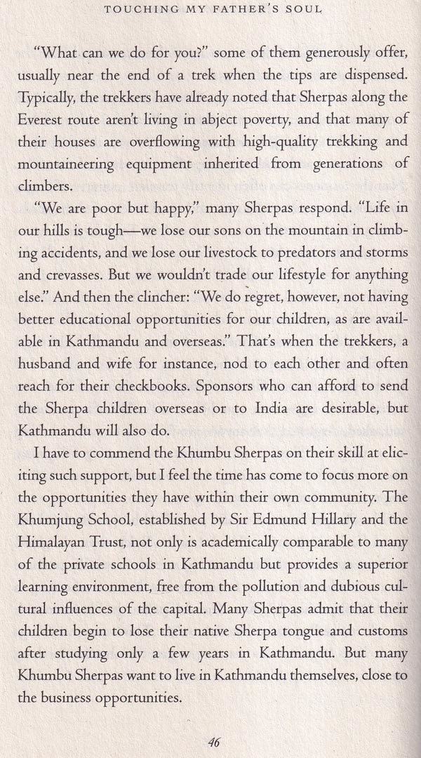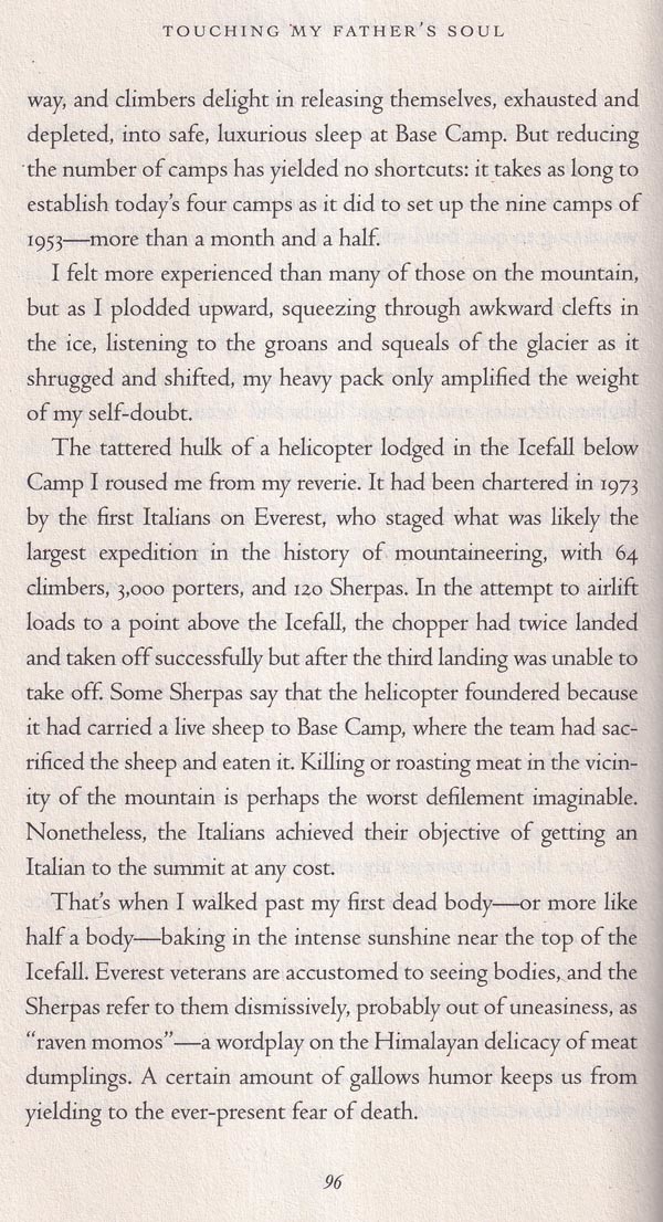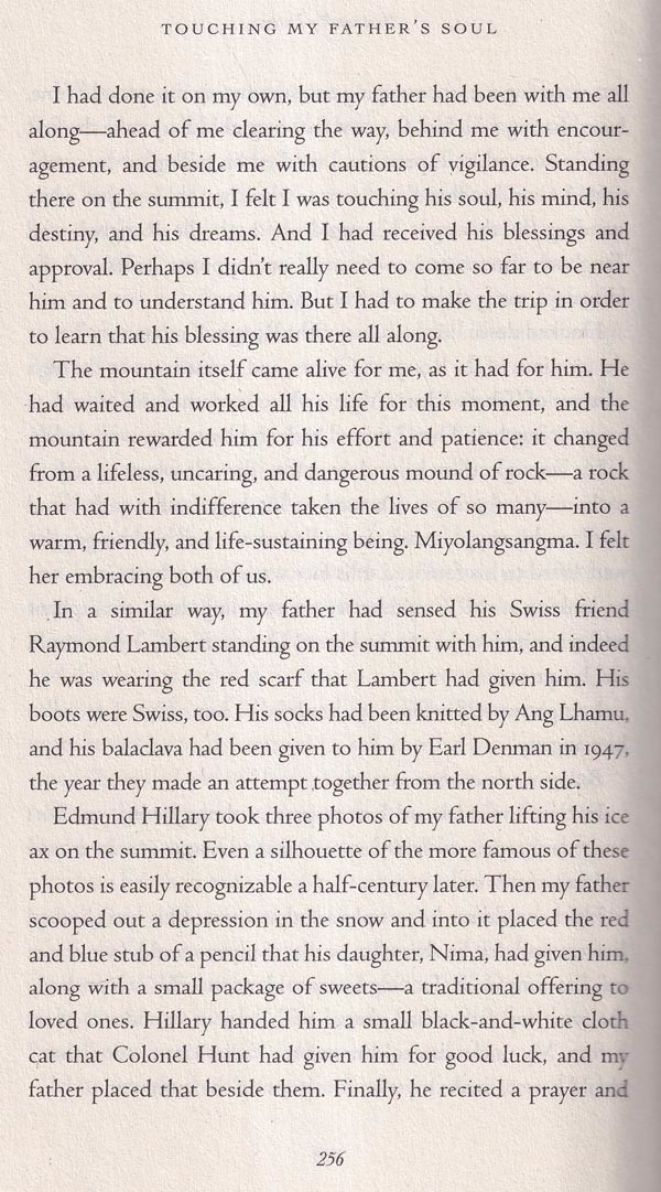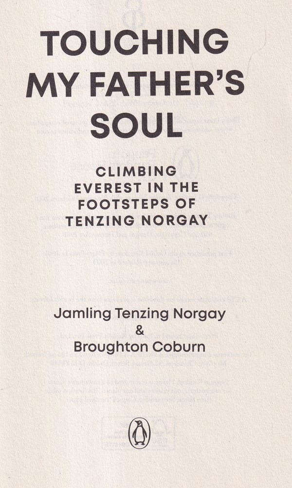 On May 29, 1953, it was Tenzing who, in the company of a New Zealand beekeeper name of Ed Hillary, made the first ascent of Everest. The 1996 tragedy provides the narrative architecture that gives shape to Touching My Father's Soul, but, as this title suggests, Jamling's book is to no small degree about his larger- than-life father and the complicated, emotionally charged bond they shared. Its publication seems especially propitious now that Tenzing's autobiography, Tiger of the Snows, has vanished from bookstore shelves.