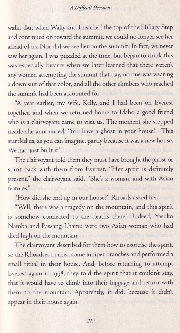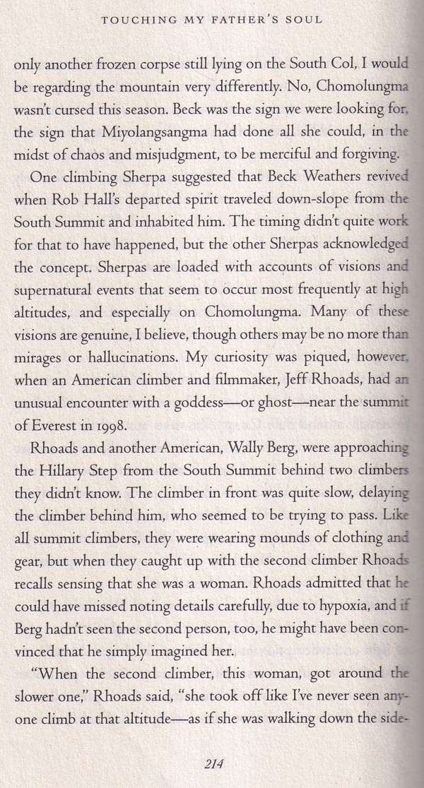 Nearly five years have passed since the disturbing cascade of events that has come to be known as the 1996 Mount Everest disaster. Hundreds of thousands of words on the subject have been committed to print in the interim. The most recent account of the tragedy, Touching My Father's Soul, by Jamling Tenzing Norgay, is, by my rough calculation, the seventeenth book to be published about it. A half- decade after the fact, one would be forgiven for wondering why anybody other than the most obsessive Everest fanatic should bother reading yet another account of that infamous season on the world's highest mountain.