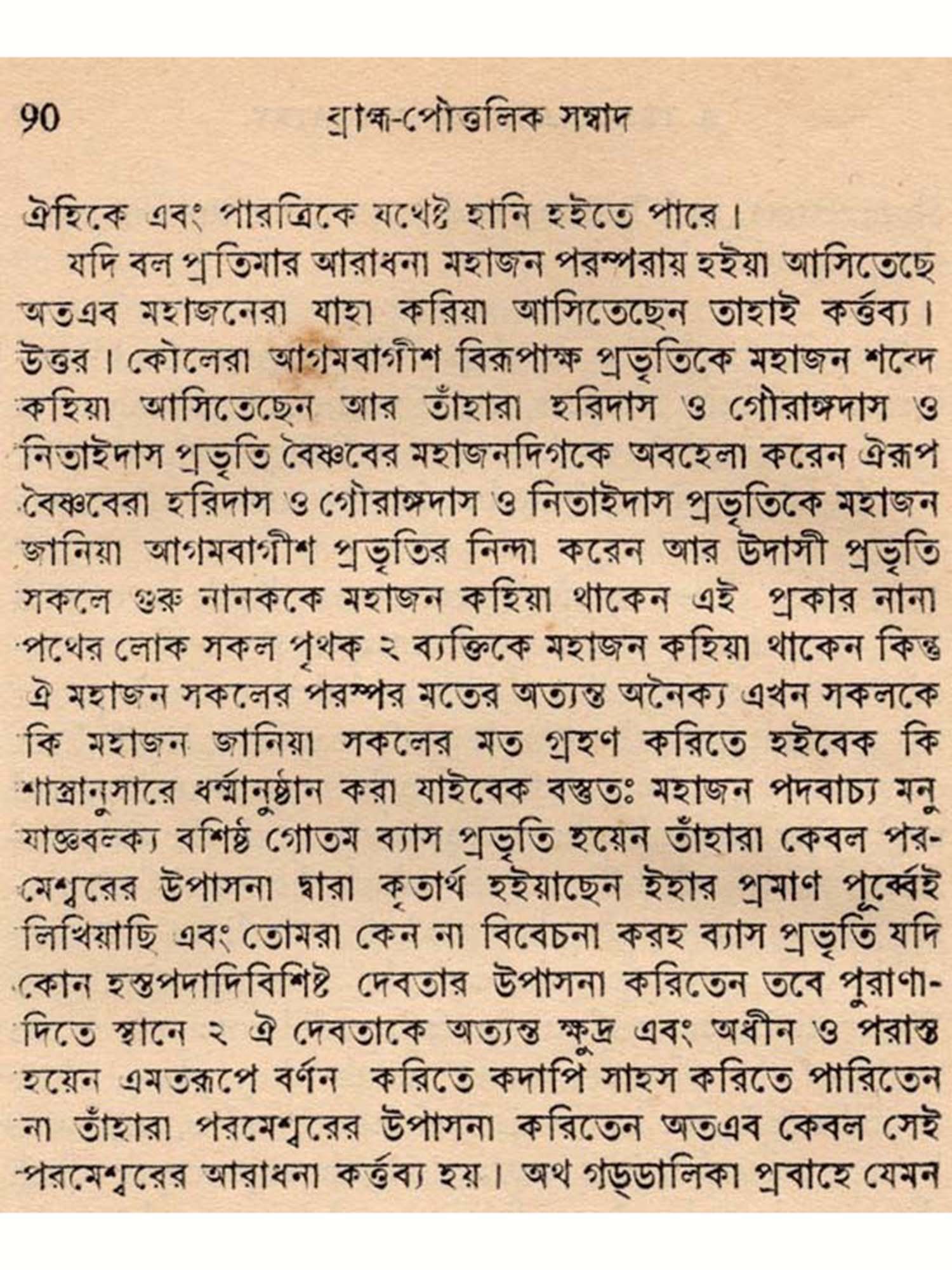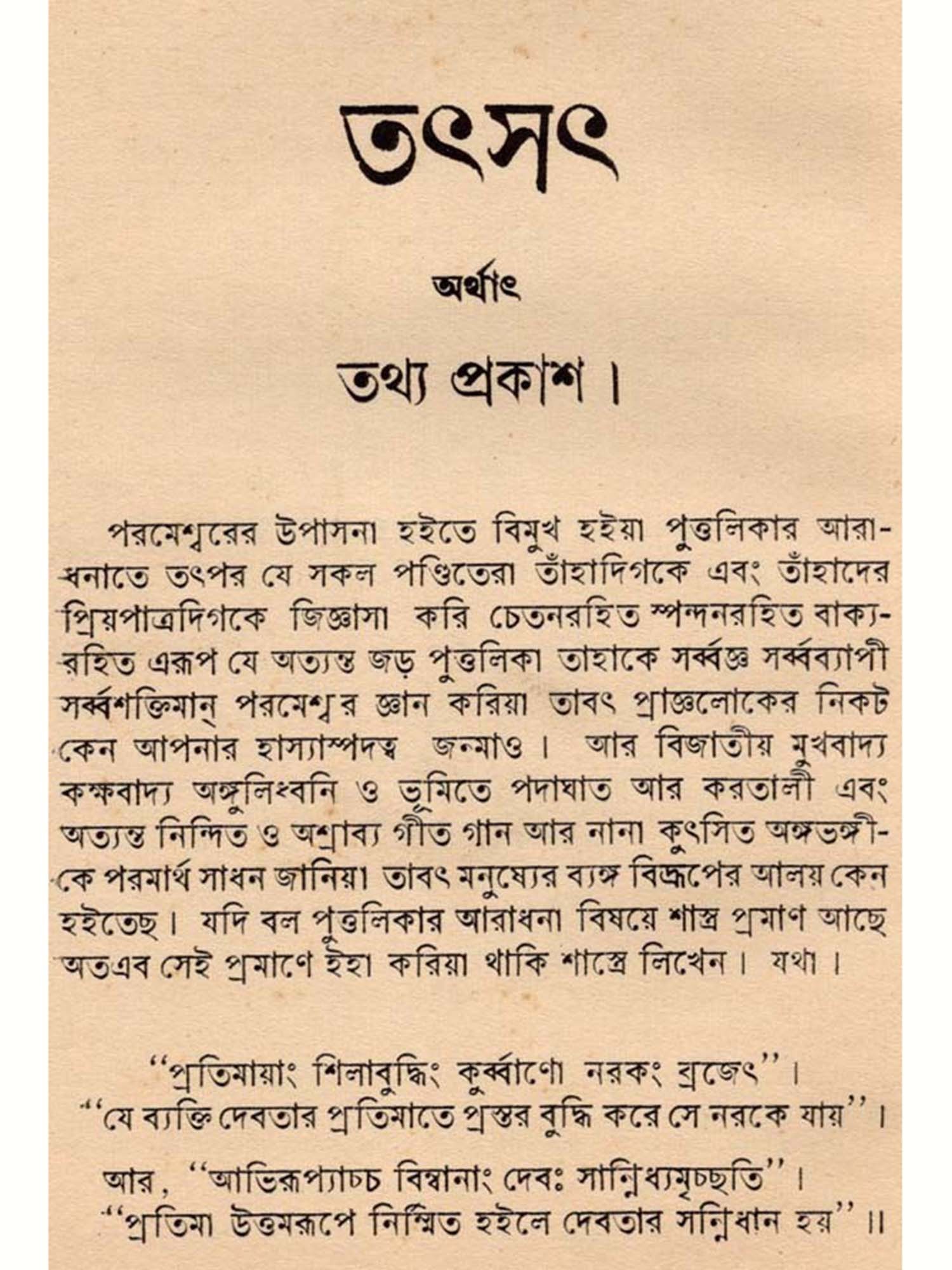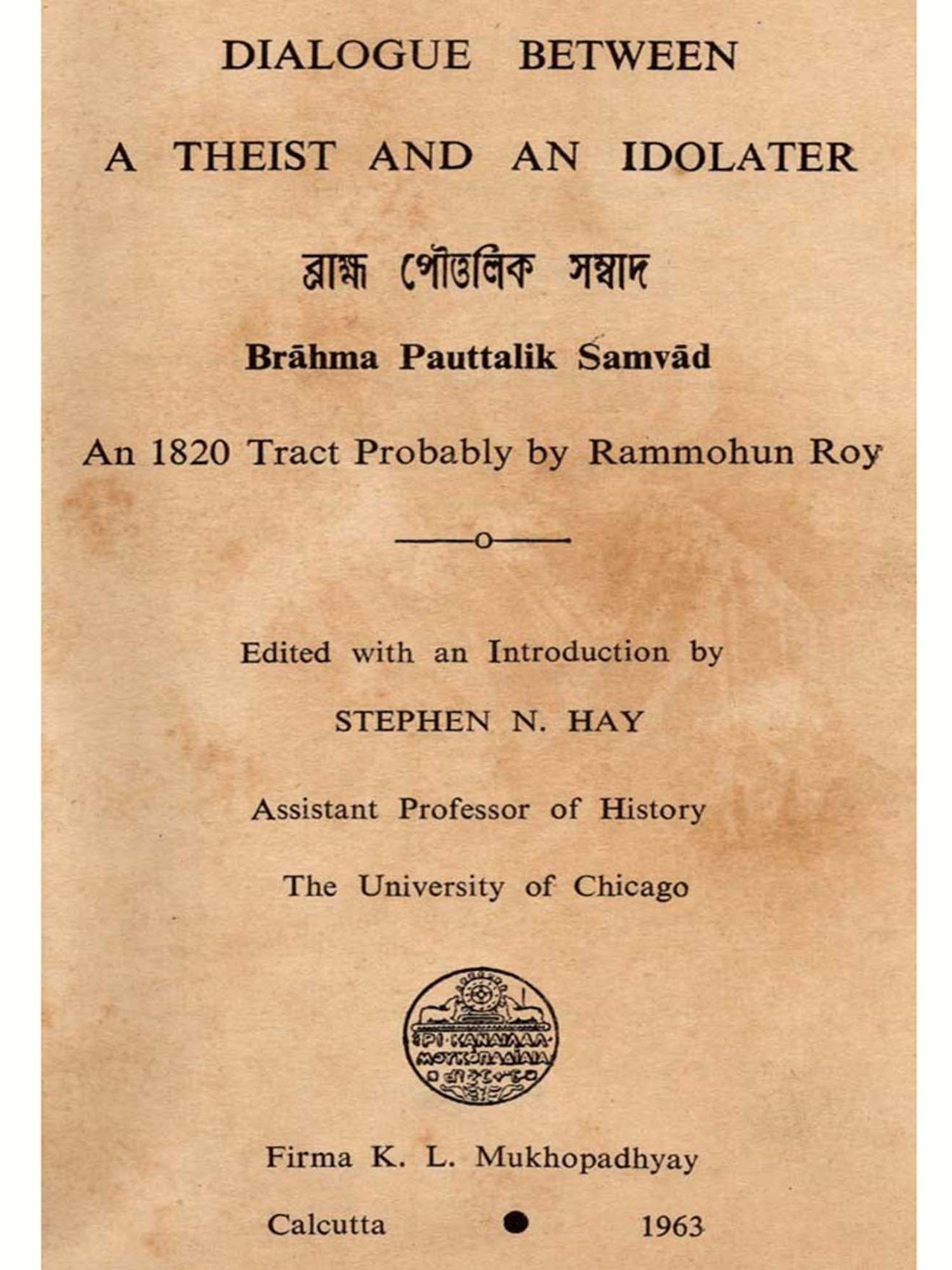 A Tract Against Idolatry: Dialogue Between A Theist and An Idolater- An 1820 Tract Probably by Rammohun Roy: Brahma Pauttalik Samvad (An Old And Rare)