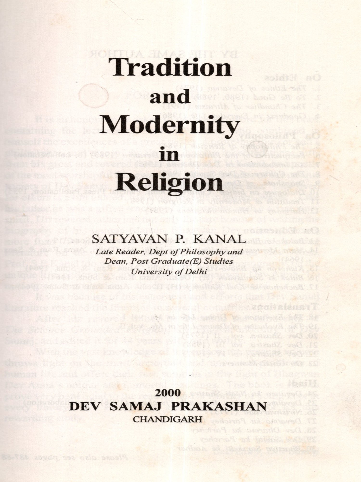 Tradition and Modernity in Religion (An Old and Rare Book)