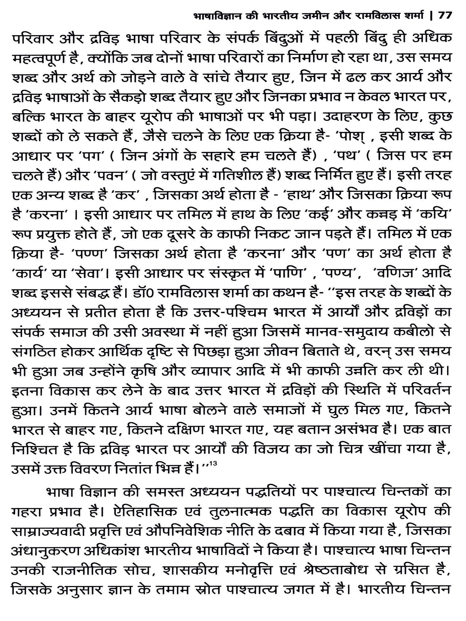 निष्कर्षतः कहा जा सकता है कि डॉ. शर्मा का भाषा-चिन्तन परंपरागत भाषा वैज्ञानिकों से भिन्न हैं। भाषाविज्ञान के क्षेत्र में डॉ. शर्मा का भाषाशास्त्रीय चिन्तन क्रान्तिकारी होने के साथ ही विशेष महत्व का है। लेकिन विदेशी भाषावैज्ञानिकों की लीक से हट कर लिखे जाने के कारण भाषाविज्ञान के क्षेत्र में उन्हें वह महत्व प्राप्त न हो सका, जिसके वे अधिकारी हैं। भाषाविज्ञान के क्षेत्र में रामविलास जी द्वारा दिए गए मौलिक अवधारणाओं पर प्रकाश डालना तथा उनके महत्व को प्रतिपादित करना इस पुस्तक का उद्देश्य है। इस दिशा में प्रस्तुत पुस्तक सफल सिद्ध होगी, मेरा ऐसा विश्वास है।