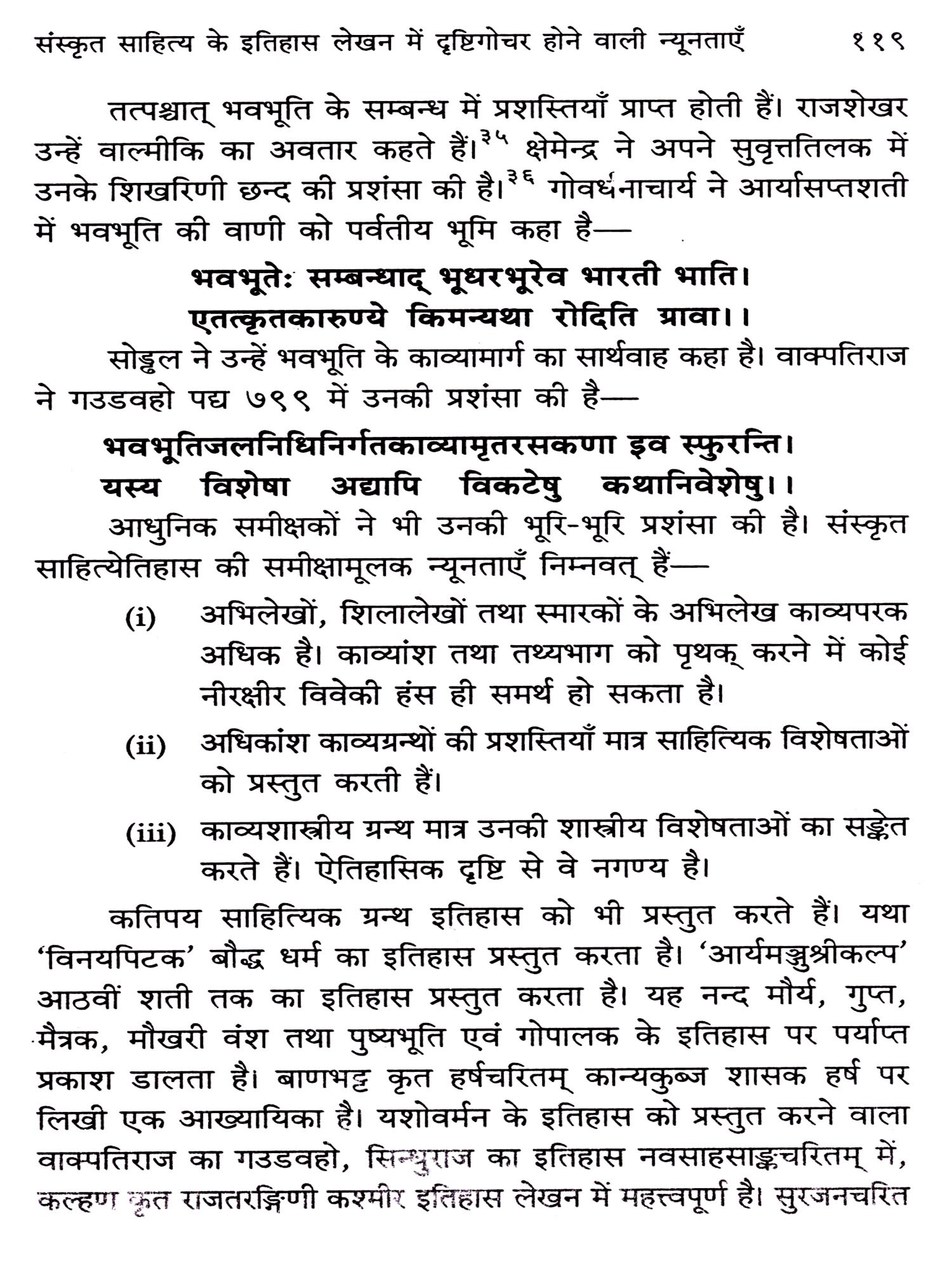 साहित्य मन्दिर के अगणित प्रदीपों को आलोकित कर, प्रत्येक की आभा को चित्रात्मक शैली से अलङ्कृत कर साहित्य-देव की नीराजना करने वाले उपासकों तथा आलोचकों का समन्वित उत्तरदायित्व लेकर चलने वाले इतिहासकार का पथ अनन्त है।