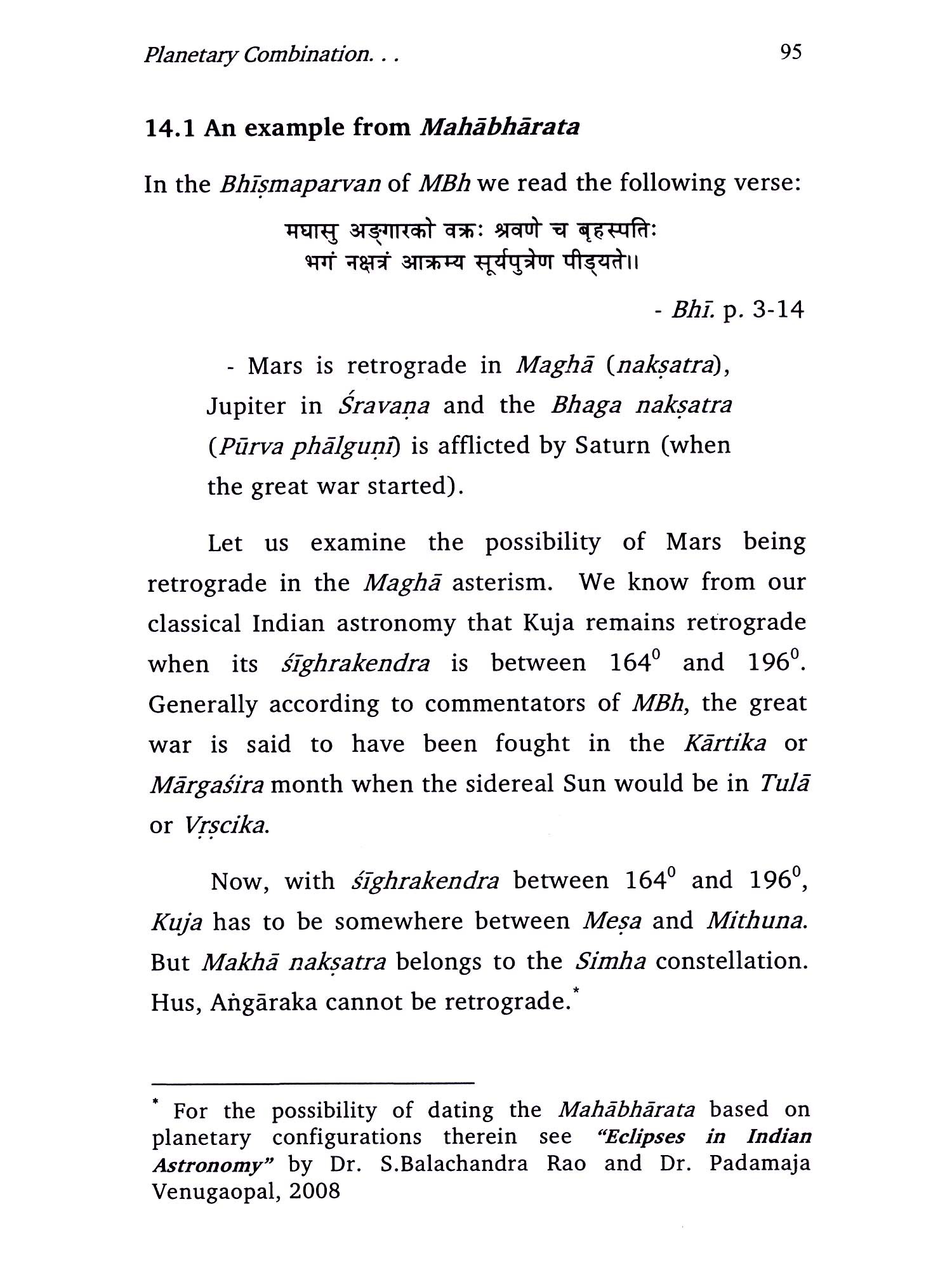 Dr. S.Balachandra Rao(b.1944) is Hon. Director, Bharatiya Vidya Bhavan's Gandhi Centre of Science and Human Values, Bangalore. He retired as Principal and Professor of Mathematics from the National College, Bangalore after 35 years service of teaching undergraduate and postgraduate students and guiding Ph.D. Candidates. Currently Dr. Rao is Hon. Professor at the National Institute of Advanced Studies (NIAS) and Member of the Research Council of the National Commission for History of Science, Indian National Science Academy (INSA), New Delhi. Dr. Rao has been working on research projects in Indian Astronomy under INSA., New Delhi, since 1993 and has authored several books on Indian Astronomy in English and Kannada.