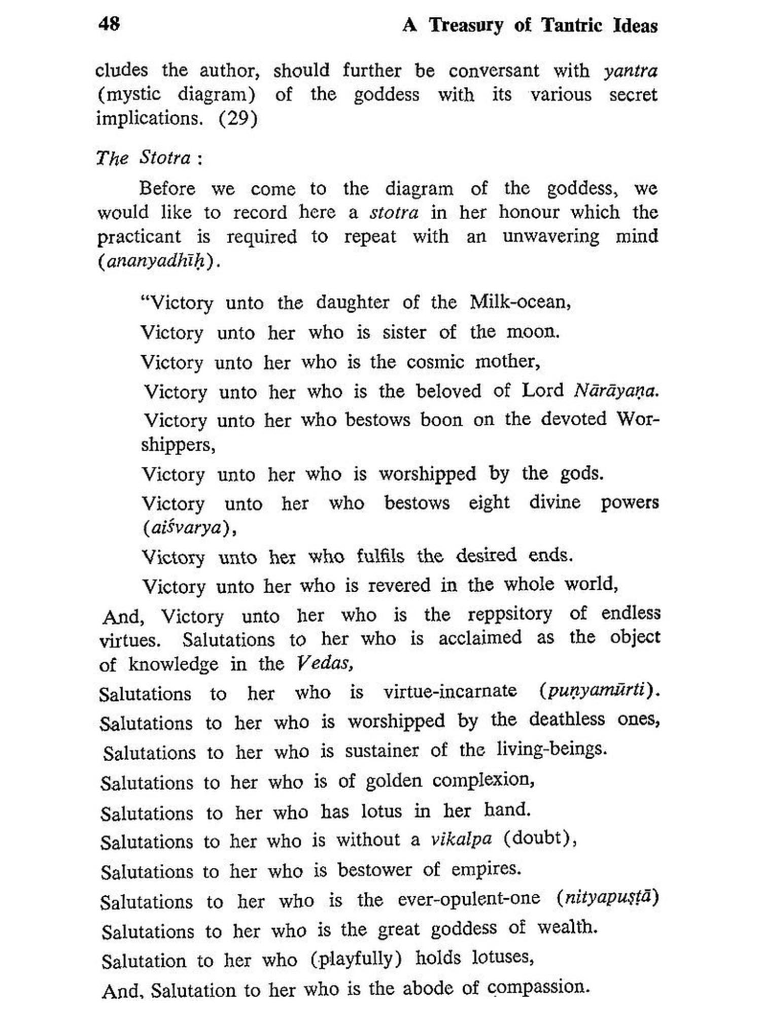 Sanskrit works, in India, have often been written for the guidance of a ruler. These works like the Arthasastra of Kautilya, generally contain elements of polity more than anything else. Samrajyalaksmipithika, on the other hand, appears to be written for an ideal Hindu Emperor, who is guided to expand his Empire and stabilize it through the adherence of a path of moral rectitude as enunciated by the author of the text.· This is obtained by the tantric worship of goddess Samrajyalaksmi.