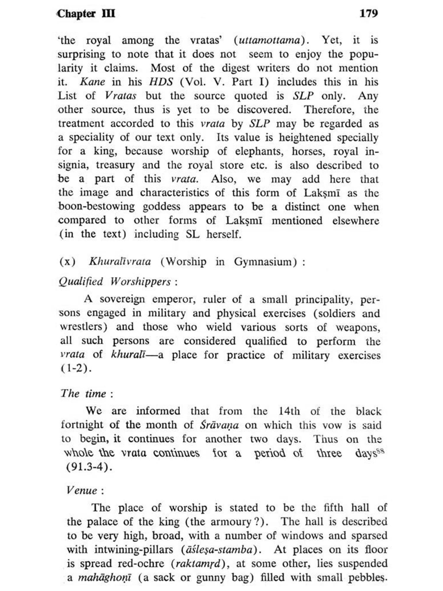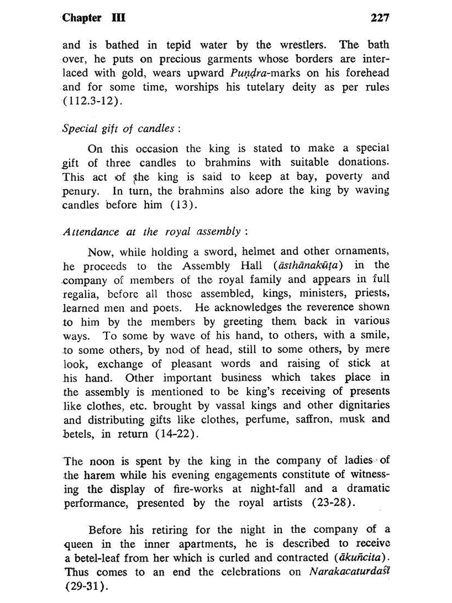 Samrajyalaksmipithika represents a new genre of encyclopaedic literature in Sanskrit, written for the use of a ruler or a king. It covers vital aspects of life and provides essential informations on them. As such, it contains a variety of topics ranging from science of rituals of Goddess Samrajyalaksmi to instructions on how to destroy an enemy. Descriptions on a number of vratas and utsavas, sixty-four arts and crafts, seventy-two royal officers, four-fold army, fortification and castramatation, construction and ornamentation of war-chariots, horse and elephant lores, weaponry, dress and ornaments and various sports and sources of royal entertainments are described in the text with gusto. And, therefore, it comes to epitomize the essence of the common culture in general and royal culture in particular of the concerned period.