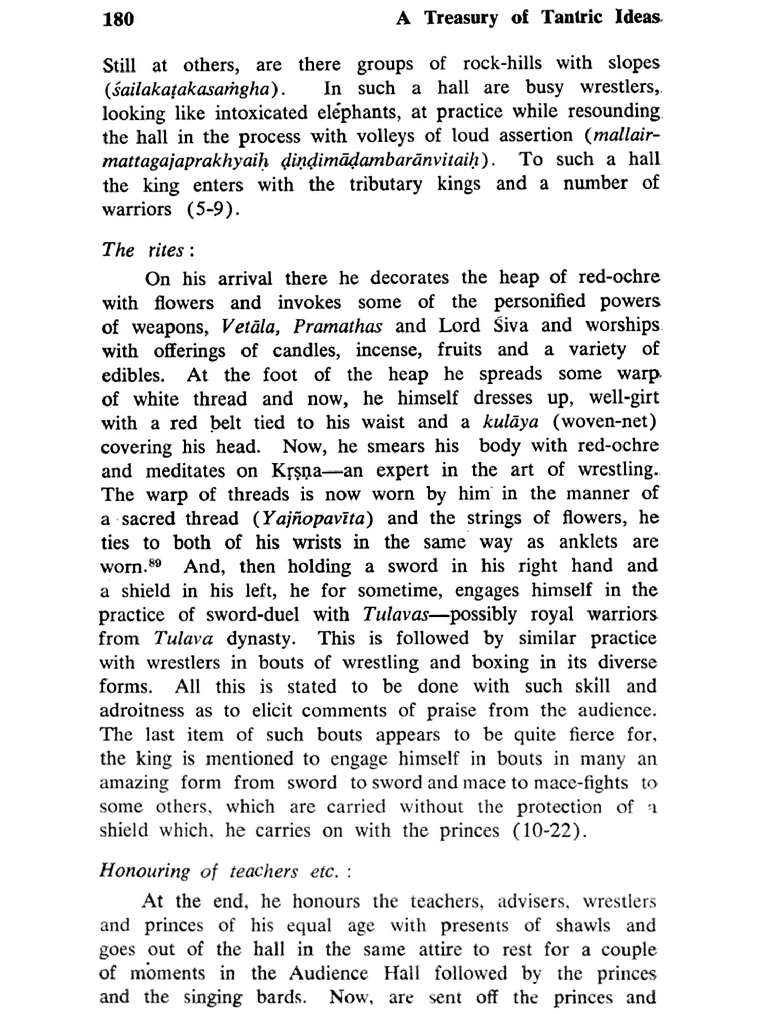 Samrajyalaksmipithika, though in many ways subscribes to the category of royal literature. Yet, it is not without its distinctions. It is interesting to note that there is no specific mention of the author of the text. In stead, it is projected to be a part of the great mass of tantric literature, which flourished in South India, known as Akasabhairavakalpa. As such, it also contains tantric rituals essential for a king. The role of such rituals practised by the foremost man-the king, is undoubtedly believed to be rewarding.