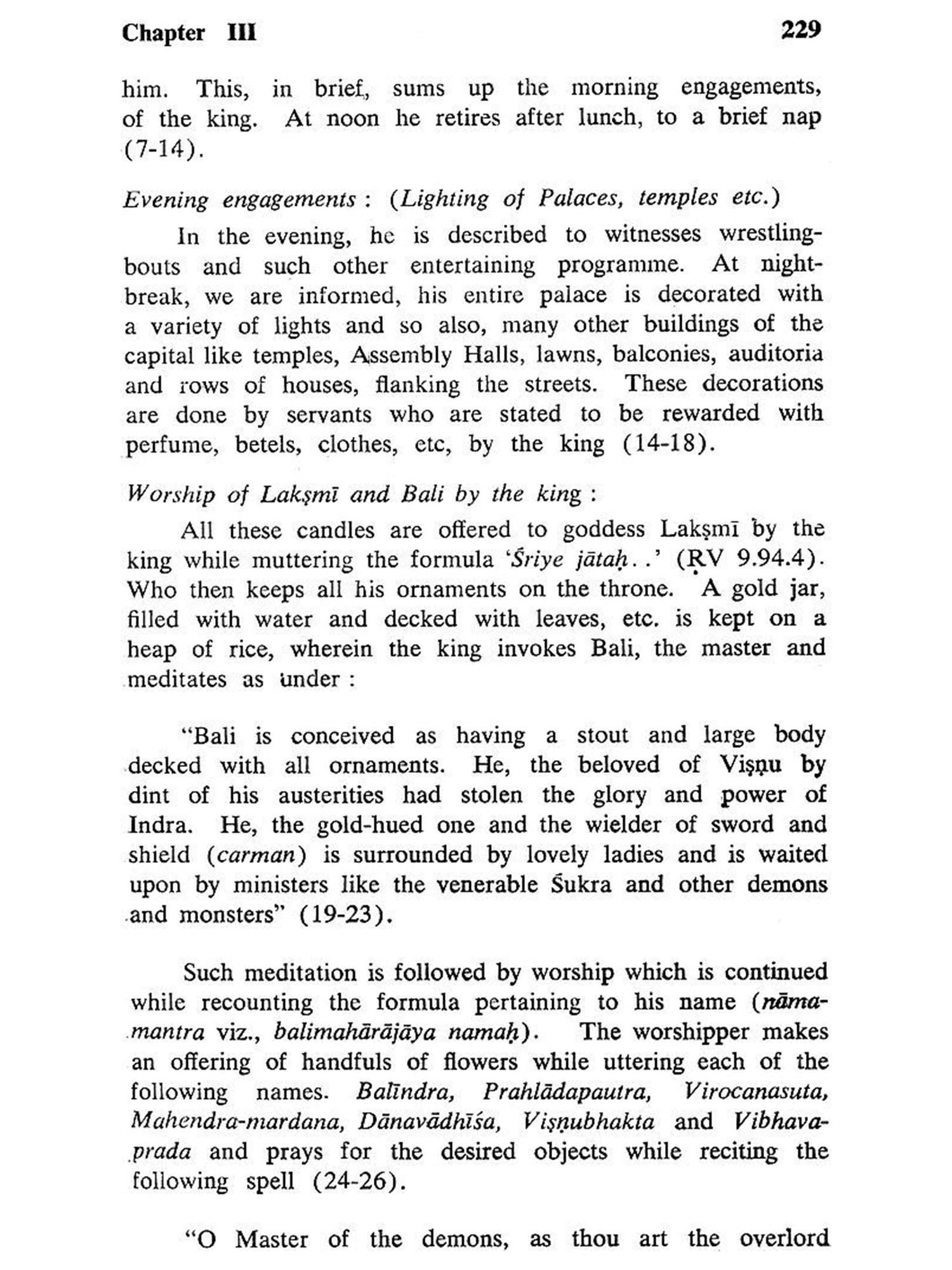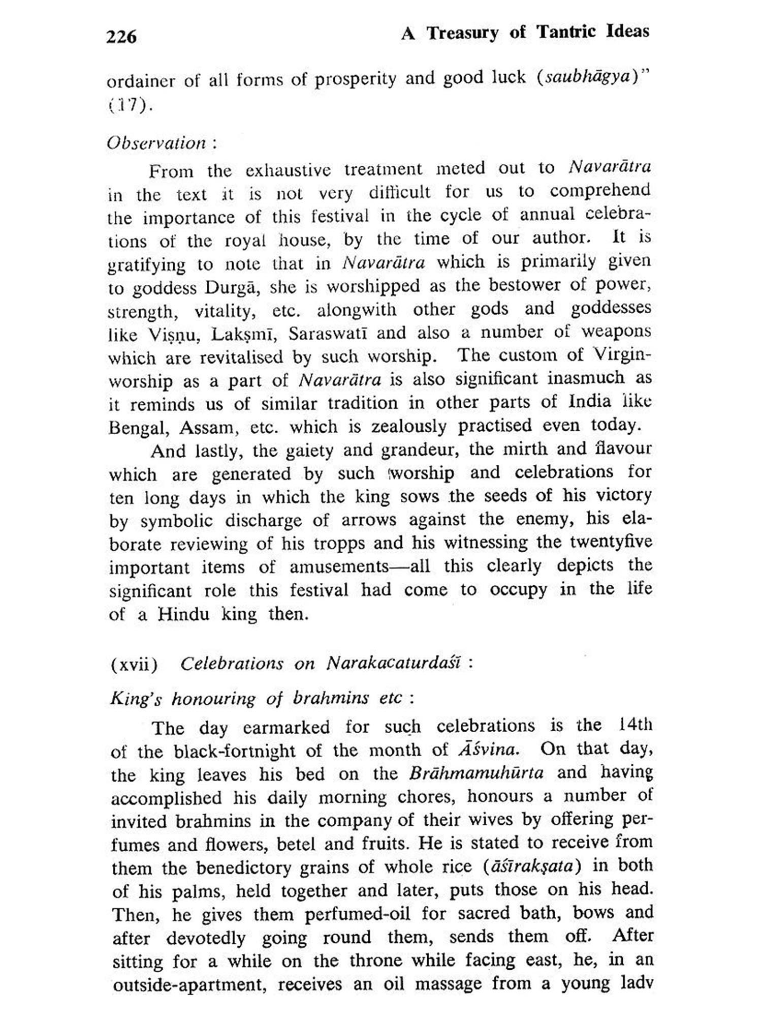 Samrajyalaksmi, the goddess of the wealth of Empire, is the presiding deity for the text and naturally the text describes a host of rituals performed in her honour. Other rituals performed at the time of royal coronation, consecration of a new palace and throne etc., also get full justice at the hand of our author. Unlike, Manasollasa or Sivatattvaratnakar, which deal at length about royal enjoyments, Samrajyalaksmipithika lays a lot of stress on the duty and obligations of a king which is a singularly significant matter.