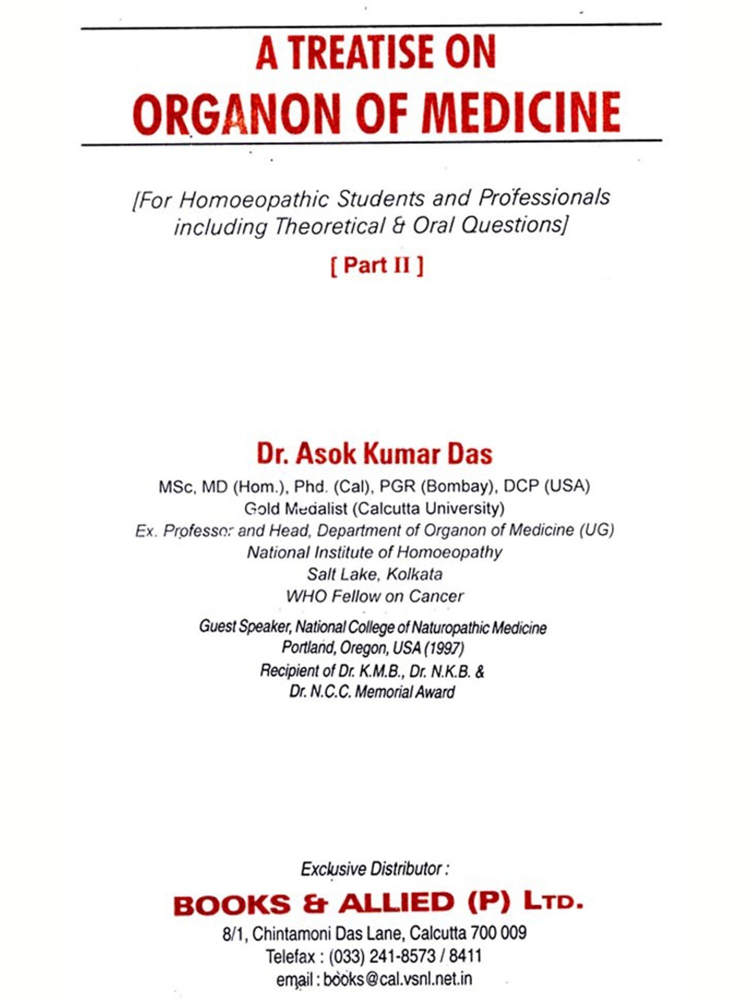 A Treatise on Organon of Medicine- For Homoeopathic Students and Professionals Including Theoretical & Oral Questions (Part-2)