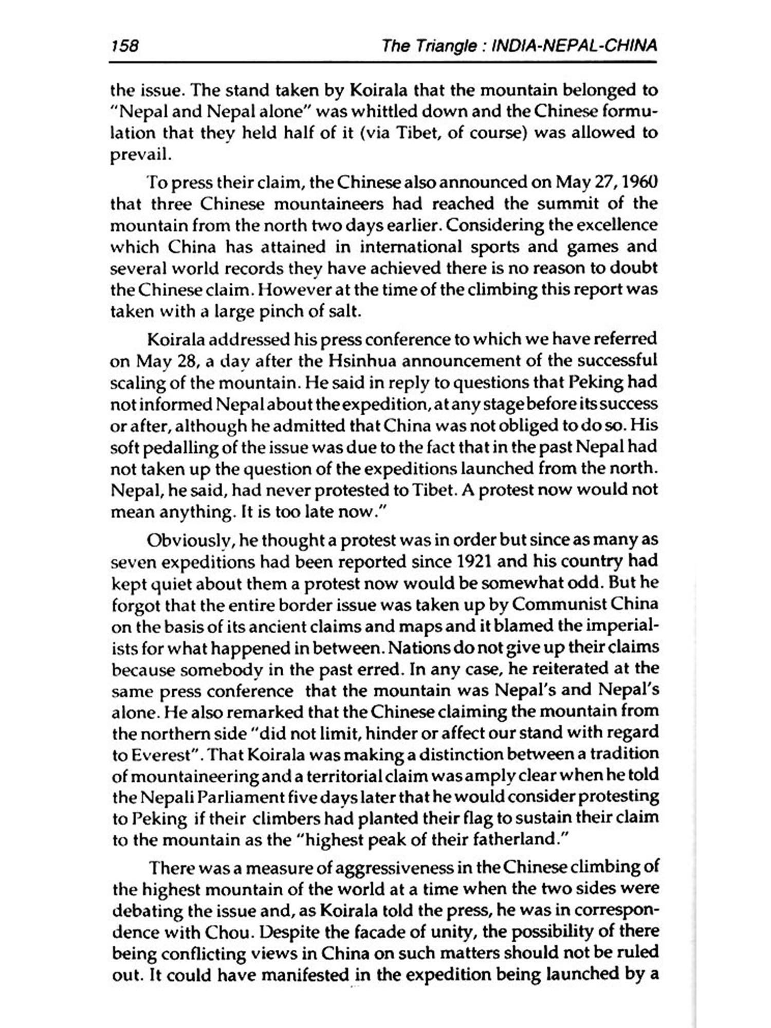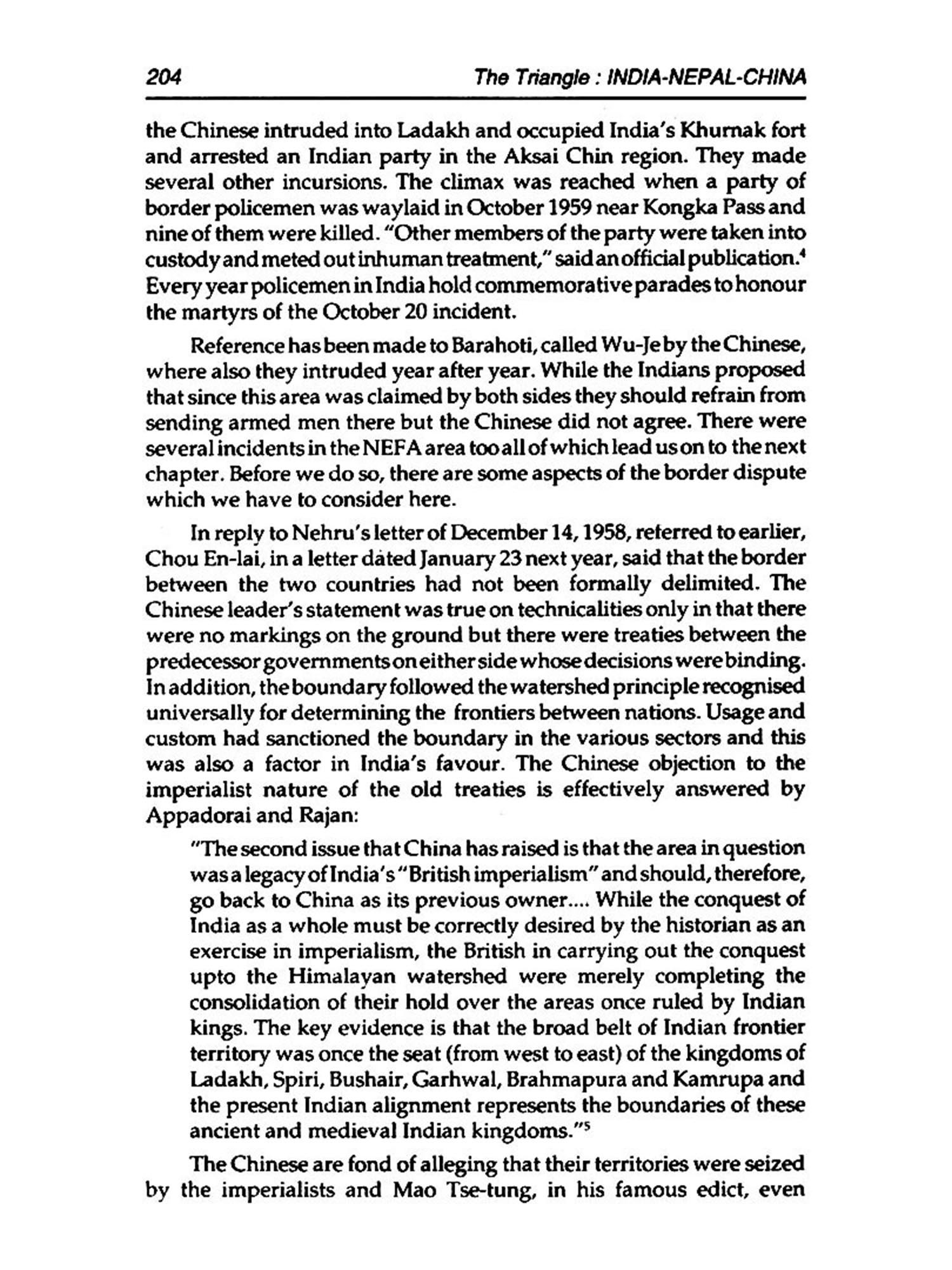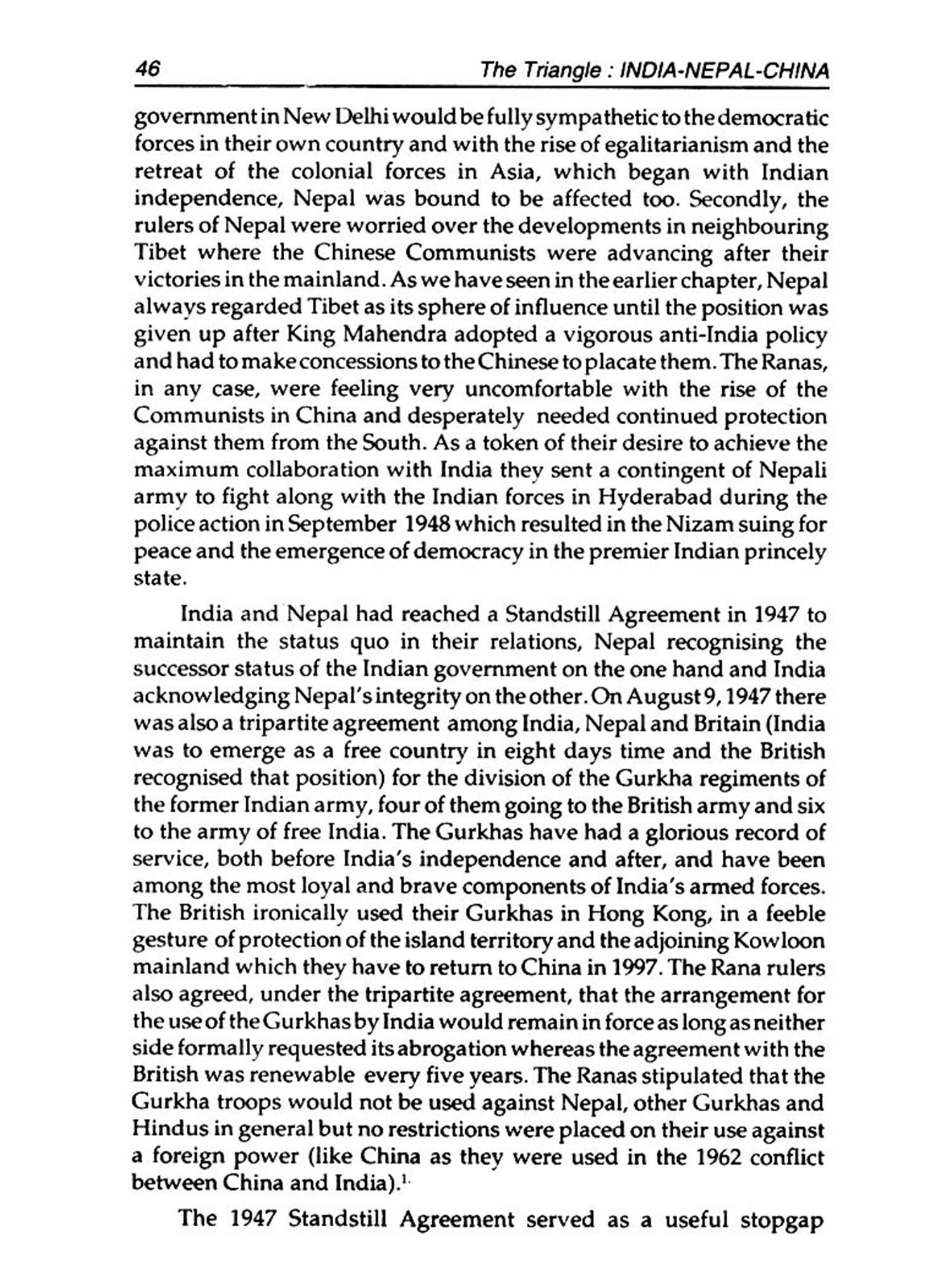 Nepal is the focus of the book, although the much larger format of India-China relations is also dealt with, both as an independent subject and in its linkage with the triangular theme. The relevant treaties and agreements are reproduced in the appendices along with the SAARC (South Asian Association for Regional Cooperation) Charter, although the book does not deal with SAARC at all.