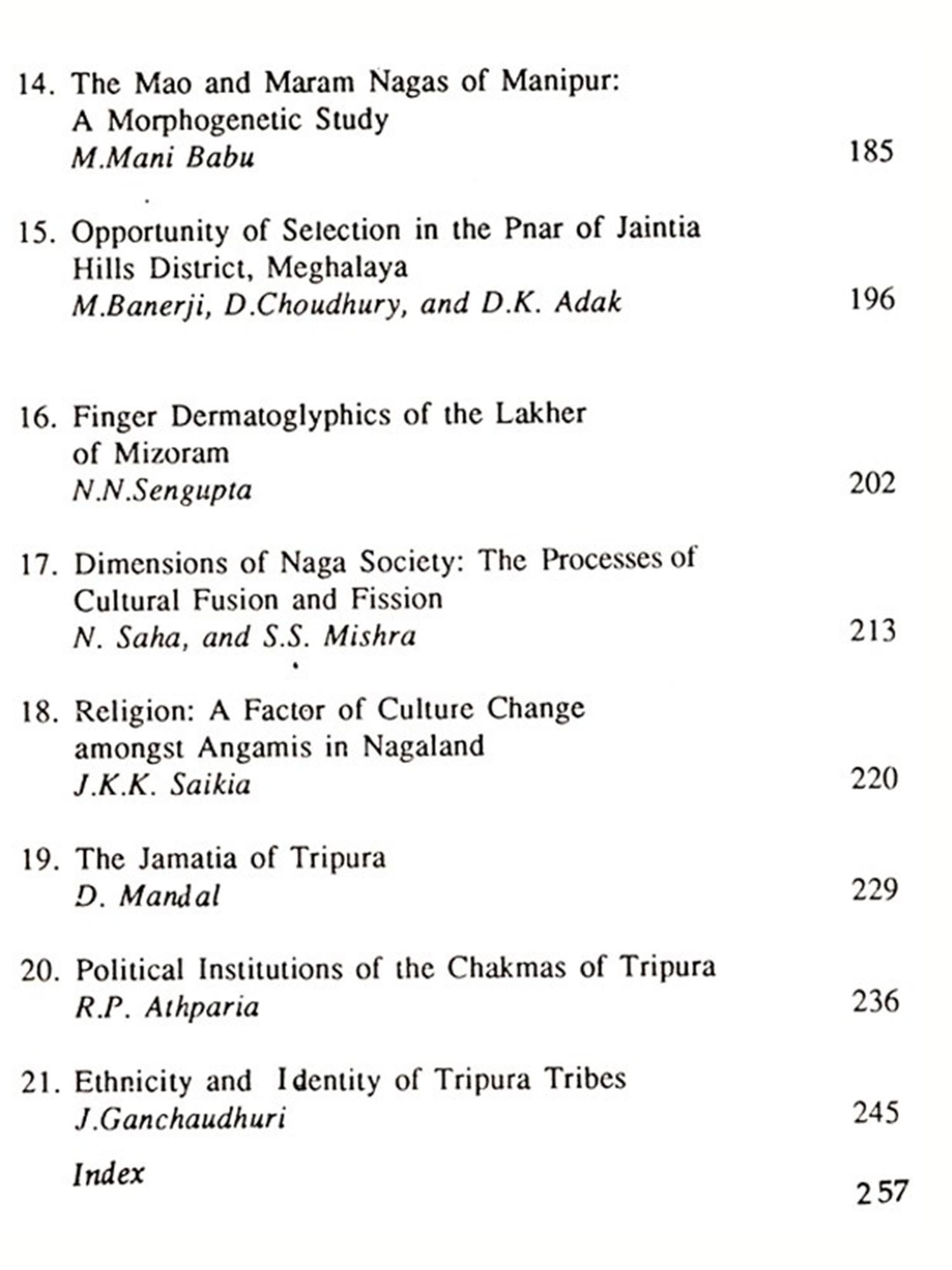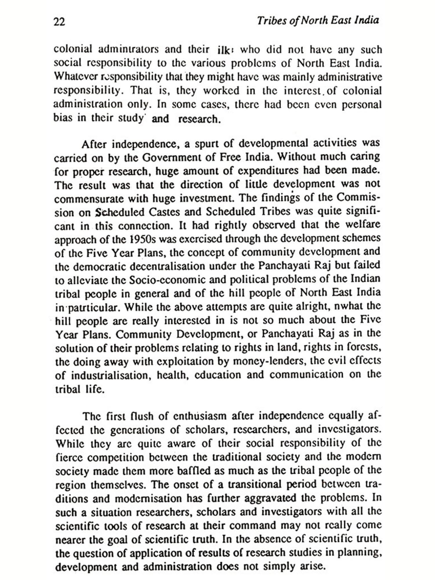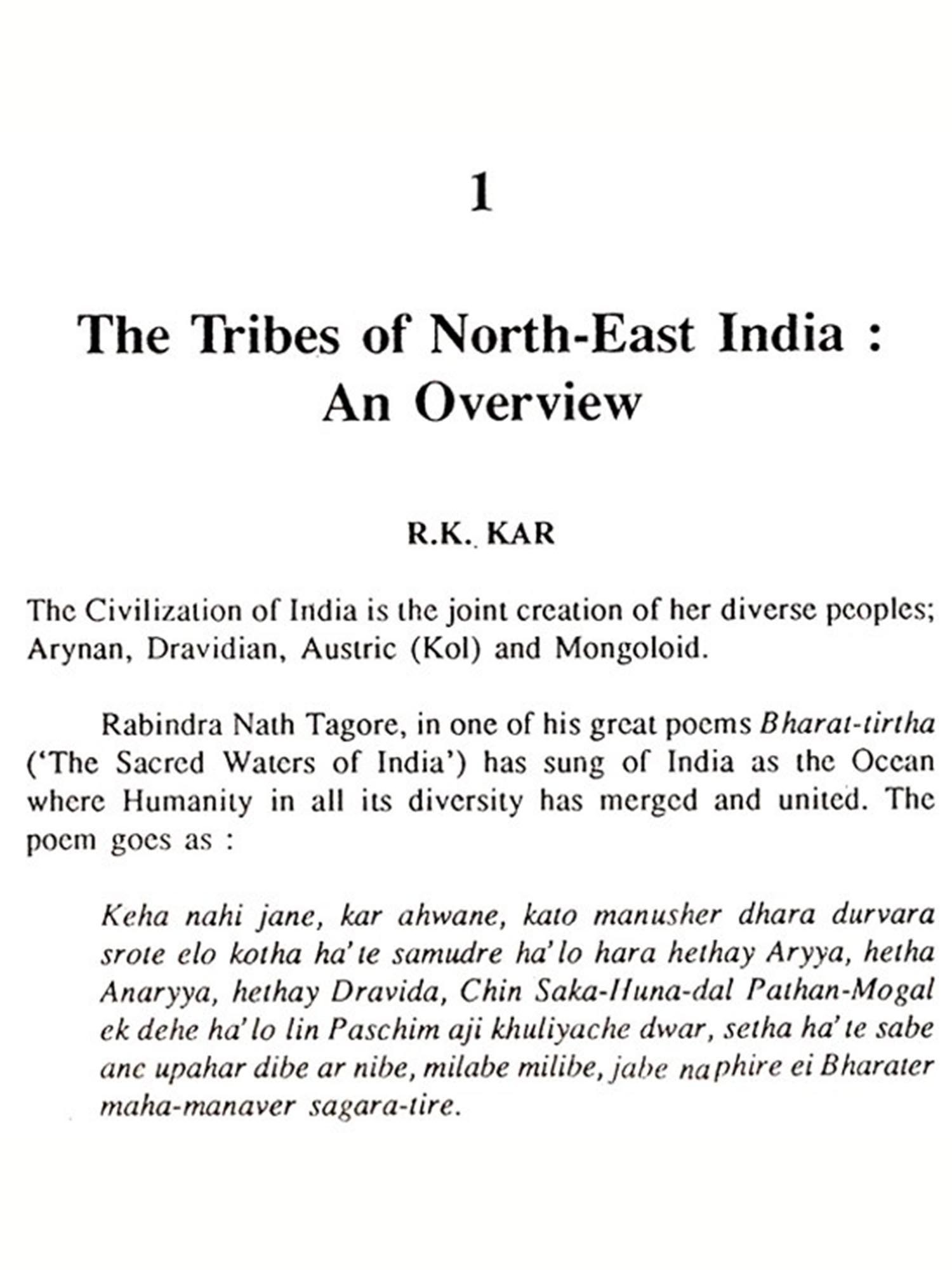 The present work is an attempt to contribute to the growing literature on the biological and cultural perspectives of the tribes of North East India. During last few decades, social scientists have increasingly turned their attention towards the development and problems of the tribes of India and literature on the subject at present is voluminous. However, in recent years, a tendency has been observed among many social scientists to avoid precise and clear-cut definition of the term 'tribe' employed by them in their studies. It is true that the definition of tribe in the Indian context appears to be in an inconstant state, as the word has been perceived variously. The word can be defined at different level having different perspectives. On academic parlance the tribe can be defined on theoretical level. Definition of the term may be on historical, anthropological or on sociological context. There is yet another approach to the definition of tribe which is charged with ideological orientation the Marxian approach. However, in the present context of India, most of the attributes of the above-mentioned approaches have lost their significance and existence. Defining tribe in terms of single set of attributes is thus, immensely difficult. Again, if we strictly follow the above indicators, probably many groups which are scheduled as tribals would cease to remain as tribal while some other non-scheduled groups may easily claim the scheduled status.
