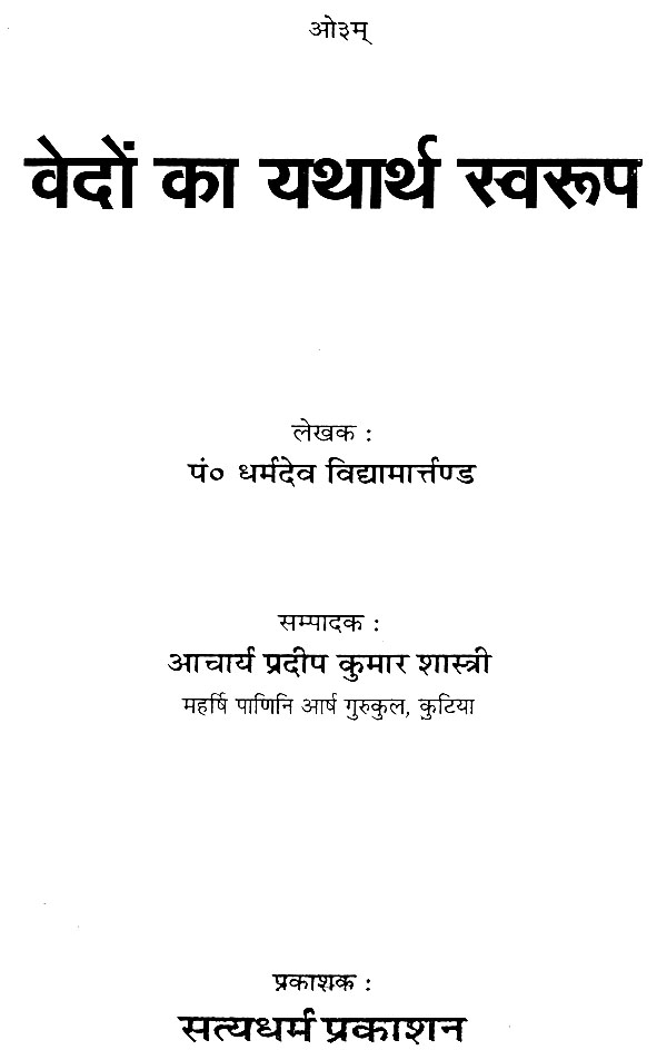 I extend a hearty welcome to Pandit Dharmadeva Vidyamartand's book on the Vedas which is the result of life- long work on the subject by this most devoted Vedic scholar.