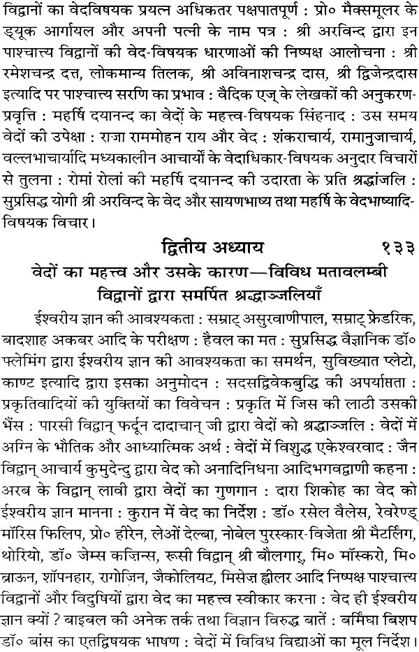 I congratulate our author on the vast learning that his book discloses and the masterly hold on the subject. As a lover of literature. I should wish the contents of the Vedas to be intensively studied for their spiritual, poetic, moral and social significance independently of the question of their divine or human origin. Even when so approached, the Vedas will appear to carry a deeper sense of spiritual, aesthetic and moral values and a more comprehensive vision of life than modem man can claim to have experienced. And they will give a clue to the perennial spring at which the sages, saints and philosophers of the land have drunk through the millenniums and kept the soul of India alive.