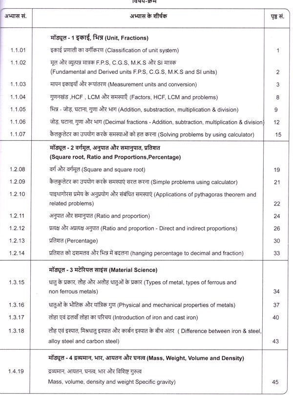 मैकेनिक डीजल & मैकेनिक ट्रेक्टर: Mechanic Diesel and Mechanic Tractor (Workshop Calculation and Science, NSQF 1st Year,As Per Revised Syllabus July 2022-1200 hrs)