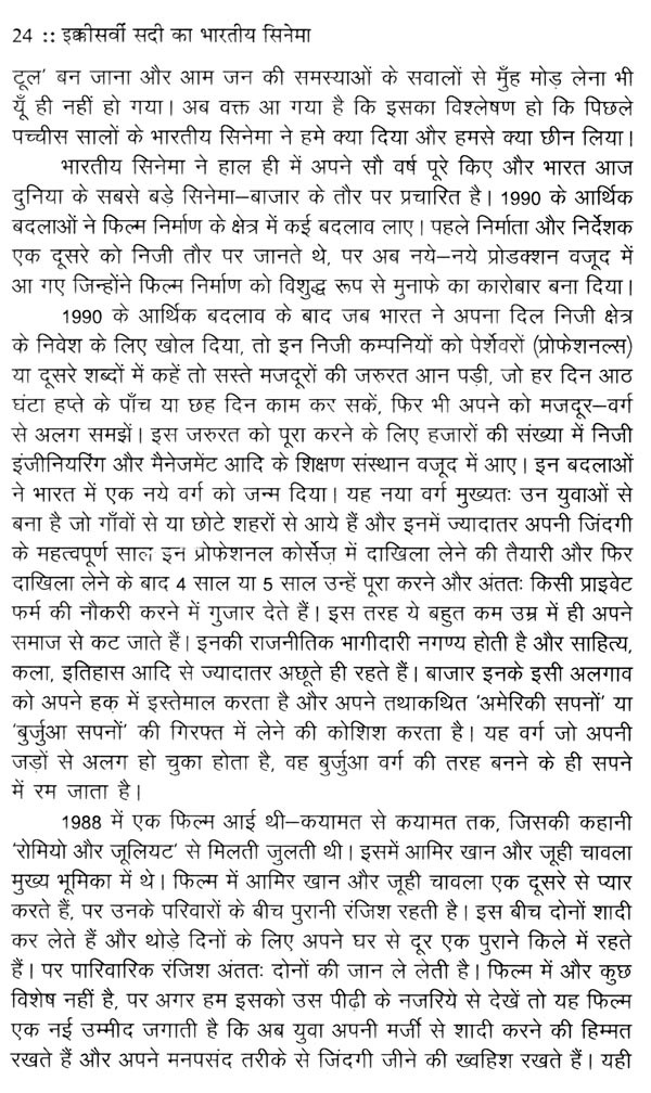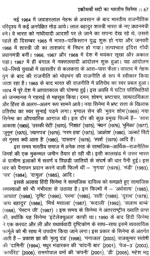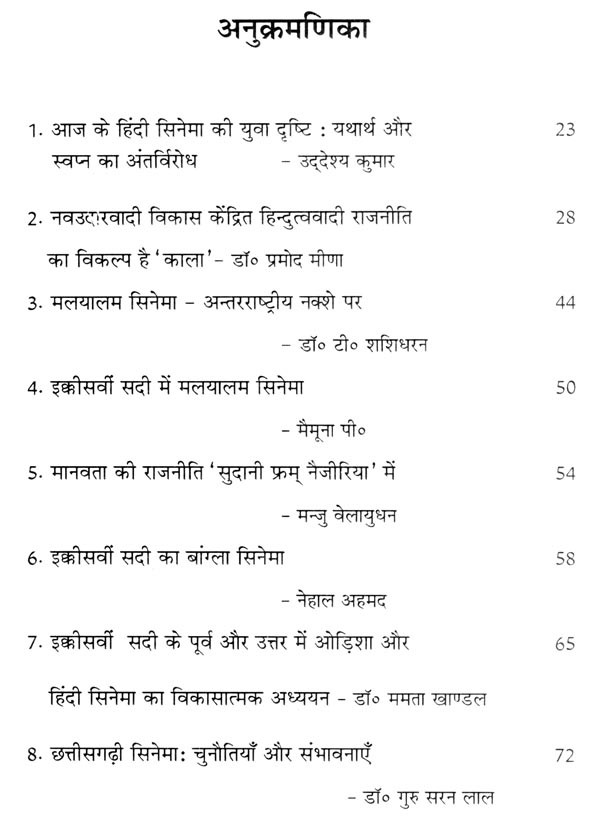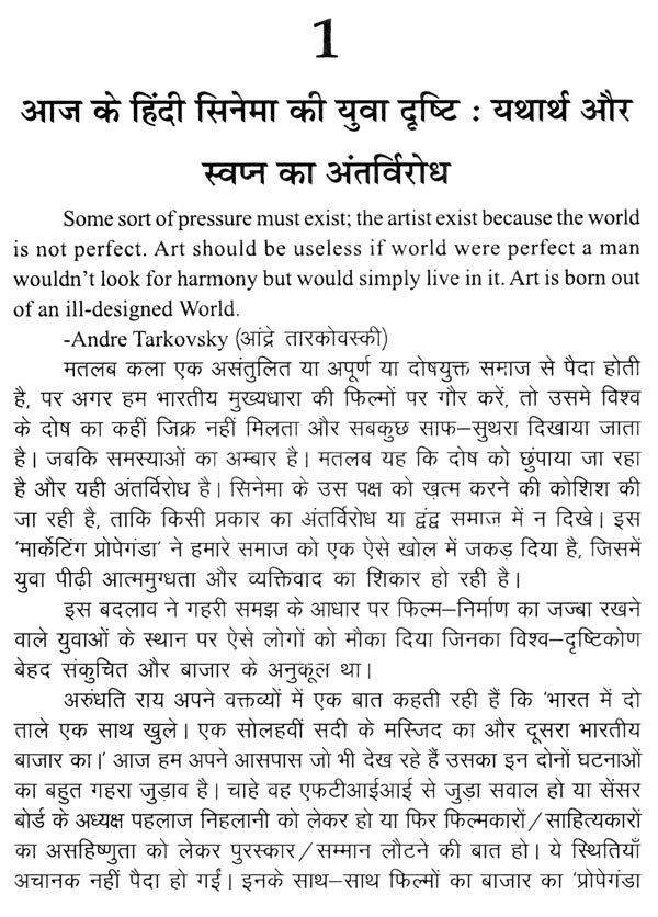 प्रस्तुत किताब इन्हीं मुद्दों को अलग-अलग नजरिये से देखने का प्रयास करते हुए अपनी बात रखती है। जब हम भारतीय सिनेमा की बात करते हैं तो इसका मतलब भारत में बनने वाली सभी भाषाओं की फिल्मों से है, इसलिए हमारी कोशिश रही है कि सभी भाषाओं की फिल्मों से सम्बन्धित लेख शामिल किए जाएँ, काफी हद तक इसमें सफलता भी मिली है। यह बात सच है कि दुनिया में कुछ भी मुकम्मल नहीं होता, तो हम भला कैसे हो सकते थे। हमें इस बात का खेद है कि तेलुगु, कन्नड़ और पूर्वोत्तर के सिनेमा पर कोई लेख शामिल नहीं कर पाए। बावजूद इसके, इस किताब में जो भी लेख शामिल हैं उसके लेखकों ने पूरी मेहनत और ईमानदारी से शोधपरक और तथ्यात्मक रूप से अपनी बात रखने की कोशिश की है। उनके इस प्रयास के लिए तहेदिल से शुक्रिया अदा करता हूँ।