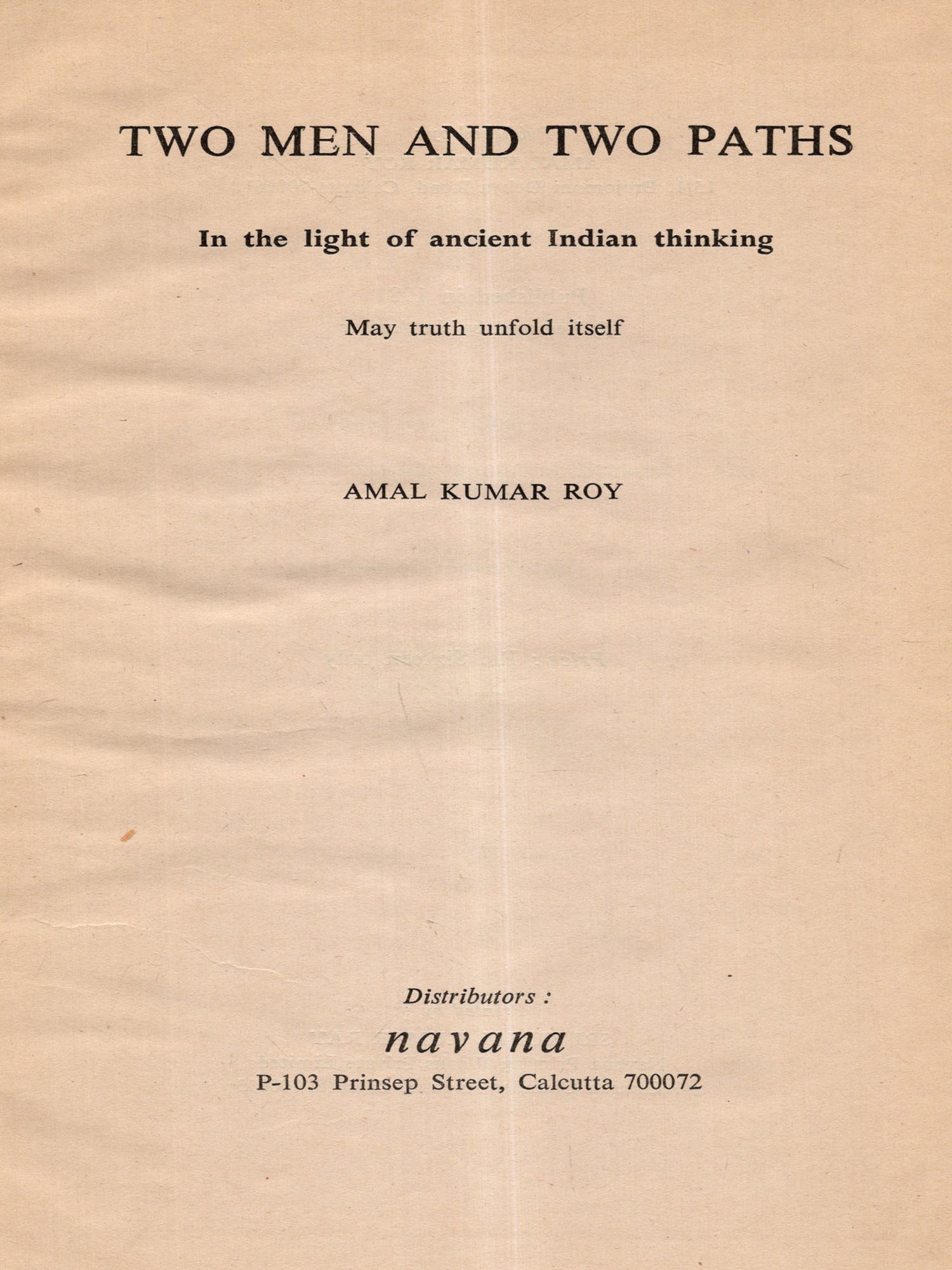 Two Men and Two Paths- In The Light of Ancient Indian Thinking May Truth Unfold Itself (An Old and Rare Book)