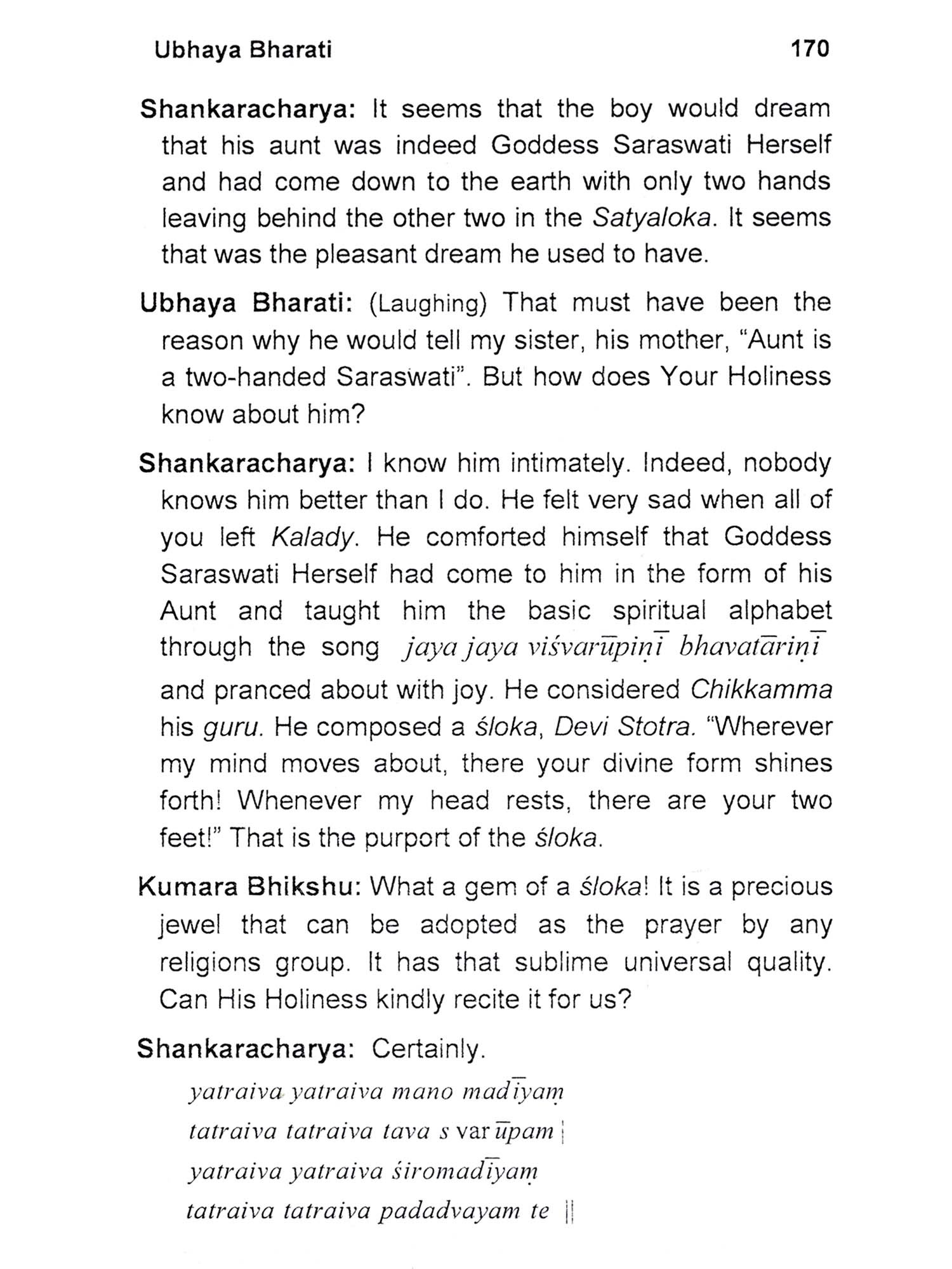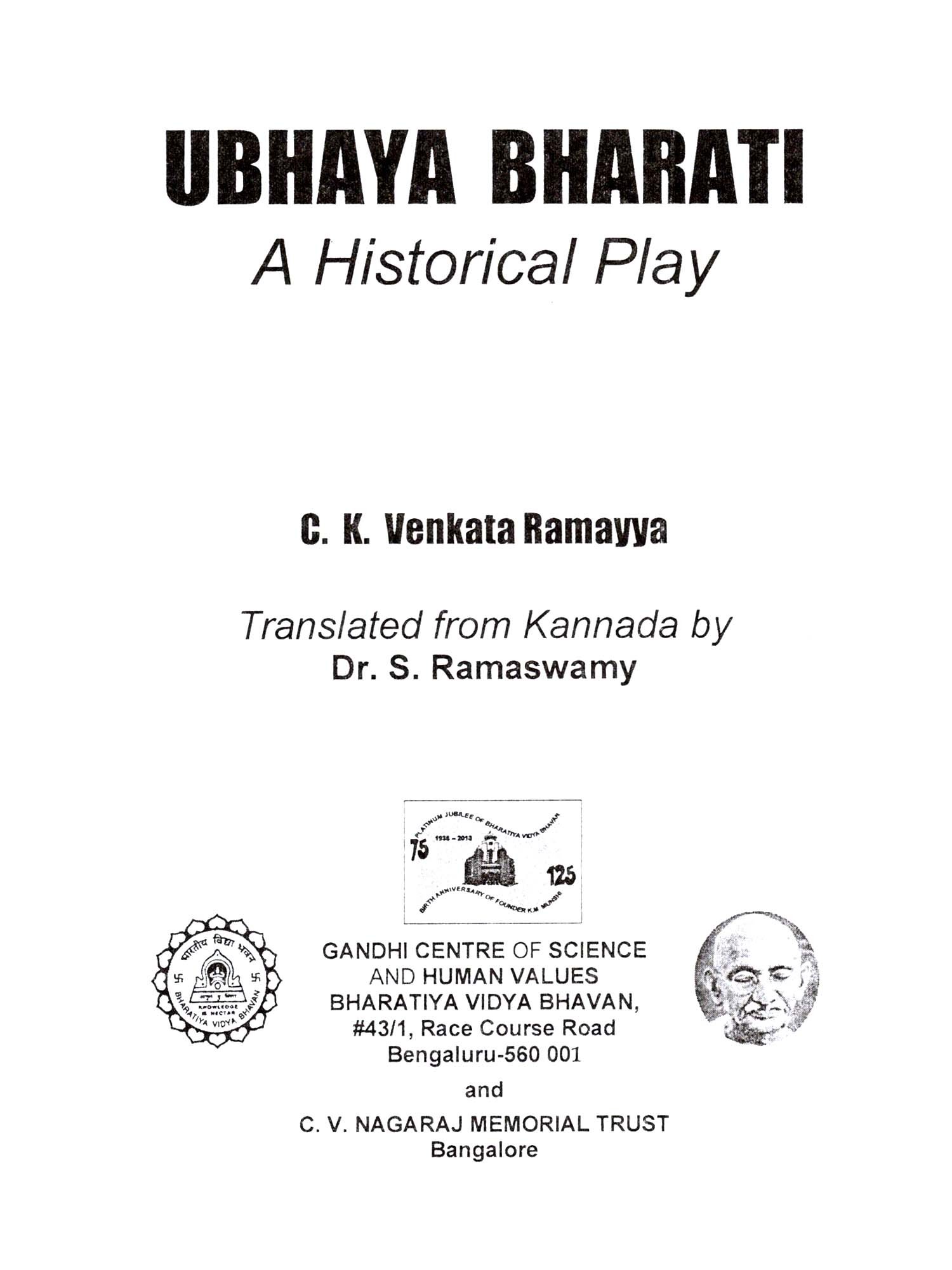 It is with great pleasure and reverence that we are bringing out this publication, Ubhaya Bharati, on this very auspicious occasion of the Platinum Jubilee of the Bharatiya Vidya Bhavan and the 125th Birth Anniversary of Kulapati Dr. K. M. Munshiji, the founder of Bharatiya Vidya Bhavan. Over the years, Bhavan's Gandhi Centre for Science and Human Values has published, both in English and Kannada, a number of books related to a variety of subjects, such as history, philosophy, biography, and science. A few of these books discuss certain aspects of Sanskrit and Kannada literature as well. Now, for the first time, Gandhi Centre is publishing an actual literary work, that too a play, in its original Kannada version and its English translation. The historical play, Ubhaya Bharati, focuses on the life of the great scholar-debater Saraswati, who bears the title Ubhaya Bharati, and her husband Mandana Mishra, and their interaction with Adi Shankaracharya. This lofty and thought-provoking work has been written by the celebrated author of the last century, C. K. Venkata Ramayya. C. K. Venkata Ramayya, or CKV as he was popularly known, was a multifaceted personality, whose writings spanned a wide range of literary categories. His plays, some of which were successfully staged, used to be highly popular. His play Ubhaya Bharati reflects not only his deep scholarship, but also his consummate skill in stagecraft.