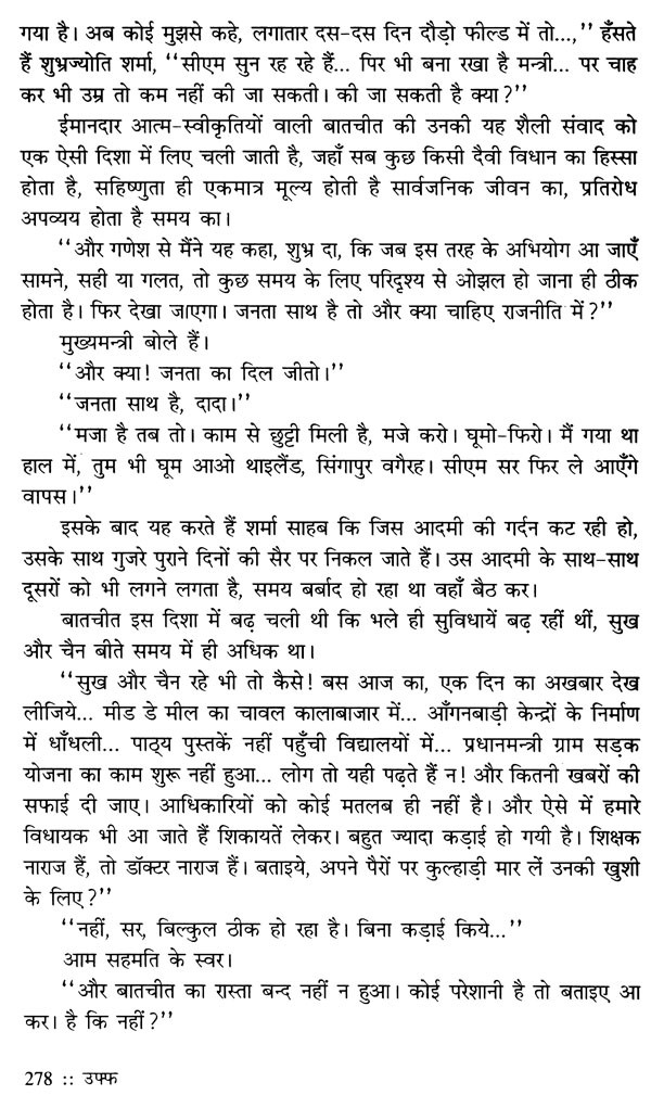 जब जीवनानुभव और रचनाशीलता का मेल होता है तब 'उफ़्फ़' जैसा उपन्यास जन्म लेता है। प्रमोद कुमार तिवारी ने प्रामाणिक अनुभव के आधार पर असम के जीवन में मचे घमासान को 'उफ़्फ़' में पूरे विस्तार से विवेचित किया है। प्रशासन, परम्परा, जीवनशैली, राजनीति और राष्ट्रीय अखंडता आदि त्रिज्याओं के सहारे यह उपन्यास एक बड़ा रचनात्मक वृत्त बनाता है। इसकी परिधि पर हैं राष्ट्रीय चिन्ताएँ और केन्द्र में है 'भारतीयता'। प्रमोद कुमार तिवारी ने 'इनसाइडर' की तरह 'उफ़्फ़' की रचना की है। यह उपन्यास प्रशासन में निहित विरूपताओं को सफलतापूर्वक उजागर करता है। व्यंग्य, विडम्बना और क्षोभ इसके रचनात्मक लक्षण बन गये हैं। प्रमोद की भाषा प्रायः निरलंकार है और यही सहजता उनकी शक्ति भी है। राजनैतिक विवेक के साथ लिखा एक महत्त्वपूर्ण उपन्यास। शक्ति, सत्ता और धन के समीकरणों से निर्मित व्यवस्था का चरित्र दिन-ब-दिन जन विरोधी होता जा रहा है। शिखर से धरातल तक एक विचित्र 'विसंगत व्यवस्था' की उपस्थिति ने सामान्य जन को स्तब्ध कर रखा है। प्रमोद कुमार तिवारी ने 'उफ़्फ़' में उपन्यास विधा को विमर्शमूलक तेवर प्रदान कर सके हैं, जो कि उल्लेखनीय है।