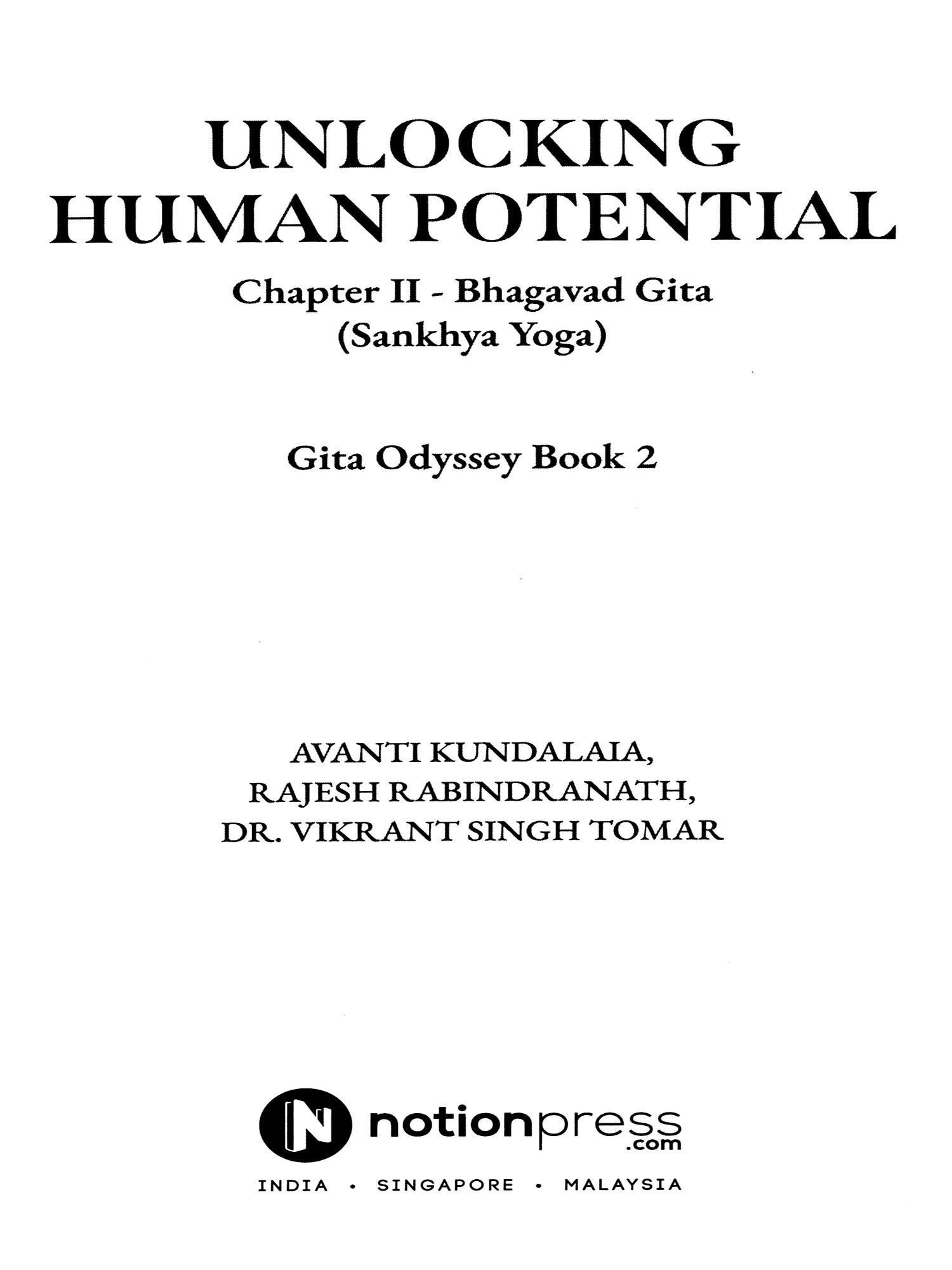 Unlocking Human Potential is the second offering in the Gita Odyssey Series, co-authored by Avanti Kundalia, Rajesh Rabindranath, and Dr. Vikrant Singh Tomar.