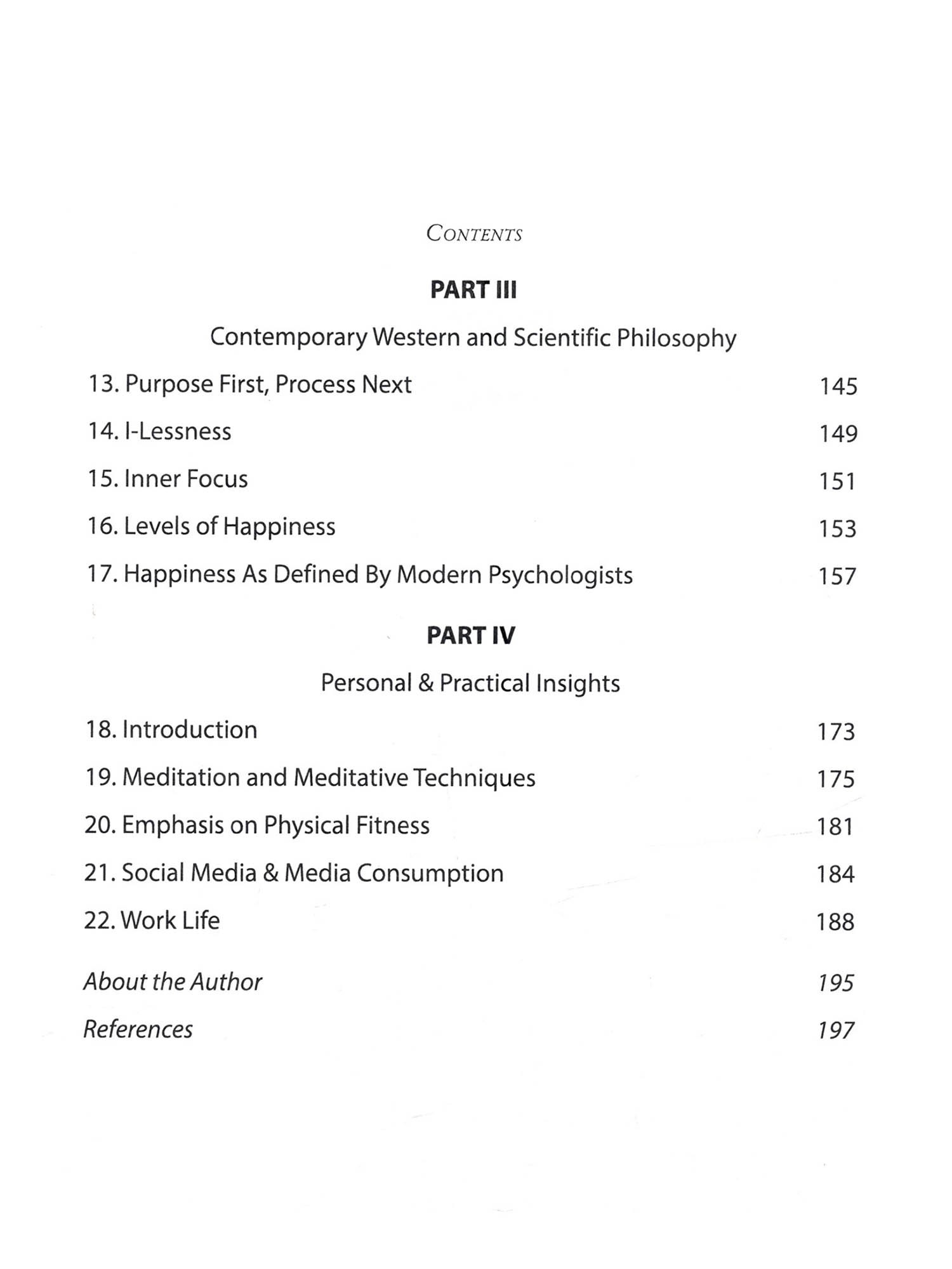 What is enduring happiness? Is it the same as joy or bliss? Is it possible to sustainably achieve this? What is the purpose of this life? Where can I find answers to dealing with constant stress and unhappiness? Philosophers, religions, and psychologists have grappled with these questions since humanity started and humans started to think. This book gives a high-level introductory glance at some of the answers to these questions from the lens of the ancient Hindu scriptures (Vedas) written thousands of years ago and what modern scientists are discovering about happiness in the present. Engage in a fascinating discovery of methods to achieve eternal bliss and enduring happiness. This book starts off by uncovering the principles to achieve eternal bliss through the lens of one of the oldest Hindu scriptures in the world, the Vedas. It then dives deep into Vedanta, which is the most prominent Hindu philosophical and metaphysical teaching of the Vedas. The book then deals with the fusion of Eastern and Western philosophy to uncover secrets for enduring happiness. The book then delves into the subject of enduring happiness from the perspective of Western psychologists and bridges the gap with ancient Hindu Vedic knowledge. The book concludes with the authors' personal and practical insights on striving toward enduring happiness.