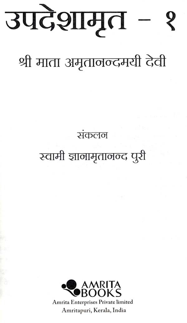 हम प्रार्थना करते हैं कि यह ग्रंथ सब पाठकों को अम्मा के जीवन में सदा प्रकाशित उच्च आध्यात्मिक आदर्शों को अपने जीवन में अमल में लाने, एवं परम सत्य के पथ पर आगे बढ़ने की प्रेरणा दे सके। इस प्रार्थना के साथ अमृतवाणी का यह लघु संकलन भक्तों की सेवा में समर्पण किया जा रहा है।