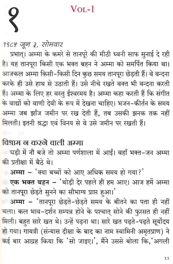 विश्व में ऐसे समदर्शी महात्मा अत्यंत दुर्लभ हैं जो चराचर जगत को आत्मा में और आत्मा को संपूर्ण चराचर जगत में सदा देखते रहते हैं। कहीं हम उन्हें देख भी लें, तो भी आत्मा के नितान्त मौन में लीन वे महात्मा शायद हमसे बात करने और हमें उपदेश देने तैयार न हों। किन्तु, यदि कोई पूर्णज्ञानी महात्मा मातृवात्सल्य की आर्द्रता एवं आचार्य की अहैतुक कृपा से उपदेश देने व शासित करने को तैयार हों, तो उसे हमारा परम-सौभाग्य ही बताया जा सकता है। श्रीमाता अमृतानन्दमयी देवी के दर्शन एवं अमृतवचन पूरे विश्व के लाखों लोगों में जीवन-परिवर्तन के नवकन्दलों का विकास कर रहे हैं। इसी पृष्ठभूमी में ब्रह्मचारियों, भक्तजनों तथा जिज्ञासु आगंतुकों के साथ अम्मा ने (१९८५ जून से १९८५ नवम्बर इस कालावधी में) जो वार्तालाप किए हैं, उनका एक अमूल्य संग्रह इस ग्रन्थ के रूप में संकलित करके प्रथम भाग में सहर्ष प्रकाशित किया जा रहा है। उर्वरित भाग आप सब की सेवा में द्वितीय भाग में भी शीघ्र ही प्रस्तुत किया जाएगा।