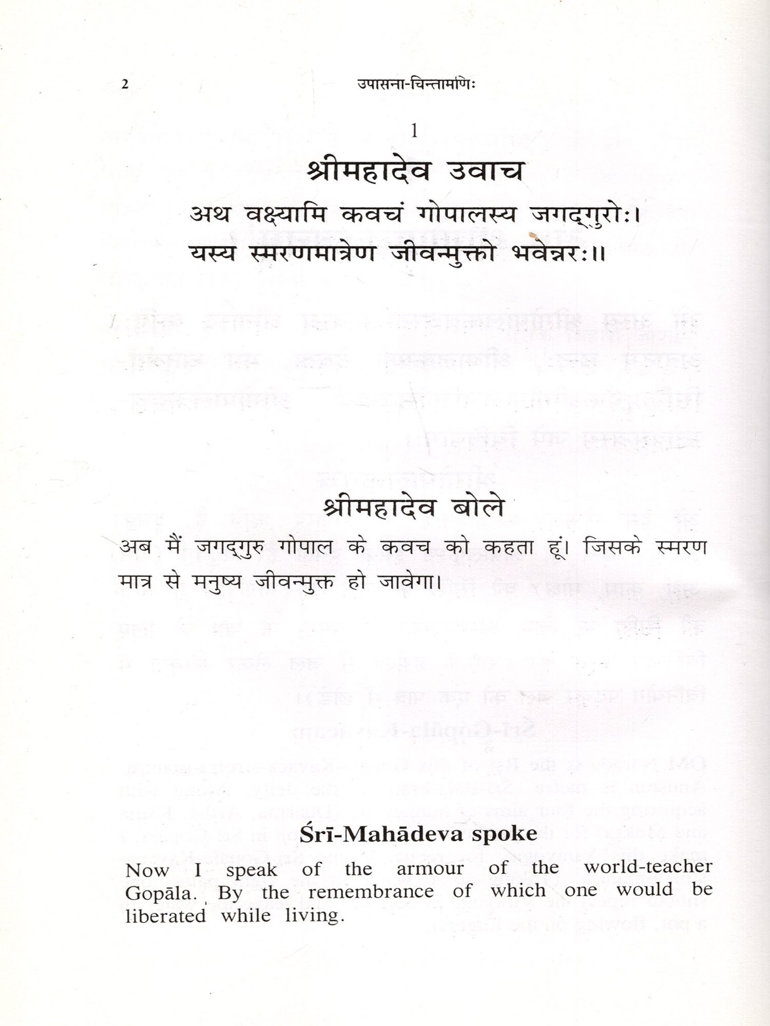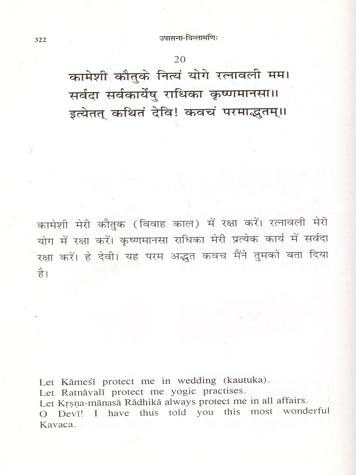 Now I present to the public Volume II of the "Upasana-cintamaņi', (Wish-yielding gem of meditation). The Volume is entitled "Kavaca-rahasyam" (Secret of armour). The Kavaca-rahasyam" represents a profound study of the Kavacas in the form of explanations and details of rituals to be applied before recitation. I found the majority of these Kavacas in one of the diaries of Rampratap Shastri and I have systematically arranged them and have added some more relevant materials. The titles of this book and the present Volume are given by me.