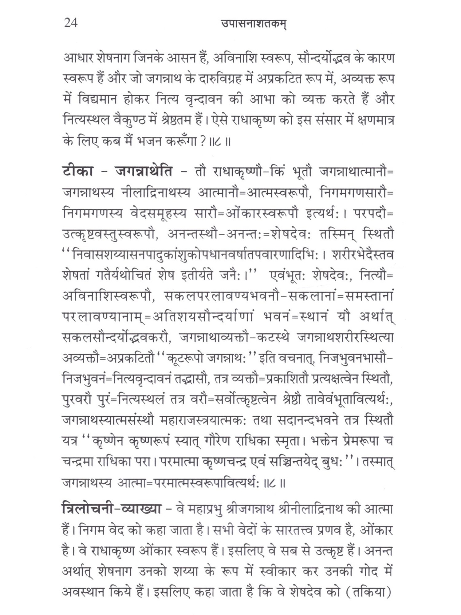 उपासनाशतकम् (मूल, भाषार्थ, संस्कृतटीका, त्रिलोचनी हिन्दी-व्याख्या सहित): Upasanasatakam (Mula, Bhasartha, Samskrta-Tika, Trilocani Hindi-Vyakhya Sahita)