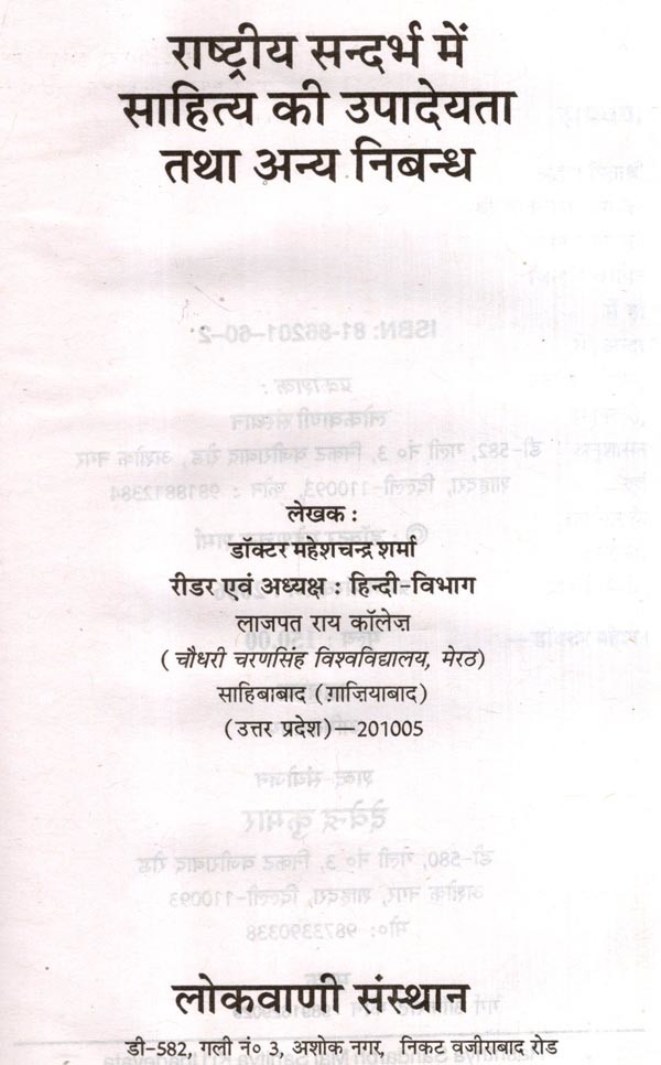 राष्ट्रीय संदर्भ में साहित्य की उपादेयता तथा अन्य निबन्ध: Utility of Literature in National Context and Other Essays
