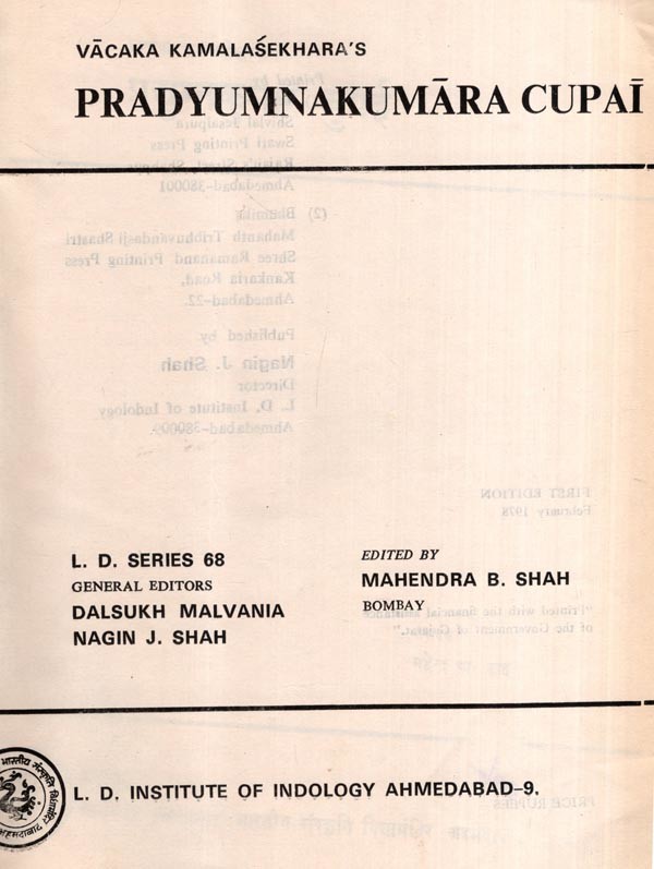 प्रद्युम्नकुमार चुपई: Vacaka Kamalasekhara's- Pradyumnakumara Cupai (An Old and Rare Book)