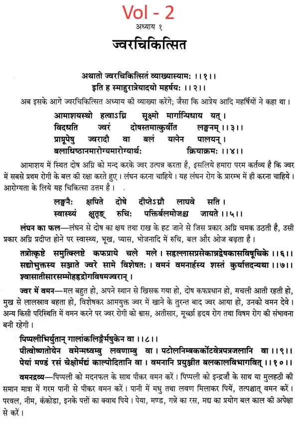 इधर दस-पन्द्रह साल से यह अनुभव हो रहा है कि लोगों में संस्कृत भाषा के प्रचार का क्रमशः ह्रास हो रहा है। इतना ही नहीं, केवल संस्कृत के मूल ग्रन्थों और उनकी संस्कृत-व्याख्याओं द्वारा अध्यापन-अध्ययन में समर्थ अध्यापकों और छात्रों की संख्या भी उत्तरोत्तर घटती ही जा रही है। ऐसे समय में शास्त्र की रक्षा के लिए यह आवश्यक हो गया है कि भारत की प्रान्तीय भाषाओं में तथा विशेषतः राष्ट्रभाषा हिन्दी में आयुर्वेद के मौलिक संहिता ग्रन्थों का अनुवाद किया जावे परन्तु ये अनुवाद ऐसे होने चाहिये कि जिनमें मूल के विशद अनुवाद के साथ टीकाकारों के आशय तथा अन्य ग्रन्थों में इस विषय पर आये हुए भावों के साथ तुलनात्मक दृष्टि से स्पष्ट विचार प्रदर्शित किये गये हो। प्रसङ्गवशात् तद्विषयक दर्शनादि शास्त्रान्तरों के विषय का भी सोपपत्तिक वर्णन हो।