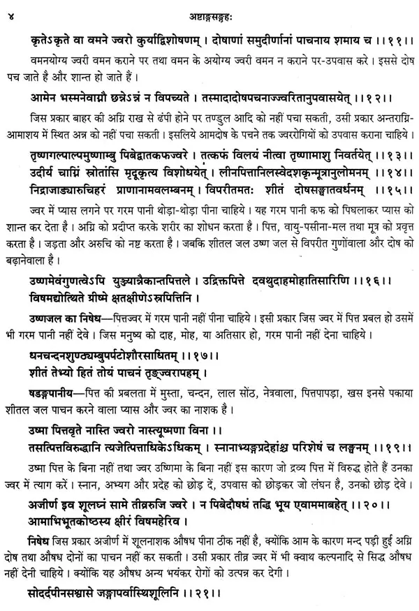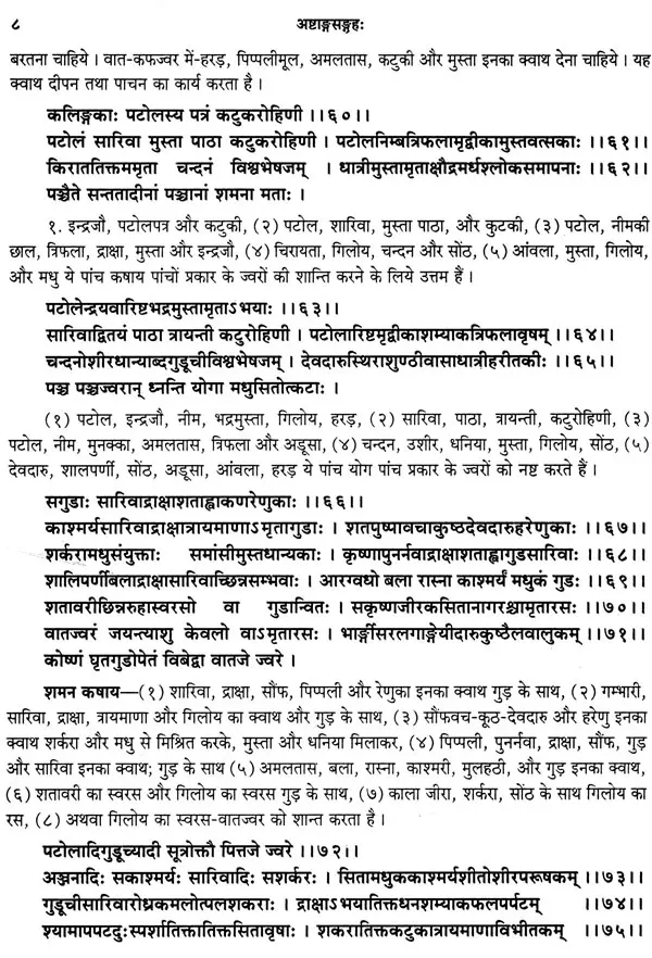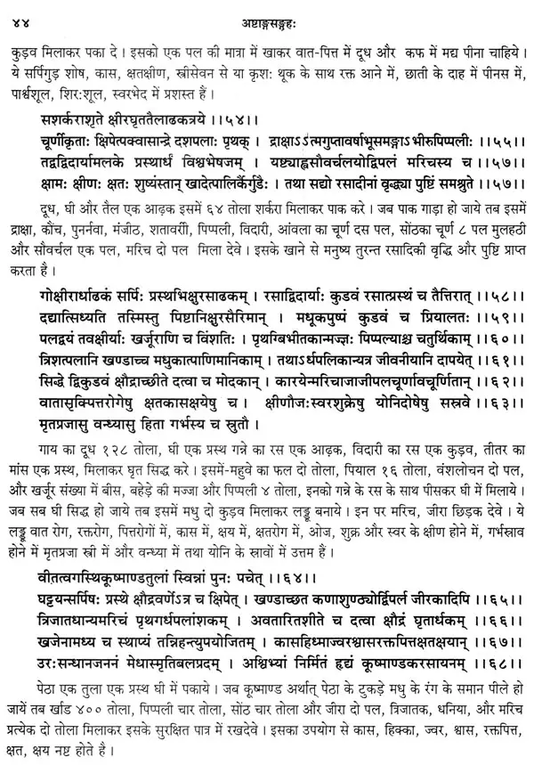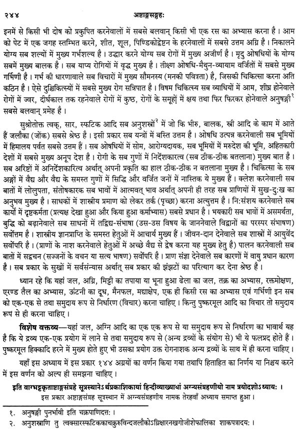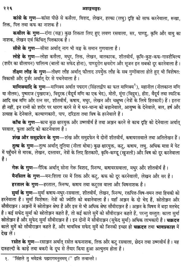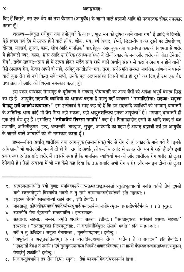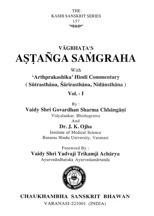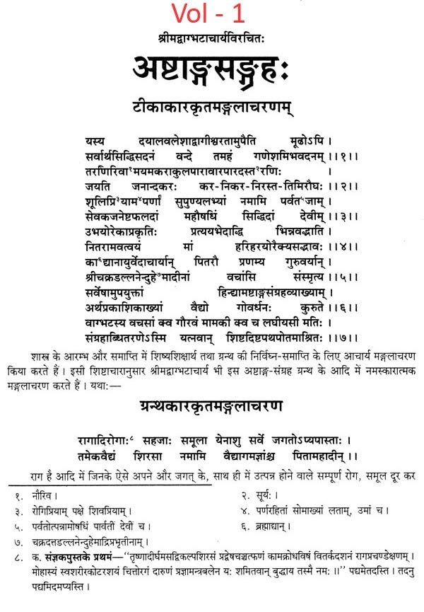 ऐसे अनुवाद करने के लिए अनुवादक भी ऐसे होने चाहिए जिनको आयुर्वेद के अच्छे ज्ञान के साथ शास्त्रान्तरों का भी अवश्य ज्ञान हो। इस ग्रन्थ के अनुवादक वैद्यभूषण पण्डित गोवर्धन शर्मा छांगाणीजी उपर्युक्त सब गुणों से सम्पन्न होने के साथ हिन्दी के भी अच्छे लेखक है। मेरा विश्वास है कि उनका यह अनुवाद अष्टाङ्ग-संग्रह के सम्यग्ज्ञान के लिए वैद्यों और छात्रों को परम उपादेय होगा। अन्त में मैं अष्टाङ्ग-संग्रह के ऐसे वक्तव्यों सहित विशद हिन्दी अनुवाद करने के लिए श्रीमान् छांगाणीजी को हार्दिक धन्यवाद देता हूँ और आयुर्वेद के जिज्ञासुओं से सविनय निवेदन करता हूँ कि वे इस ग्रन्थ के अवलोकन से लाभ उठावें ।