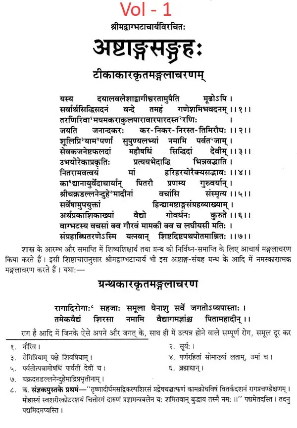वृद्धवान्भट्ट अपरपर्याय अष्टाङ्ग-संग्रह के हिन्दी अनुवादकार्य का श्रीगणेश सन् १९३७-३८ से प्रारम्भ होकर १२-१३ साल तक चलता रहा और आज भी कुछ चल ही रहा है। इतने लम्बे समय के हिसाब से देखा जाय तो अष्टाङ्ग-संग्रह या सम्पूर्ण वृद्धवाग्भट्ट अर्थप्रकाशिका हिन्दी व्याख्यासहित पाठकों के सामने शीघ्र ही छपकर आ जाना चाहिये था। सम्पूर्ण तो दूर रहा, आज उसका प्रथम खण्ड केवल सूत्रस्थान ही हम पाठकों के सामने उपस्थित कर रहे है, सो क्यों ? इसके पीछे बड़ी रामकहानी है। उसके बिना जाने इस शंका का समाधान नहीं हो सकता। इसलिए उत्सका वर्णन कर देना अनुचित न होगा, अपितु उचित ही होगा। सन् १९३६ या ३७ की बात है, मेरे मित्रों ने आम्हपूर्वक कहा कि मैं कुछ लिखूं और वह केवल साप्ताहिक मासिक पत्रों के लेखों, कविताओं की तरह नहीं, किन्तु किसी आयुर्वेदिक मौलिक संस्कृत ग्रन्थ के विशद हिन्दी अनुवादरूपेण लिखूँ। मैं अपनी कमियों की ओर निहारकर नित्रों के आग्रह को टालता ही रहा। किसी भी ऐसे काम को हाथ में नहीं लिया।