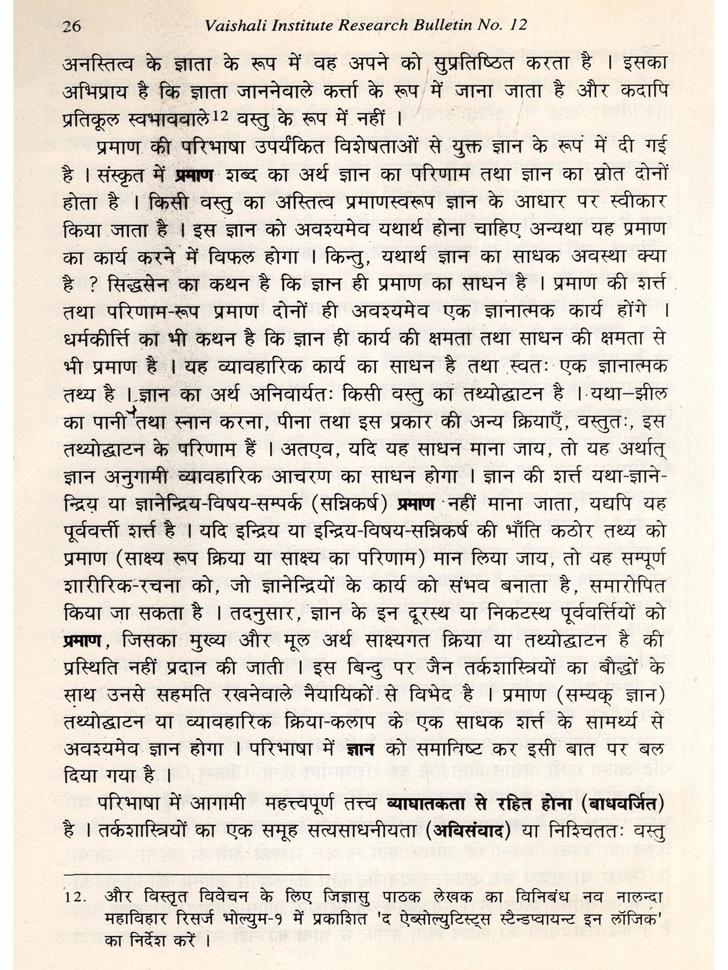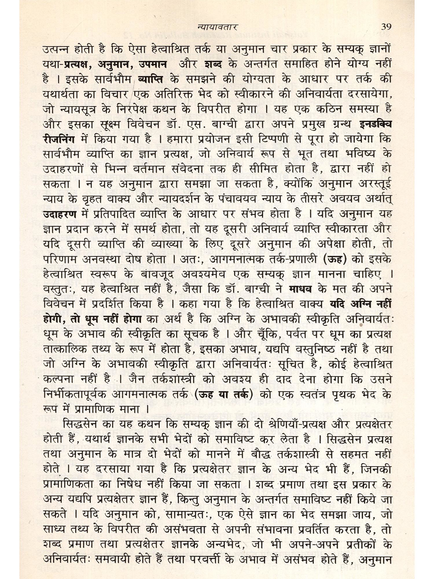 हम न्यायबिन्दु में धर्मकीर्ति द्वरा प्रतिपादित प्रत्यक्ष की परिभाषा को ही लें। यह धारणात्मक निरूपण से पूर्णतः रहित है तथा सम्यक् ज्ञान के एक विशिष्ट प्रकार के रूप में मान्य है। प्रत्यक्ष में किसी ऐसे निश्चित विशेष वस्तु अर्थात् स्वलक्षण का साक्षात् ज्ञान होता है जो अन्य वस्तुओं से पूर्णतः पृथक होता है और इन वस्तुओं की पुनः कोई सामान्य प्रकृति नहीं होती । वर्गधारणाएँ, वस्तुवादियों द्वारा, एक वर्ग के अन्तर्गत सम्मिलित प्रत्येक तथा सभी विशेषों में अन्तर्निहित वस्तुनिष्ठ सामान्यों पर आधृत मानी जाती हैं। धर्मकीर्ति ने यह सिद्ध करने में अथक श्रम किया है कि ये सामान्य, मात्र धारणात्मक निरूपणों के अतिरिक्त कुछ नहीं हैं तथा वस्तुनिष्ठ यथार्थ वस्तुओं से इन्हें कुछ लेना-देना नहीं है । अतः, विशेषों का विचार करनेवाला प्रत्यक्ष प्रातिभ ज्ञान कोई निर्णय नहीं होता । यह एक प्रकार का विशुद्ध अन्तर्ज्ञान है जिसका अनुभव तो किया जा सकता है, किन्तु वर्णन नहीं किया जा सकता। वस्तु-विशेष का लक्षण पूर्णतः वैयक्तिक होता है तथा यथार्थ से कतई विशिष्ट एवं पृथक नहीं होता। अतः. प्रत्यक्ष का प्रथम निषेधात्मक गुण शब्दों द्वारा अभिव्यक्त धारणाओं के निषेध में अन्तनिहित होना बताया जाता है। निस्सन्देह, किसी स्वतः वर्णित वस्तु-विशेष के अन्तर्ज्ञान का कोई व्यावहारिक परिणाम नहीं होता। इसकी धारणा नहीं वन सकती; यह या वह के रूप में वर्णित होने की बात तो दूर रही। यह व्यक्ति-विशेष का सूचक होता है। और प्रत्येक व्यक्ति यह होता है। किन्तु, यह कई होते हैं। वे एक सामान्य धारणा एवं गूढार्थ अभिव्यंजक शब्द से अनुप्राणित होते हैं और परिणामतः अपनी व्यक्तिपरकता खो देते हैं। अन्तर्ज्ञान से निःसृत प्रत्यक्ष, यथा नीला का, यह नीला है या यह नीला के रूपों में अपने को प्रकट करता है। इस प्रकार यह तथा नीला में विशेष नीला का अनिवार्यतः द्विधाकरण है। अव्यक्त या व्यक्त विधेय सामान्य धारणा का प्रतीक होता है जिसे दिड्नाग. धर्मकीर्ति तथा उनके अनुयायियों द्वारा एक आत्मनिष्ठ निरूपण के रूप में माना गया है। इस प्रकार दिङ्नाग के द्वारा प्रत्यक्ष को धारणाओं तथा शब्दों के साहचर्य से मुक्त' प्रत्यक्ष-बोध के रूप में परिभाषित किया गया है। यह प्रत्यक्ष का स्वतः पर्याप्त वर्णन माना जाता है। किन्तु, न्यायबिन्दु में धर्मकीर्ति ने अभ्रान्तम् एक अन्य गुणबोधक विशेषण जोड़ दिया है। इस अभिनव परिवर्तन से अति प्राचीन काल से ही अविकल रूप से एक विवाद की आँधी को हवा मिली है। यह अब भी मिथ्या धारणा की संभाव्यता से मुक्त नहीं है। सम्यक् ज्ञान का ही एक प्रकार होने के कारण प्रत्यक्ष का भ्रान्ति से मुक्त होना अनिवार्य है और फलतः विशेष गुण अभ्रा
