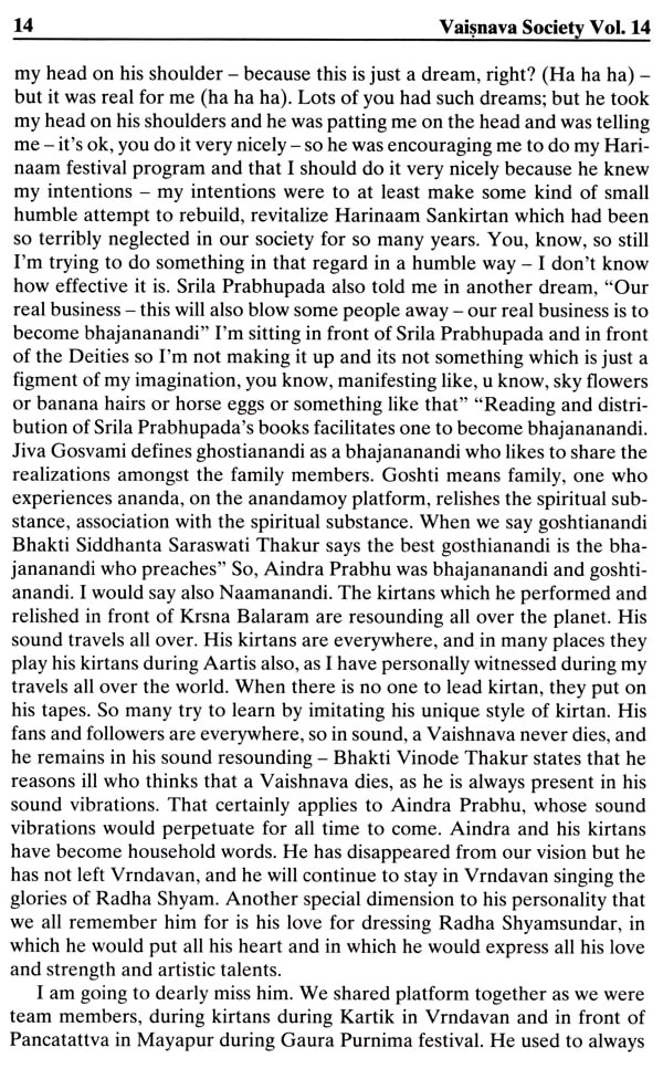 Vaisnava Society: Aindra Dasa Departs (Volume 14)