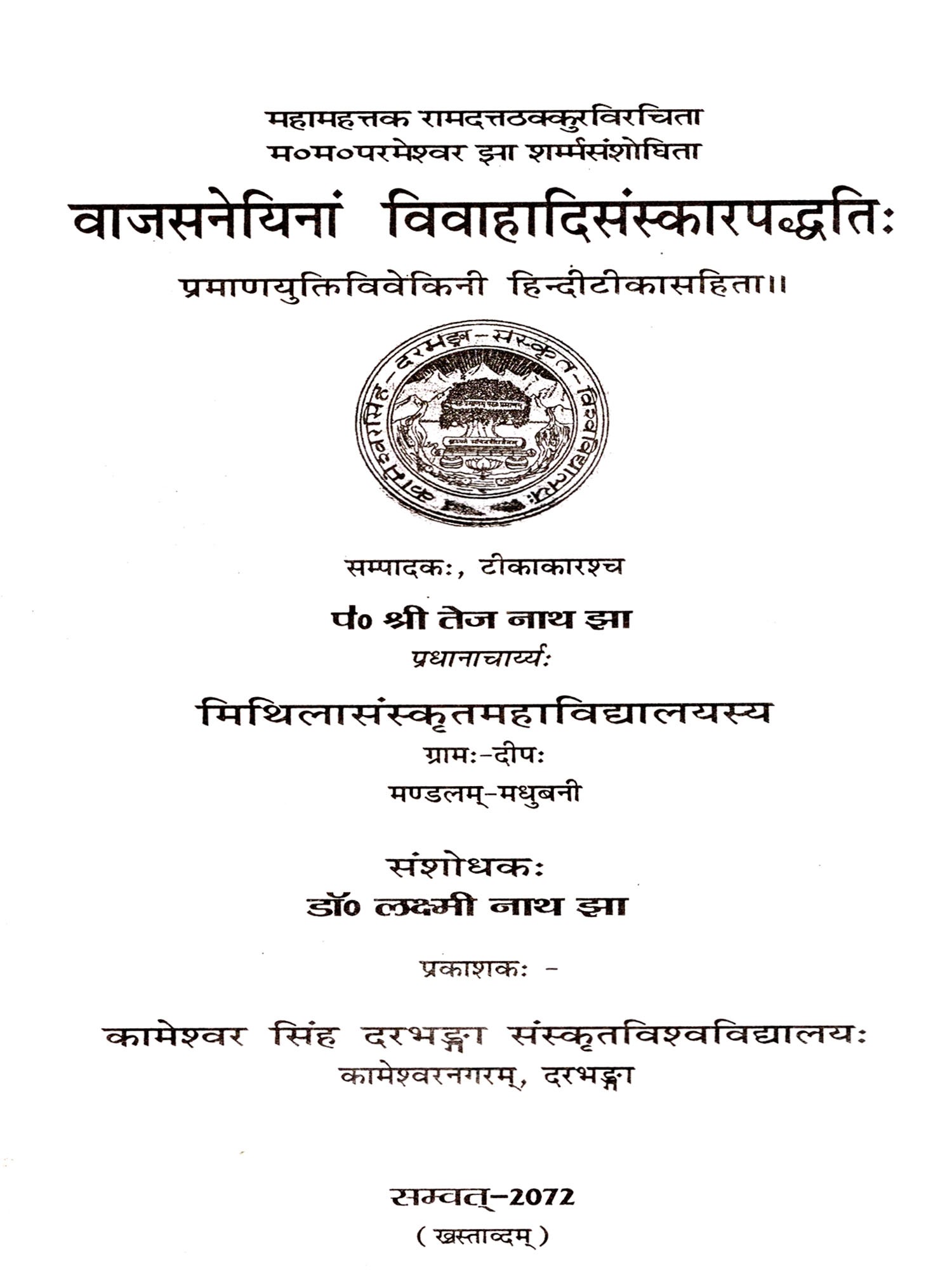 वाजसनेयिनां विवाहादिसंस्कार पद्धतिः- Vajasaneyinam Vivahadisanskar Paddhatih- Pramanayuktivivekini with Hindi Commentary