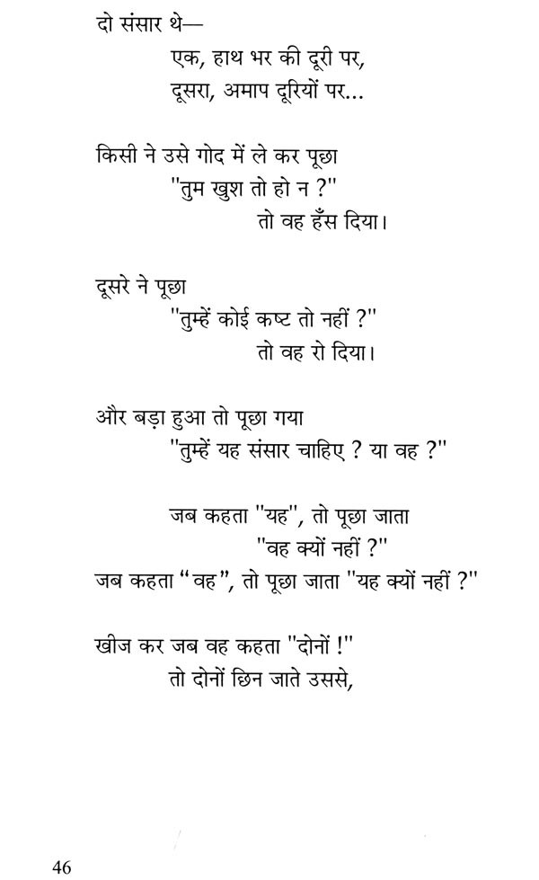 इस 'देखने' (पश्य) का विशेष महत्त्व है। अन्ततः दोनों एक-से ही 'निष्कर्ष-बिन्दु' पर पहुँचते-से लगते हैं-कि जहाँ जीवन को लाँघकर, आकाश मार्ग से, पहुँचा जा सकता है, वहीं शायद जीवन को जीते हुए, थल-मार्ग से भी।