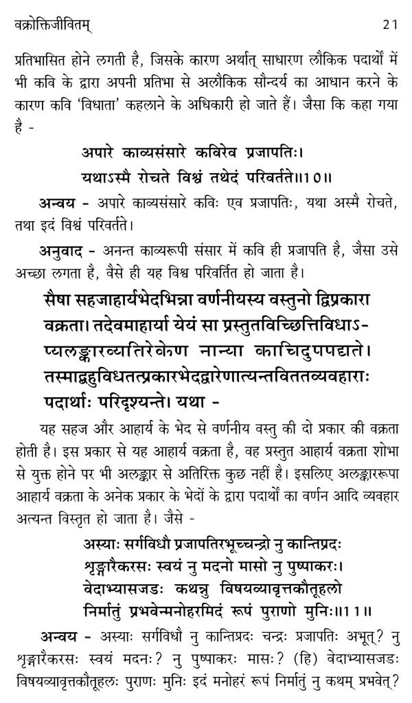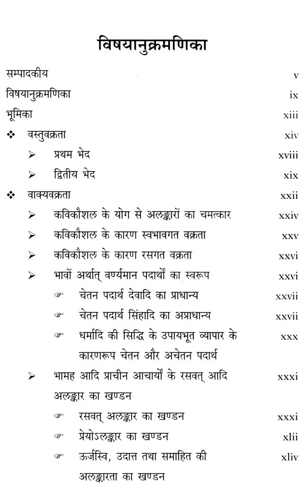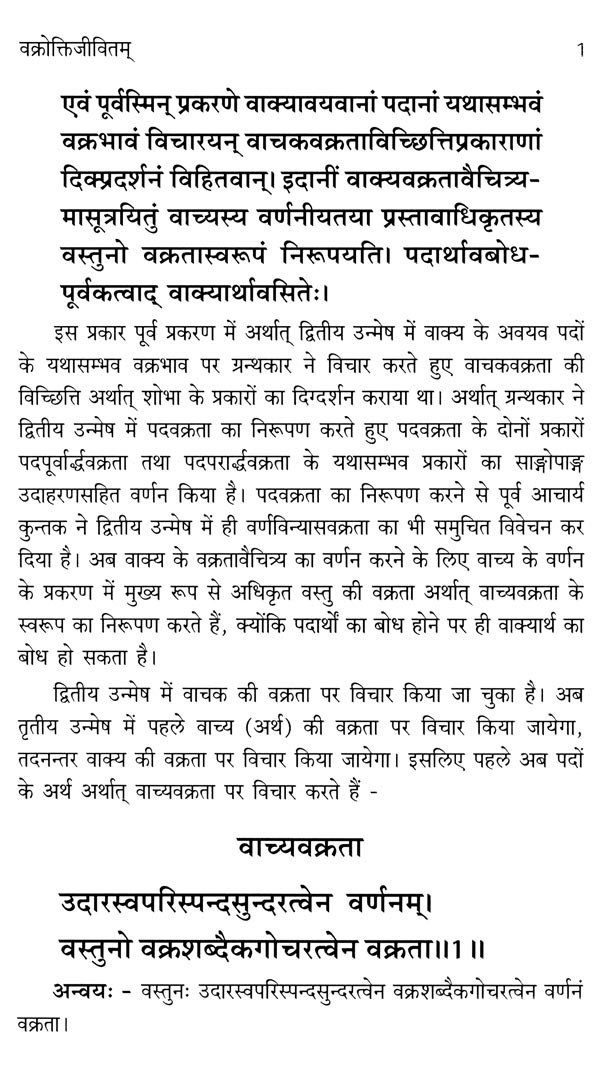 वक्रोक्तिजीवित के प्रथम तथा द्वितीय उन्मेष पर प्रकाशित पुस्तक पर सुधी पाठकों तथा जिज्ञासु विद्यार्थियों का अत्यन्त स्नेह प्राप्त हुआ। वक्रोक्तिजीवित पर जब कार्य प्रारम्भ किया गया था, तब सम्पूर्ण वक्रोक्तिजीवित पर ही हिन्दी-व्याख्या लिखने का विचार था। पूर्व में वक्रोक्तिजीवित के प्रथम तथा द्वितीय उन्मेष सम्पादन करते हुए यह अनुभव किया गया कि वक्रोक्ति सिद्धान्त का सामान्य परिचय प्राप्त करने के लिए इसके प्रथम उन्मेष का ही अध्ययन पर्याप्त है। आचार्य कुन्तक ने प्रथम उन्मेष में वक्रोक्ति के लक्षण, स्वरूप आदि का विस्तार से परिचय प्रस्तुत करते हुए वक्रता के प्रमुख छः प्रकारों का सामान्य लक्षण प्रस्तुत किया था। अतः द्वितीय उन्मेष ने आचार्य ने छः में से प्रथम तीन वक्रताओं यथा - वर्णविन्यासवक्रता, पदपूर्वार्द्धवक्रता तथा पदपरार्द्धवक्रता का सोदाहरण विशेष लक्षण प्रस्तुत किया है। इन तीन वक्रताओं के भी अवान्तर भेद होते हैं, जिनकी भी विस्तार से चर्चा आचार्य कुन्तक ने द्वितीय उन्मेष में की है। अतः इसी उद्देश्य से द्वितीय उन्मेष का भी प्रकाशन अक्टूबर 2019 में किया गया।