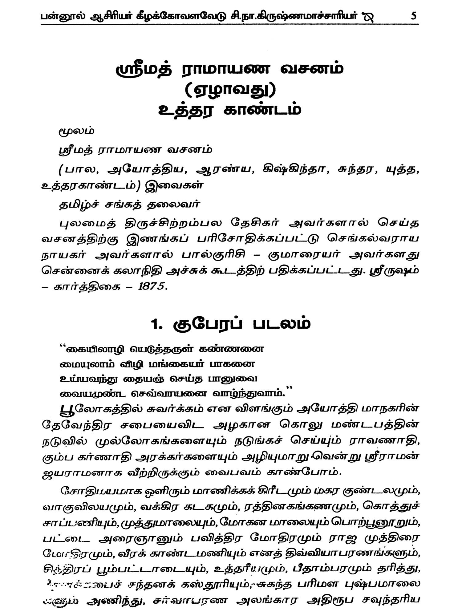 ஸ்ரீமத் வால்மீகி ராமாயணம் ஸுந்தர காண்டம்: Srimad Valmiki Ramayana Sundara Kandam (Tamil)