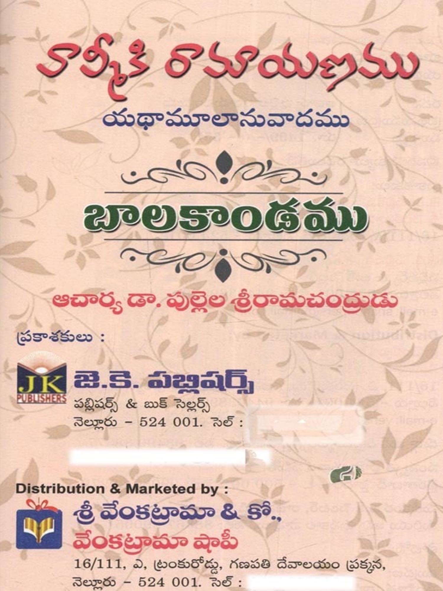 వాల్మీకి రామాయణము: Valmiki's Ramayana (Telugu)