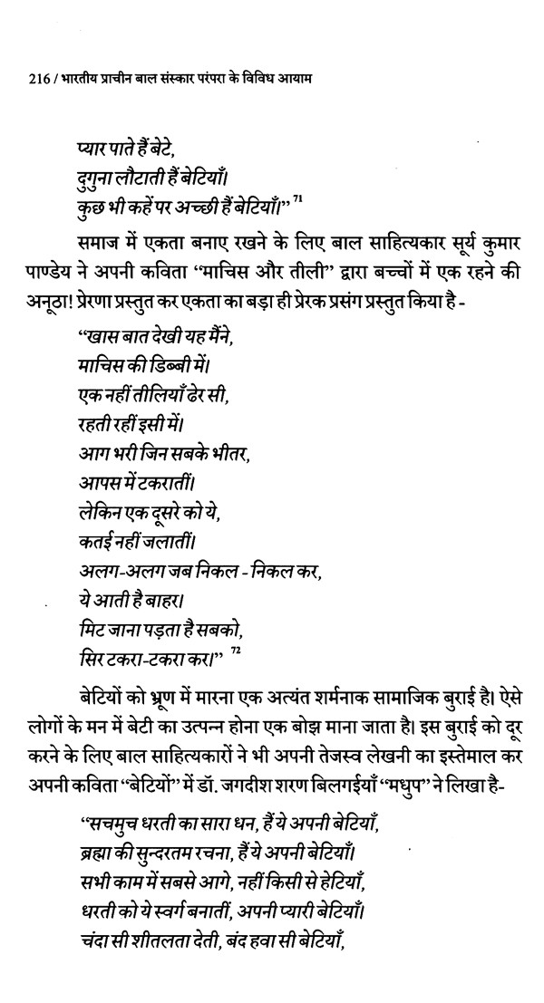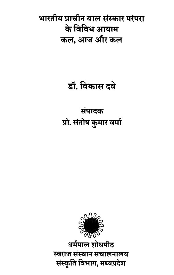 प्रस्तुत पुस्तक इसी फैलोशिप कार्यक्रम के तहत प्रस्तुत किए गए शोध प्रबंध का रूपांतरण है। इस पुस्तक 'भारतीय प्राचीन बाल संस्कार परंपरा के विविध आयाम कल, आज और कल' में लेखक श्री विकास दवे ने अत्यंत ही विद्वत्तापूर्ण तरीके से विषय को सरल एवं ग्राह्य रूप से प्रस्तुत किया है जिसके लिए वे निश्चित ही बधाई के पात्र हैं।