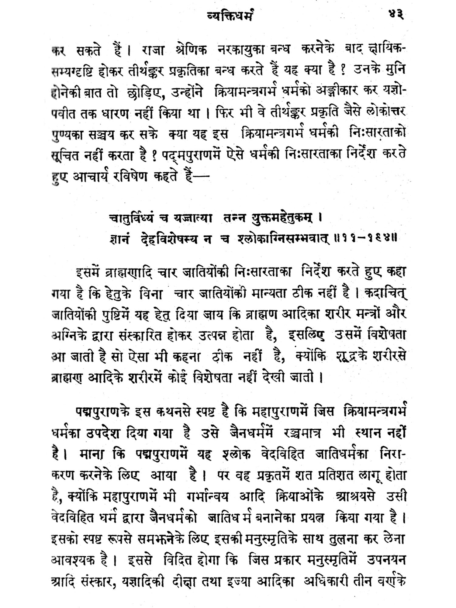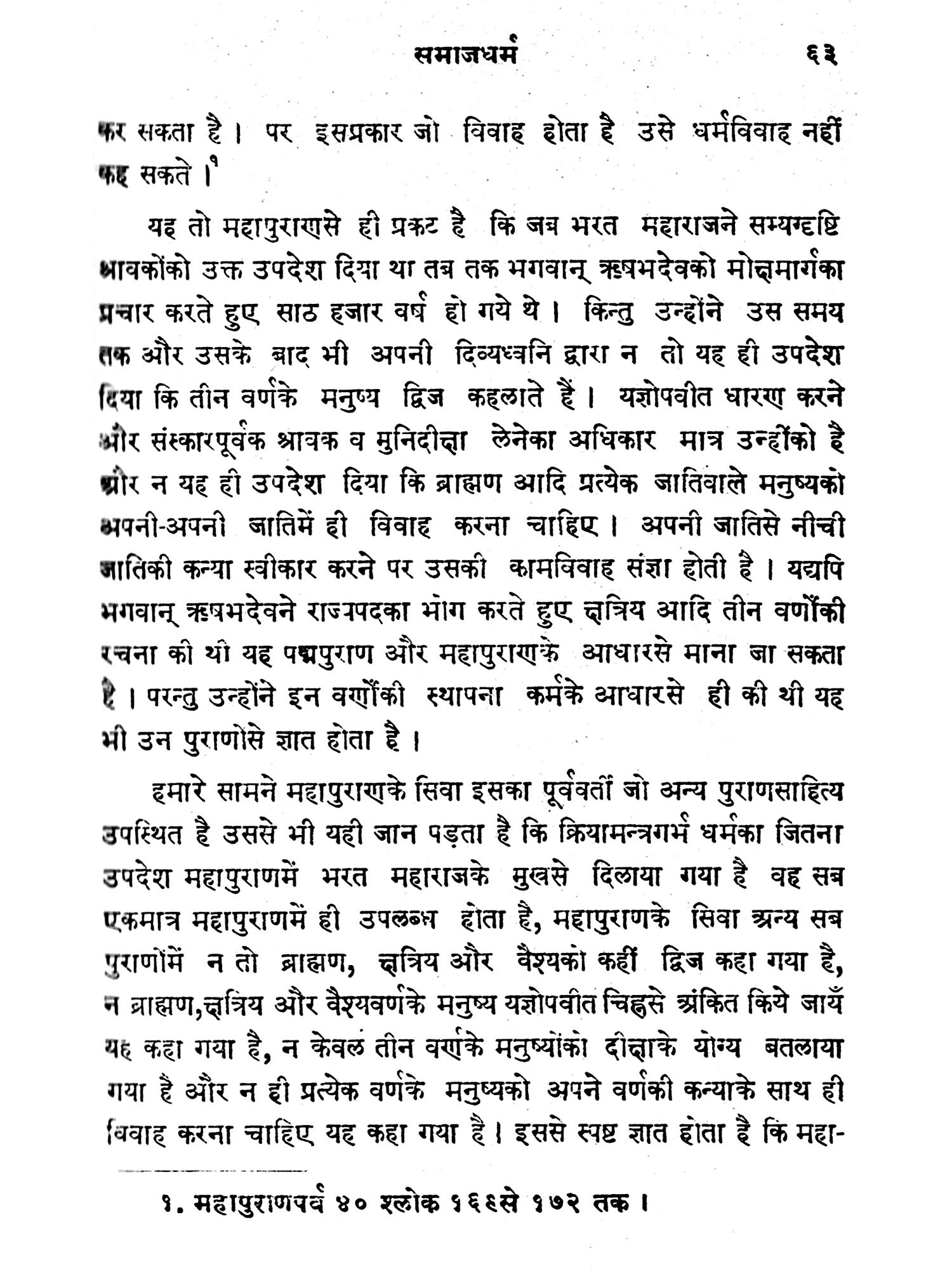 महापुराण के कर्ता आचार्य जिनसेन ने ब्राह्मणवर्ण के साथ जाति-प्रथा की उत्पत्ति भरत चक्रवर्ती के द्वारा बतायी है, केवलज्ञानसम्पन्न परम वीतरागी भगवान् आदिनाथ के मुख से नहीं। इससे भी यही ज्ञात होता है कि वे भी इसे पारलौकिक धर्म से जुदा ही मानते थे।
