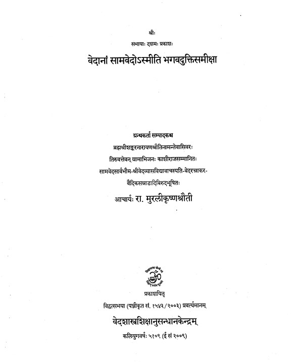 वेदानां सामवेदोस्मीति भगवदुक्तिसमीक्षा- Vedanam Sama Vedosmithi Bhagvadukthi Samiksha