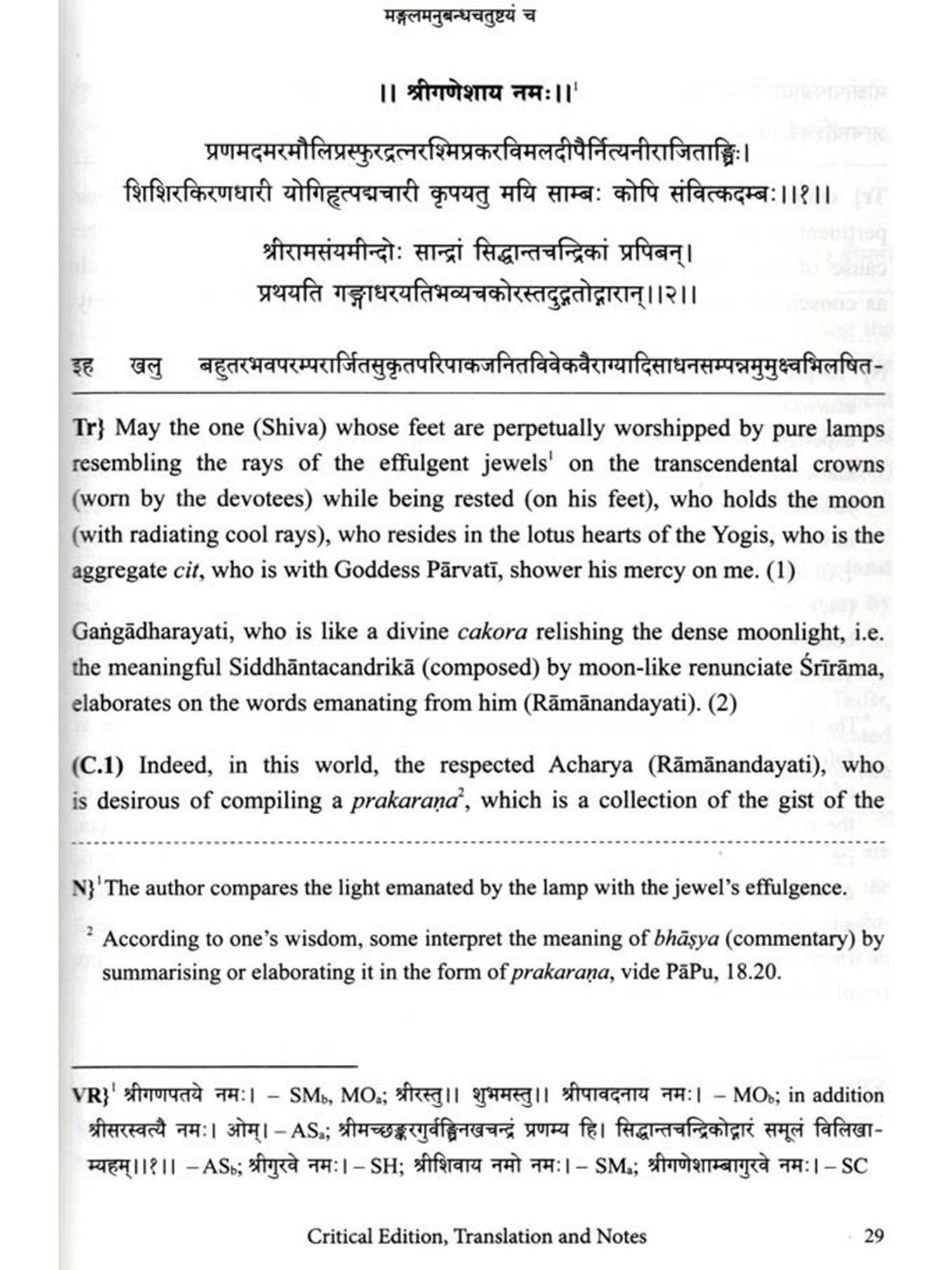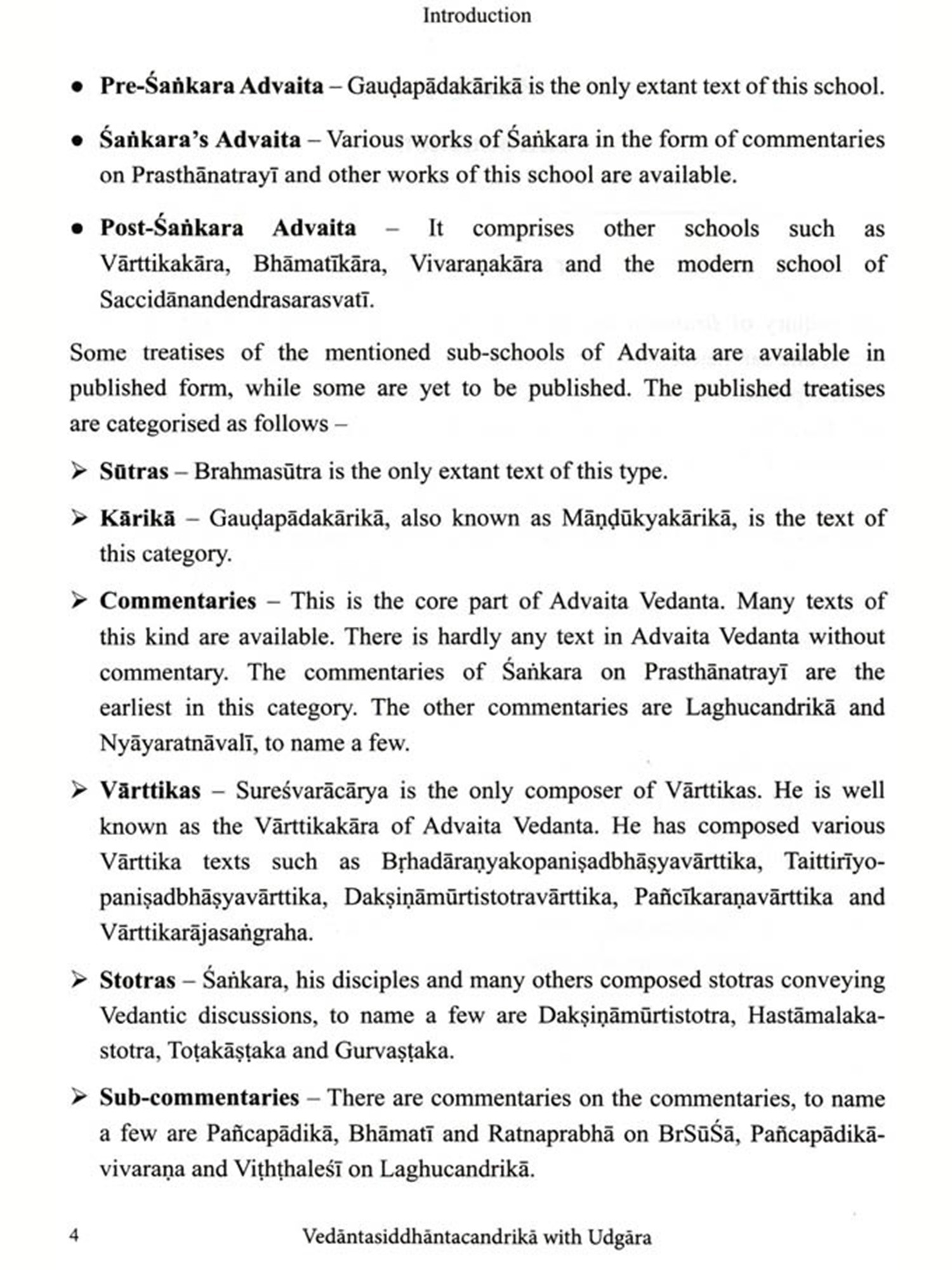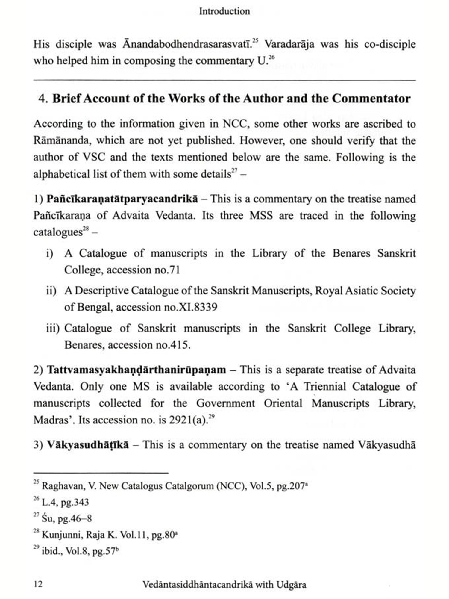 I am delighted to write Vedäntasiddhäntacandrikä with the commentary Udgara, critically edited with an few words about the present work English translation and notes by Dr Rohan Achyut Kulkarni The text. Vedantasiddhäntacandrika, also known as Siddhäntacandrika, is a product of the rich Advaita Vedanta tradition, composed by Rämänandasarasvati or Rämänandayati (r. colophon) in the 17 C.E. Gangadharendrasarasvati, the 38° Sankaracharya (from 1648 to 1653 C.E.) of Swarnavalli Matha (one of the Upapithas of Sankaracharya's tradition), Sonda, Sirsi, Karnataka, added his insights to this text through his commentary Udgara. The commentator was a disciple of Rämacandrasarasvati, the 36 Sankaracharya (from 1620 to 1642 C.E.) of Swarnavalli Matha, which is evident from the colophon (iti srimat-paramahamsa-parivrajakācārya-śrīmad-rămacandra-sarasvati-pūjyapada-sisya-śrī-gangadhara sarasvati-viracitaḥ siddhāntacandrikodgārah sampürnah).