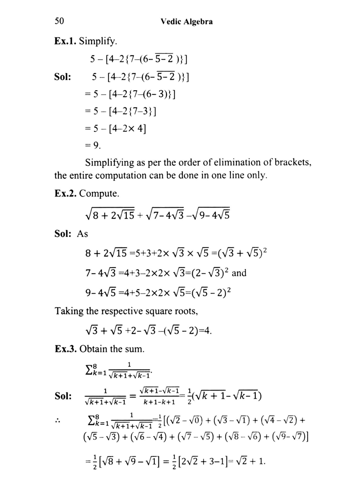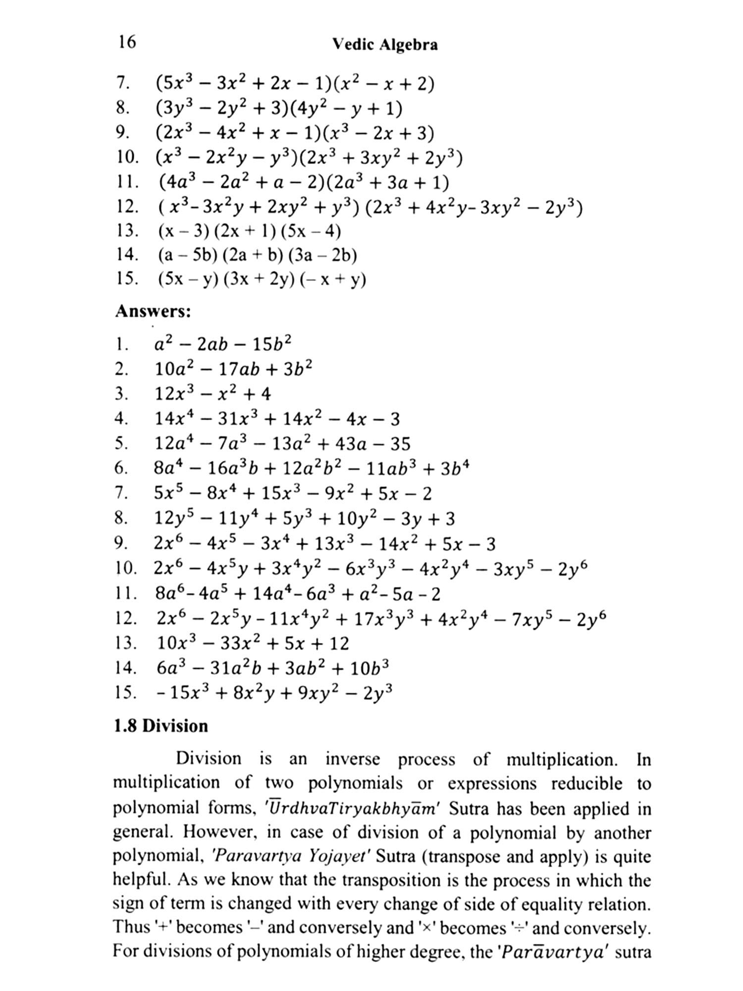 At the end of each unit a set of exercises has been provided to the learners for practice. Efforts are on to make the Vedic Sutras more adoptive in wider range. Elementaries in the beginning of each section help comprehend related basics and subsequent applications there on.